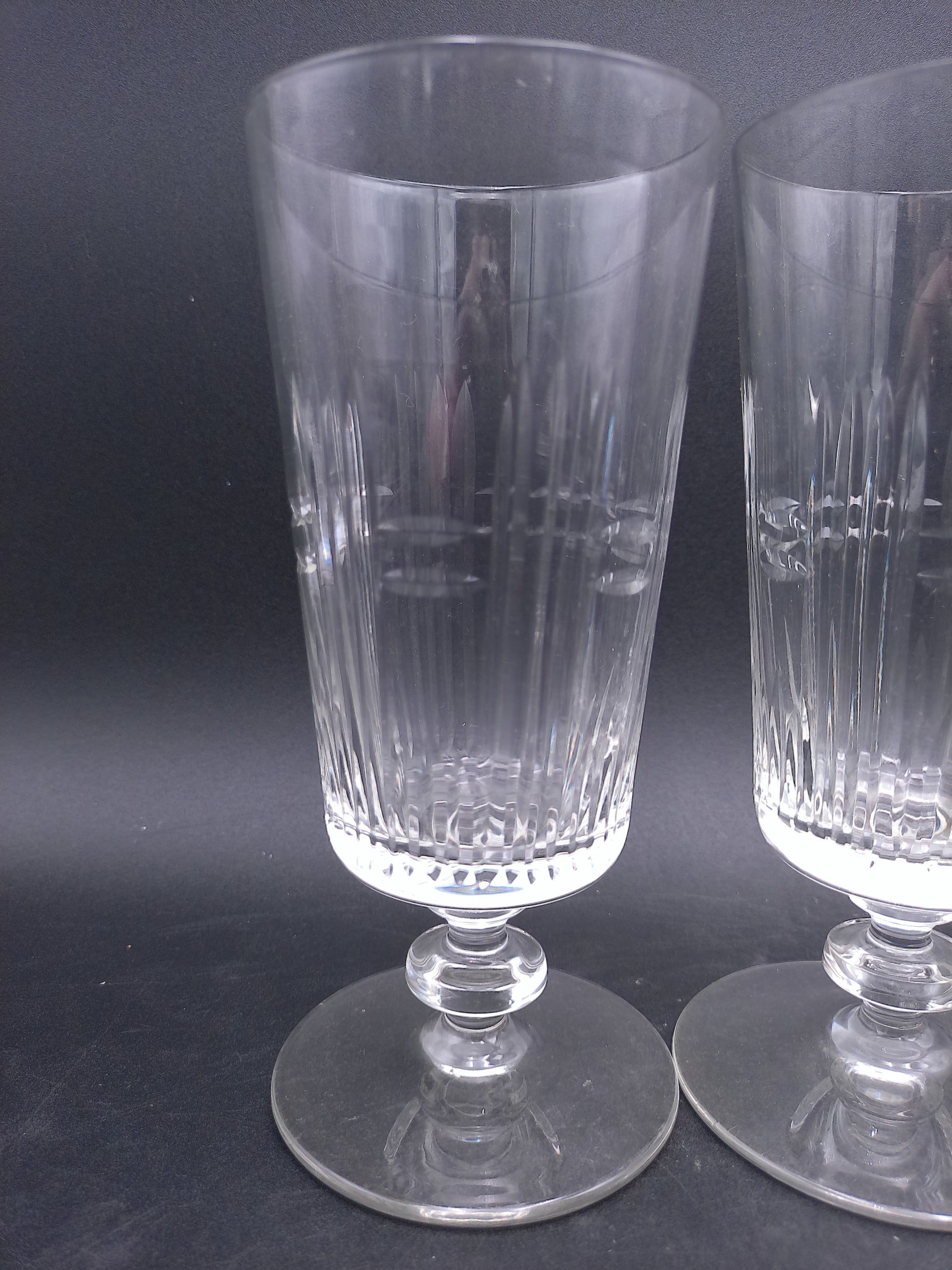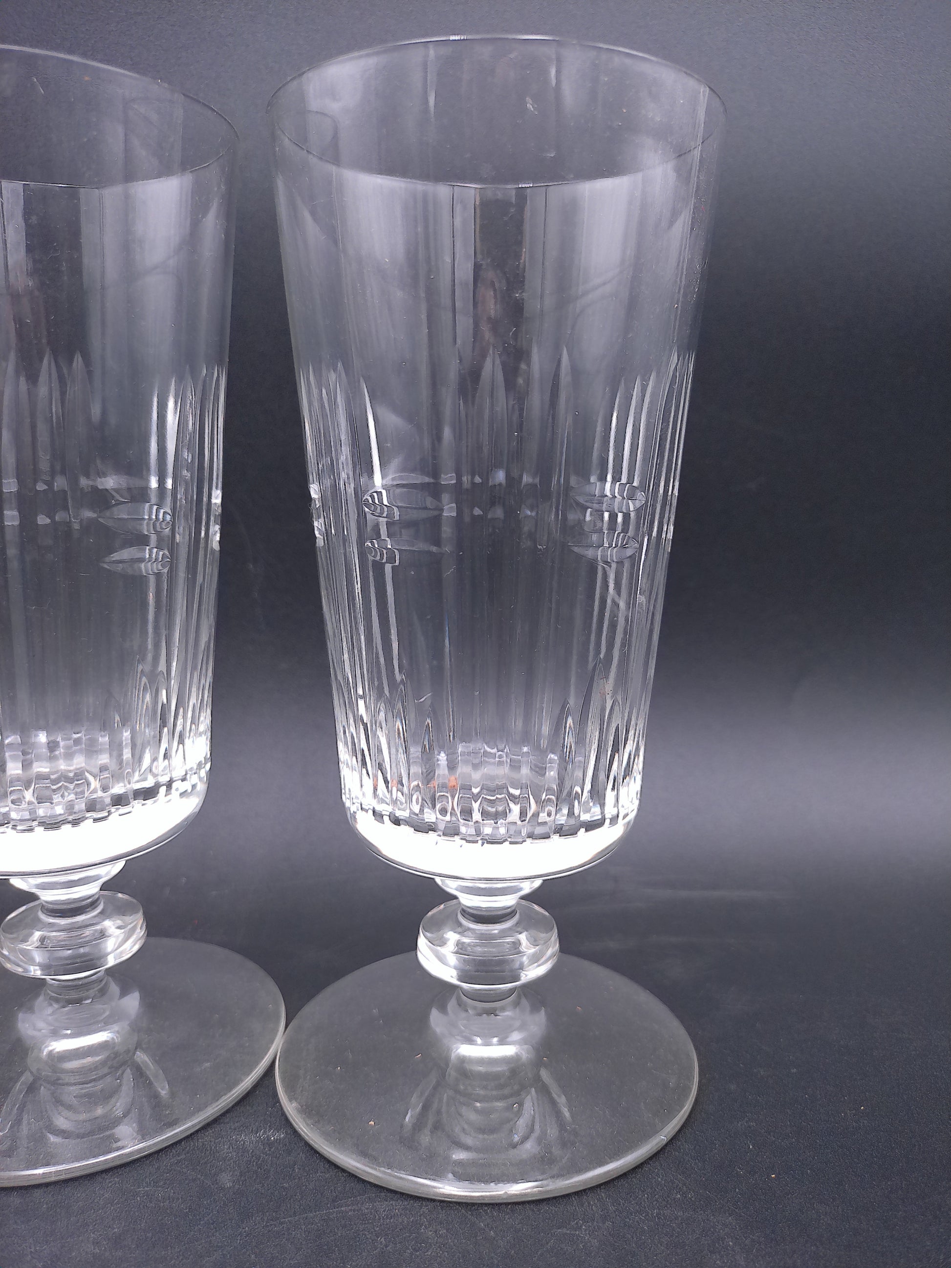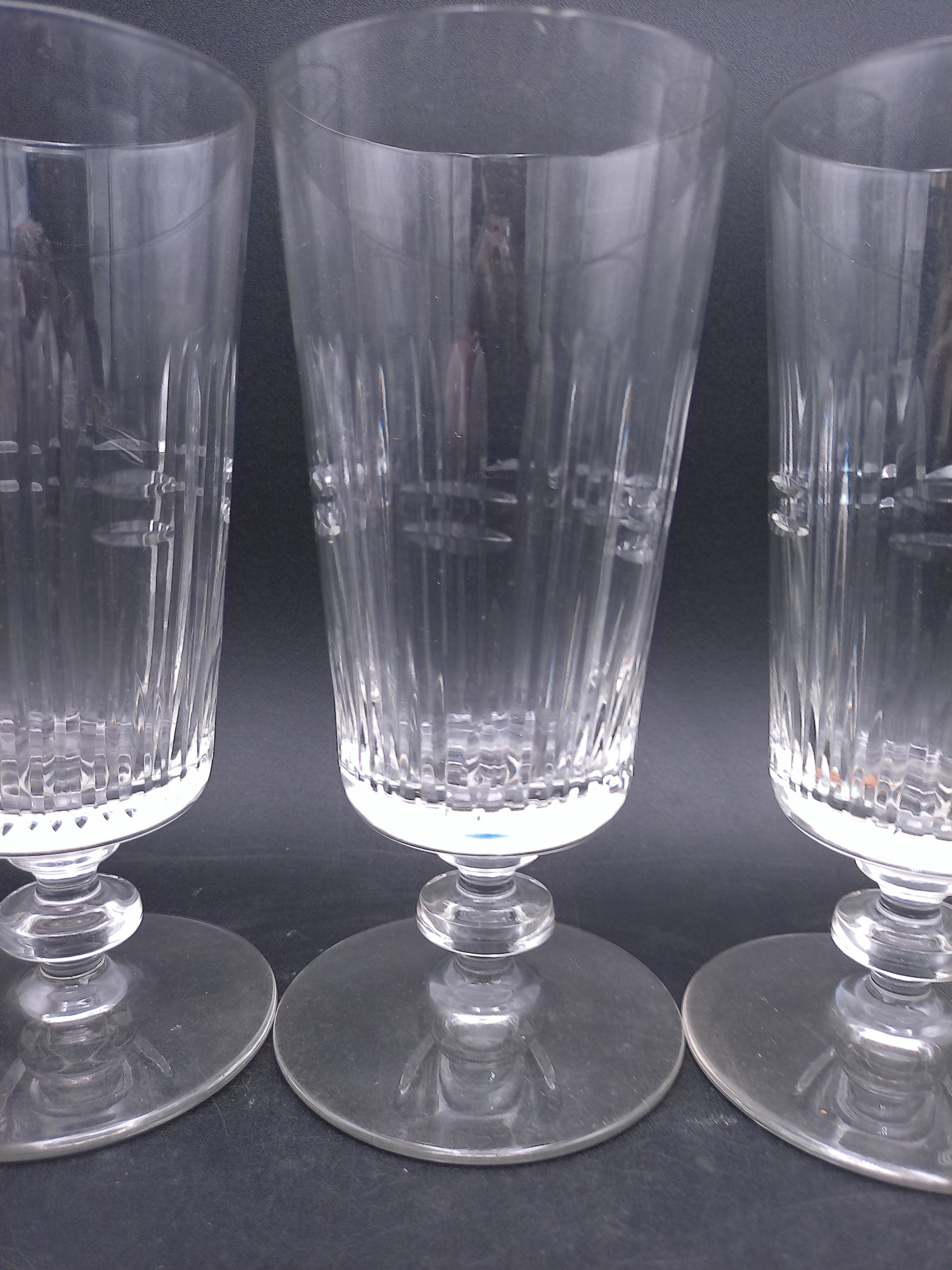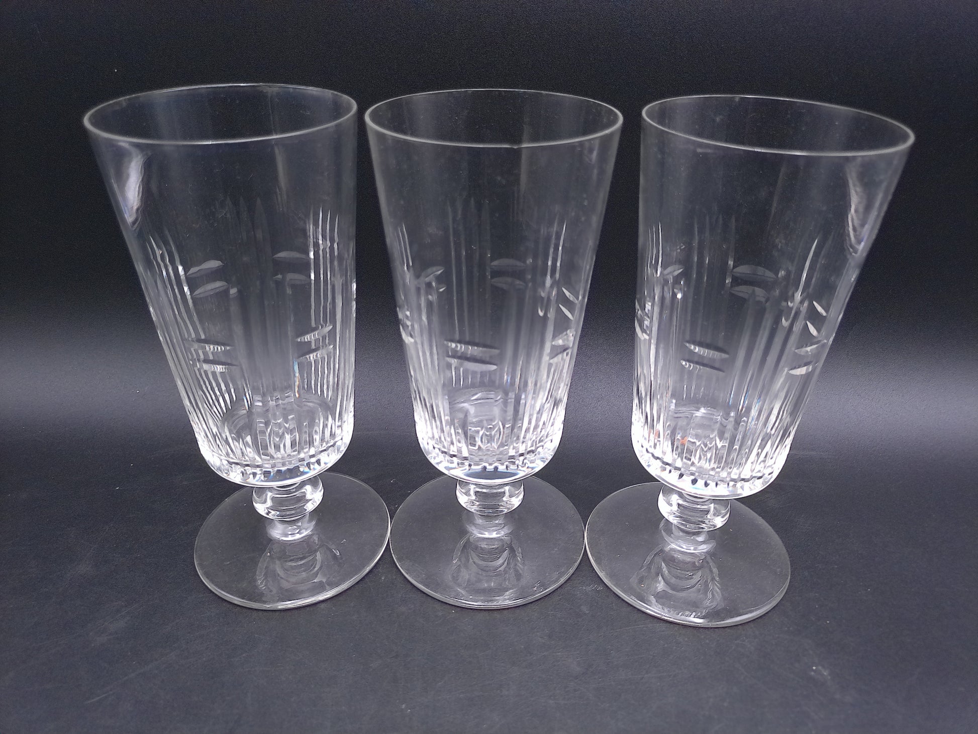Glass Wafer Stem Water Goblet Set of 3 Beautiful Design Vintage