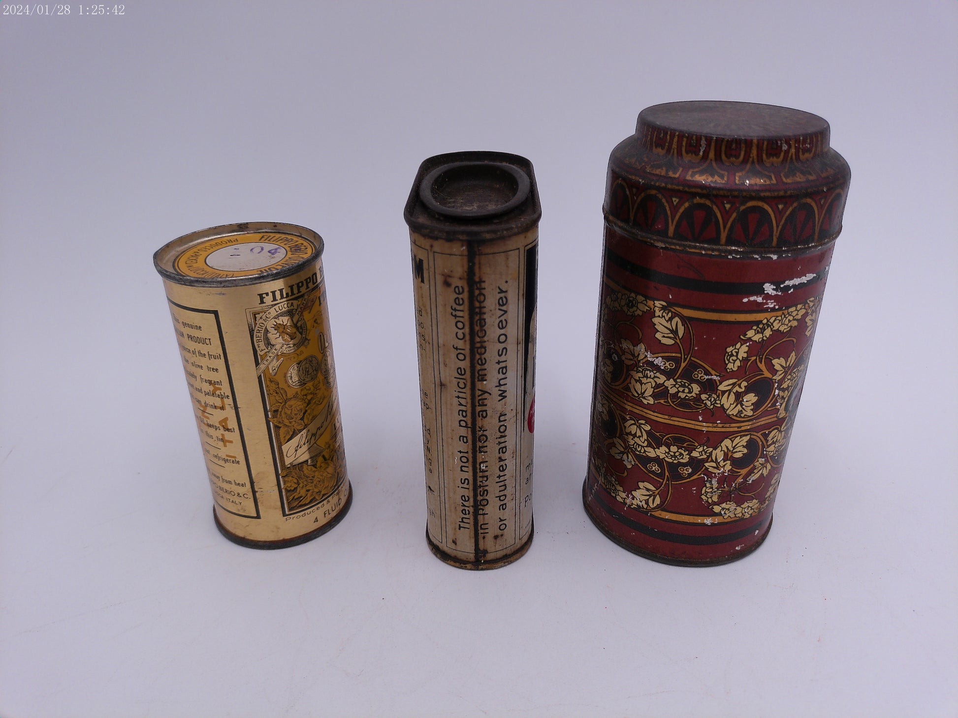 Lot 3 of Vintage Cans Ginger Instant Postum Filippo Berio Olive Oil