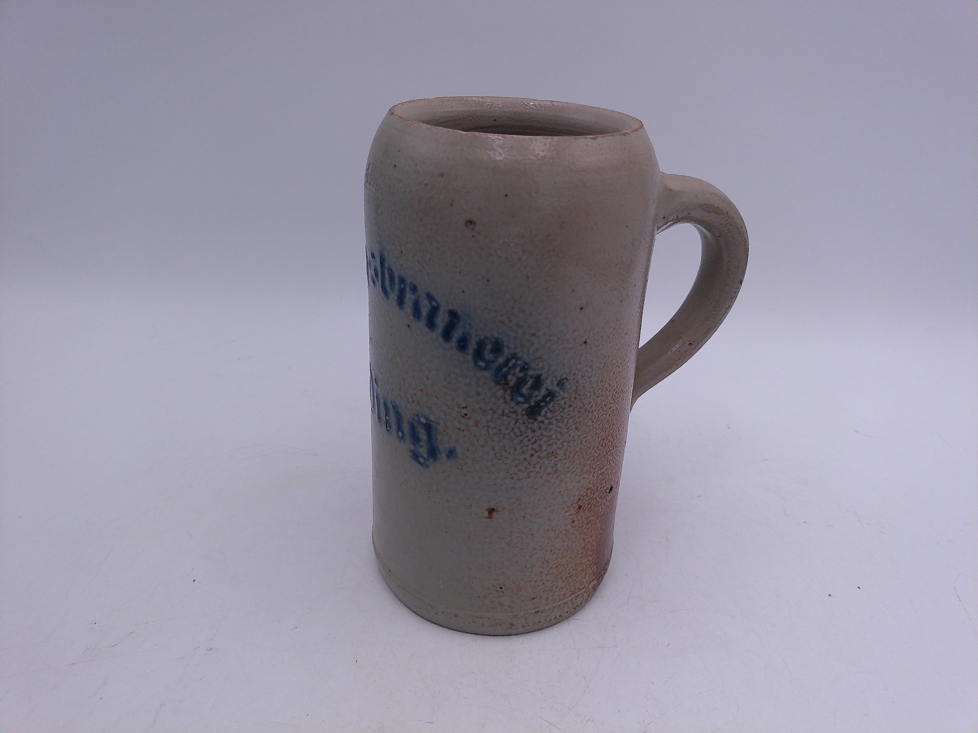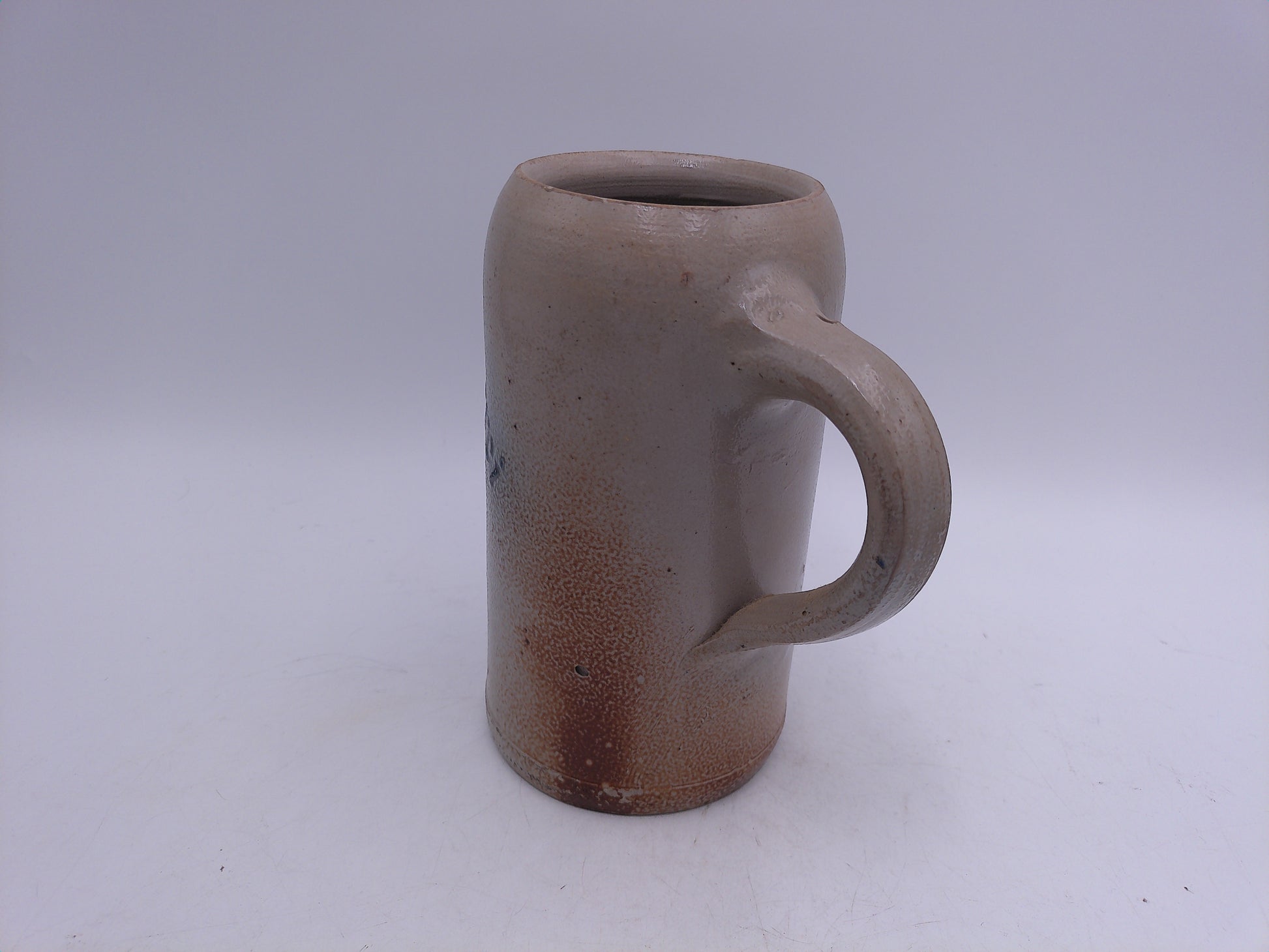 Indulge in the authenticity of this vintage German-made beer stein with a classic blue lettering design. Crafted with quality in mind, this stein is perfect for any beer lover looking to add a touch of nostalgia to their collection. Enjoy your favorite brew in style.