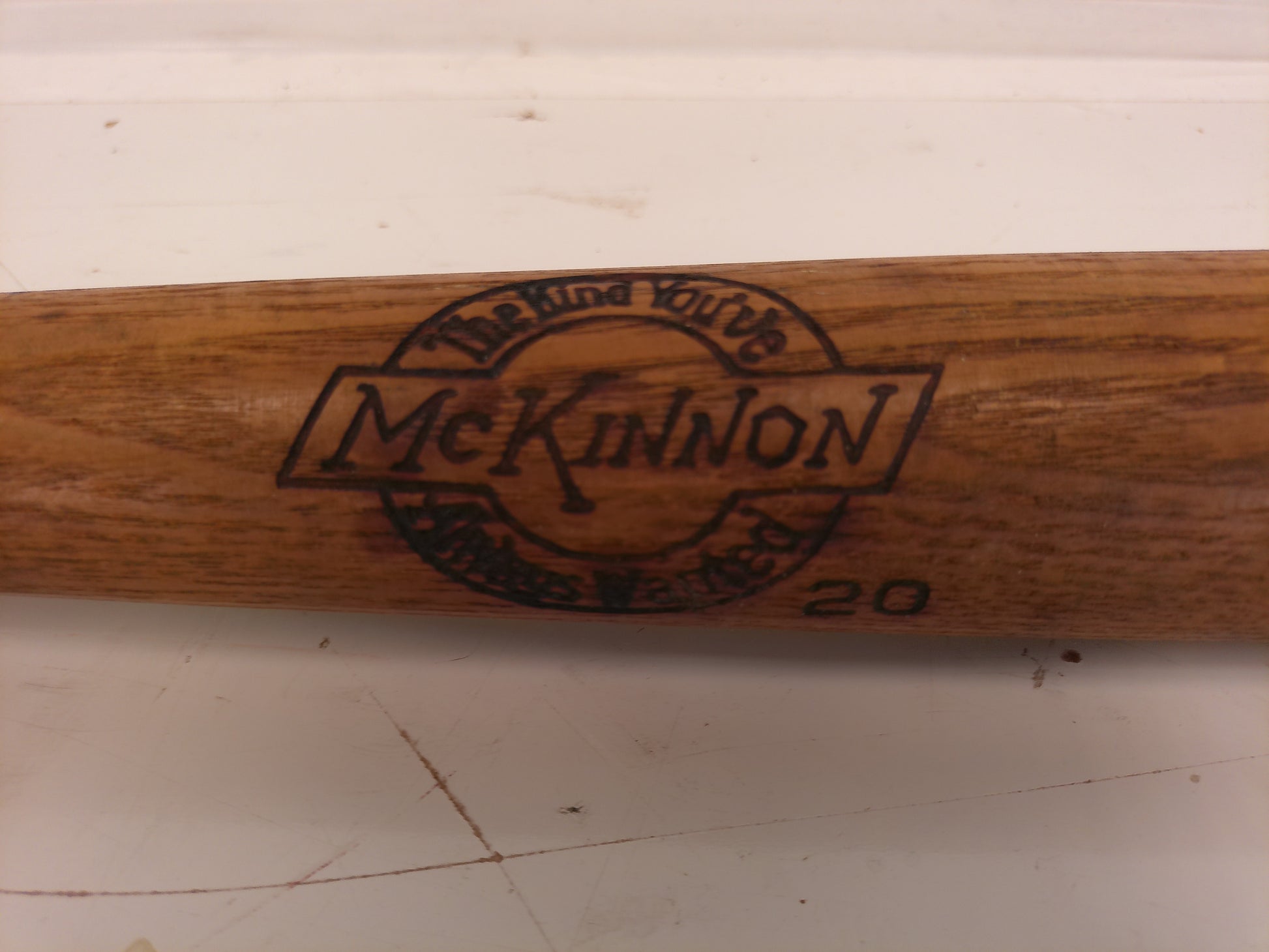 This vintage McKinnon Baseball Bat #20 is a must-have for any serious baseball enthusiast. Crafted with expert precision and top-quality materials, this bat offers unparalleled performance and durability. With its vintage design, you'll feel like you're stepping back in time every time you step up to the plate. Experience the powerful swing and perfect hits that this bat delivers. Upgrade your game with the McKinnon Baseball Bat #20 Vintage.