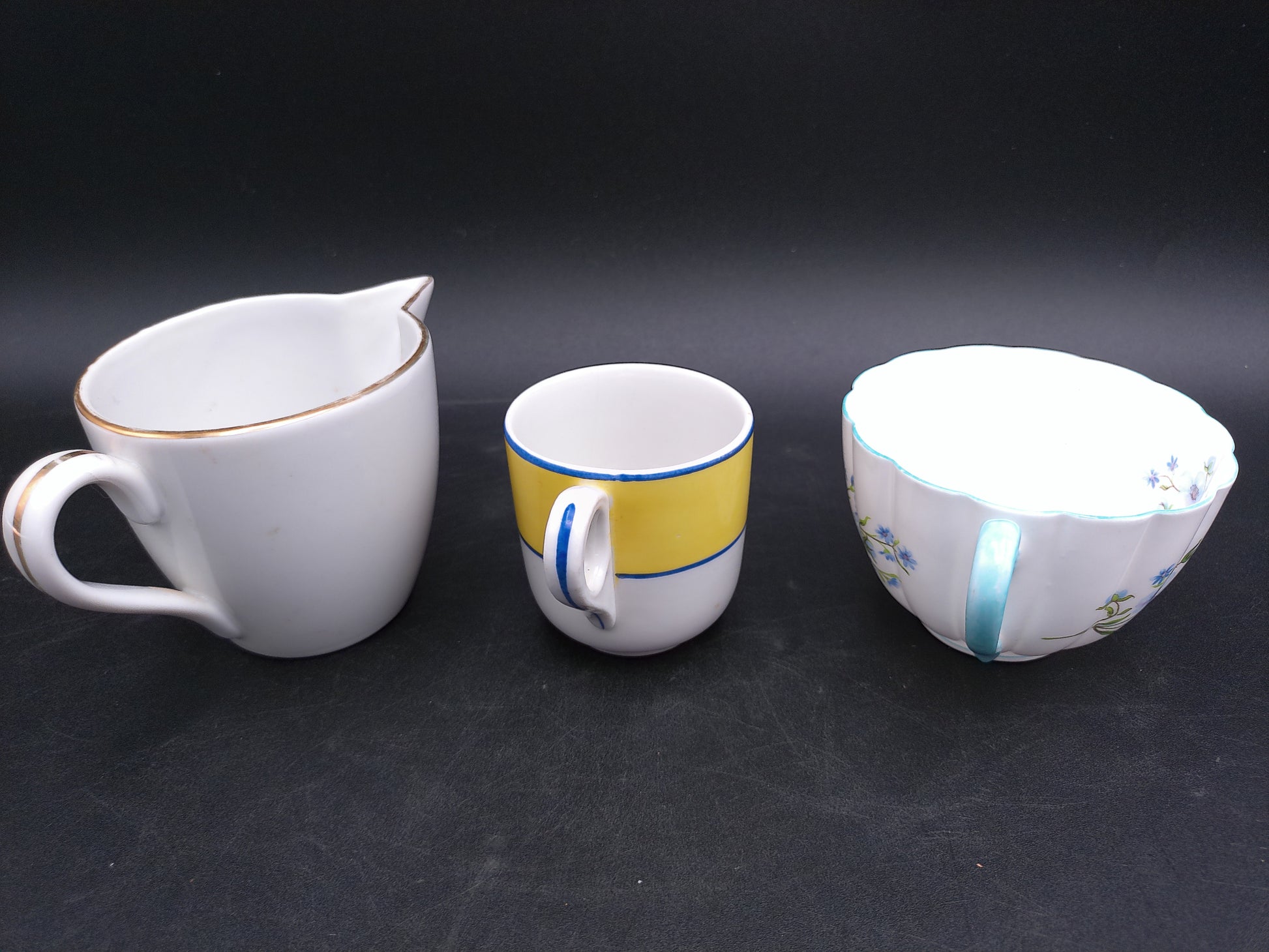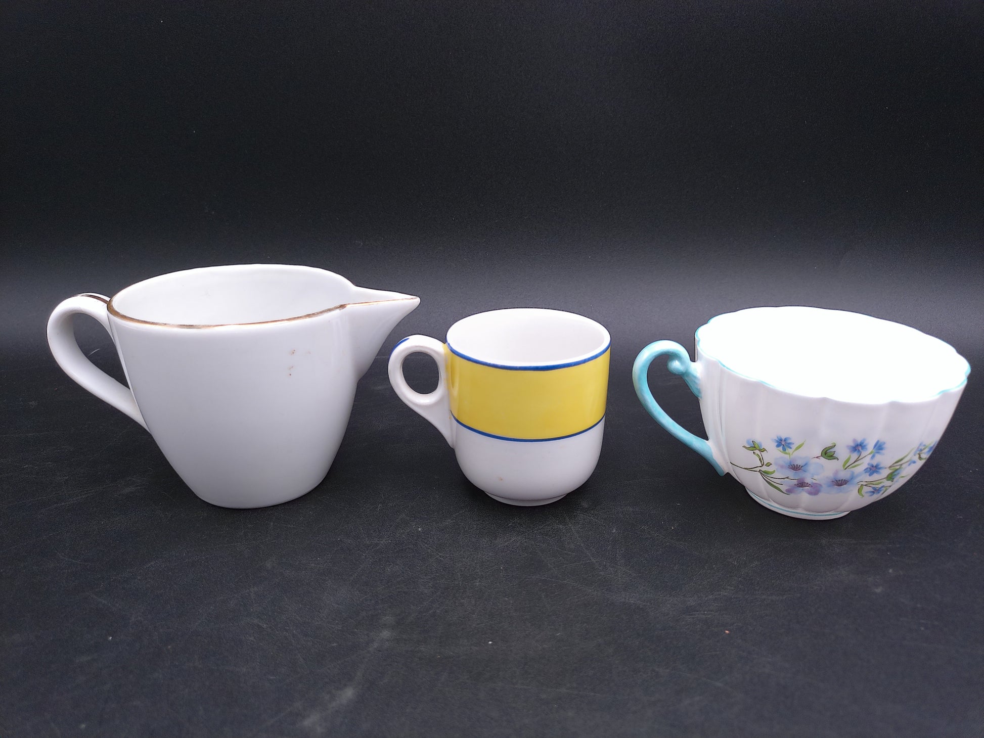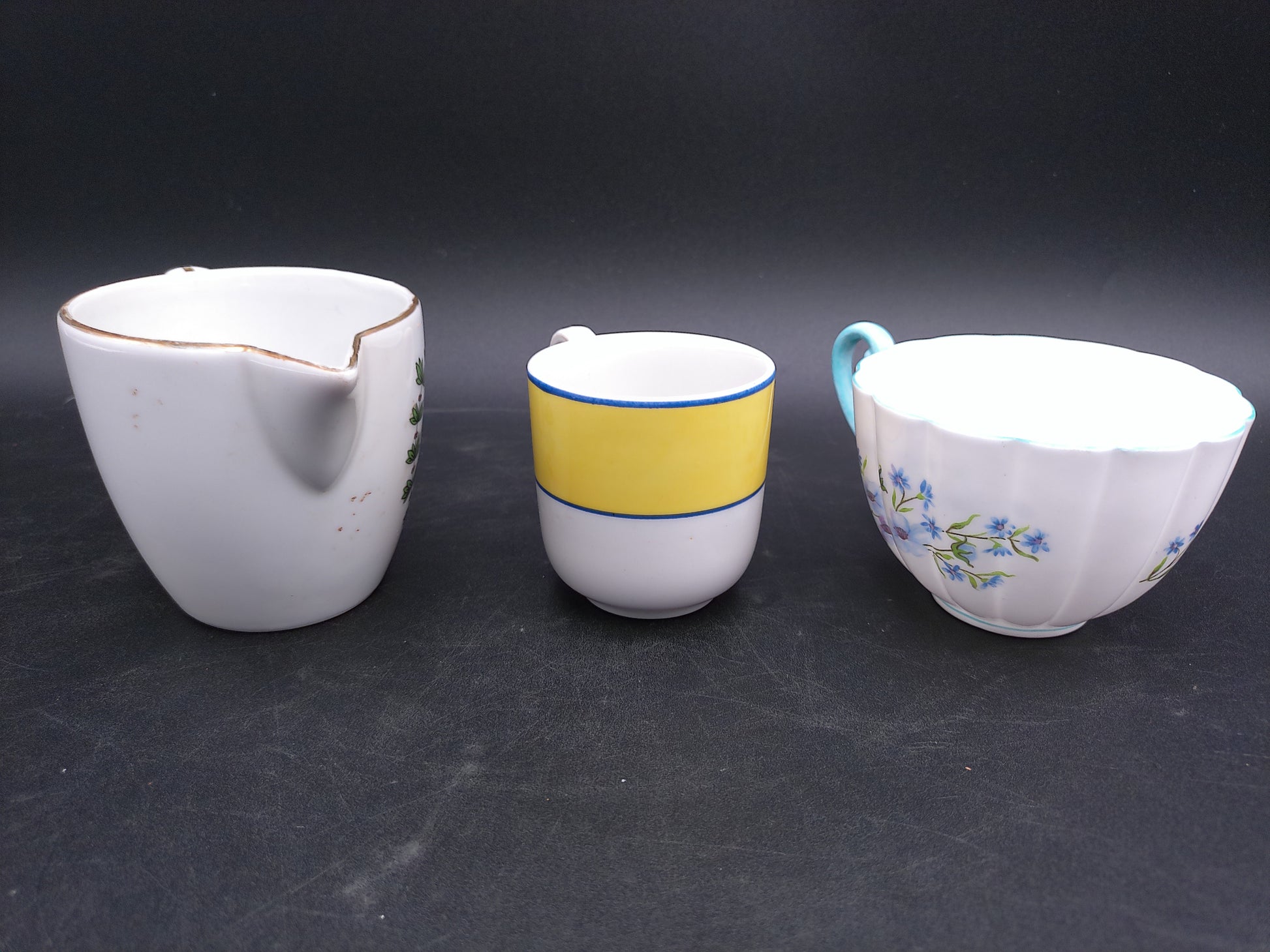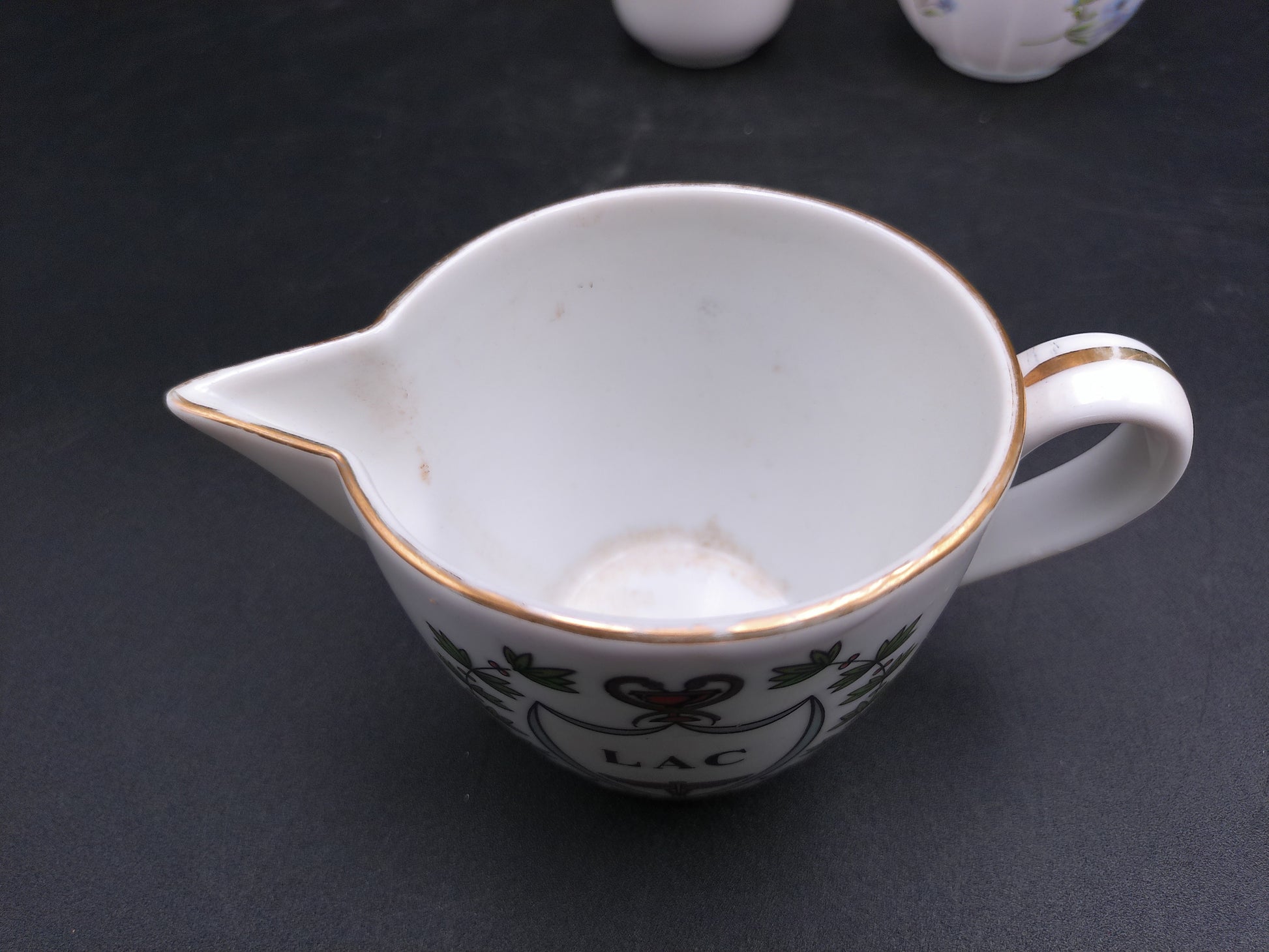 This Doctor Creamer Latin Goldhelley Dainty Blue Rock Fine Bone Chin Vintage is a historical and elegant piece for any collection. Made with the finest bone china and adorned with delicate blue rock accents, this creamer offers not only beauty but also durability. Perfect for serving and displaying cream or milk in style.