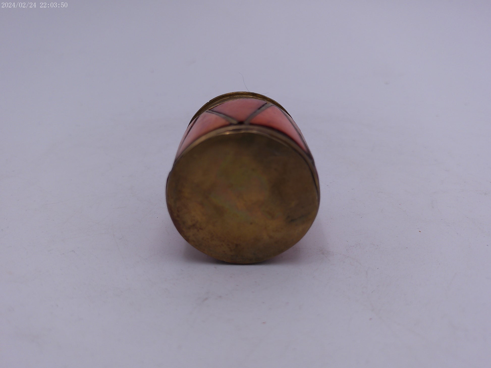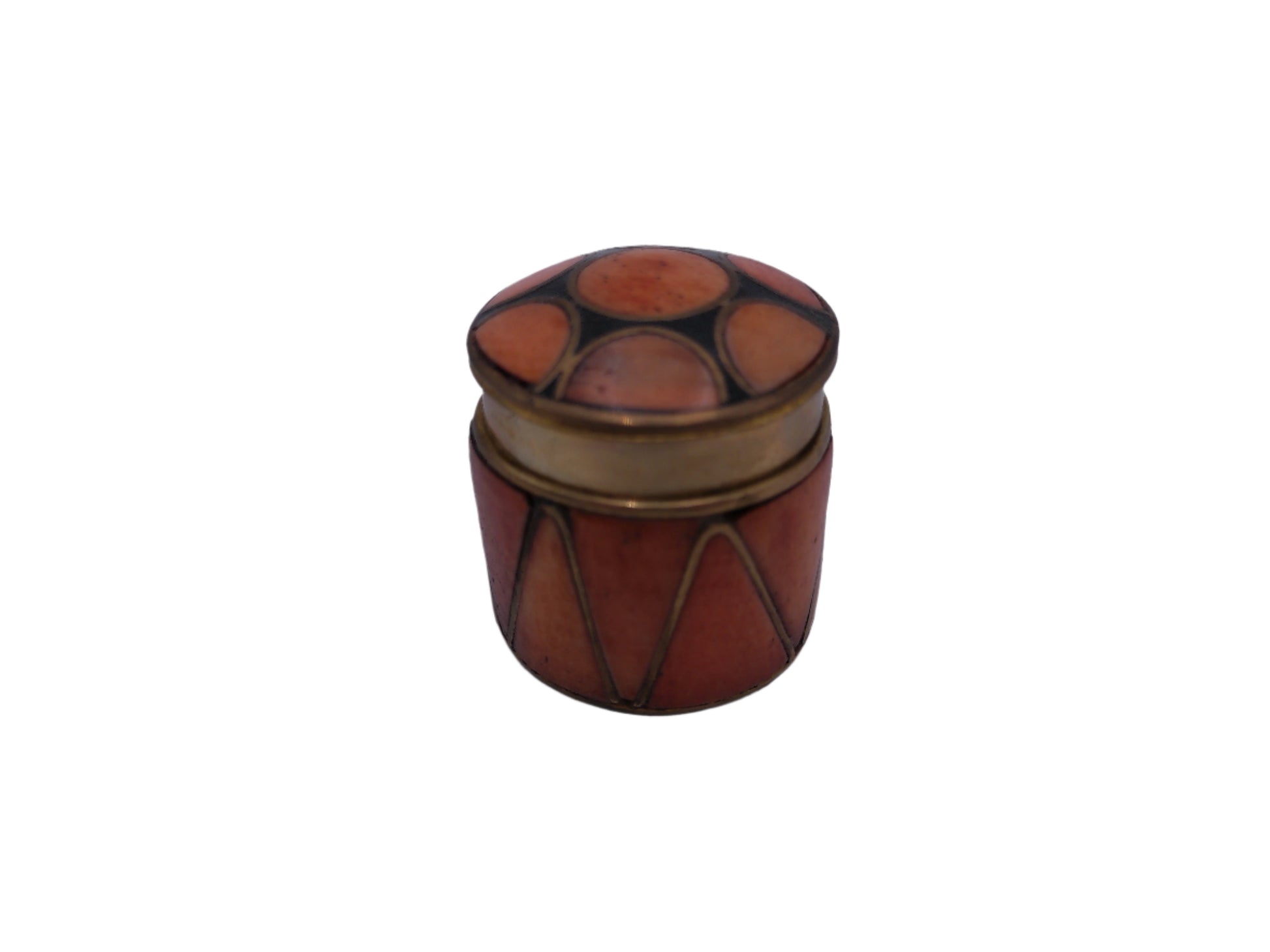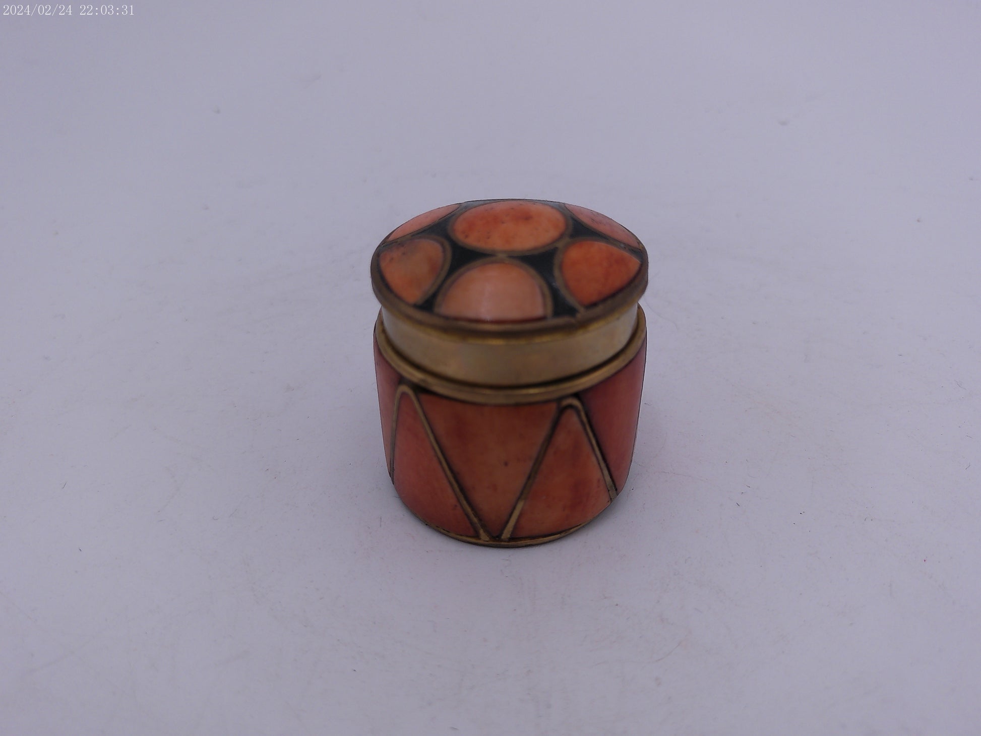Metal and Shell Lidded Trinket Pot with Blue Lining, Patterned Pot with Shell design