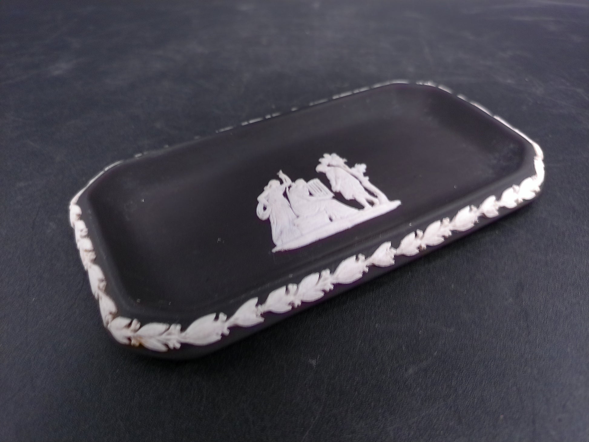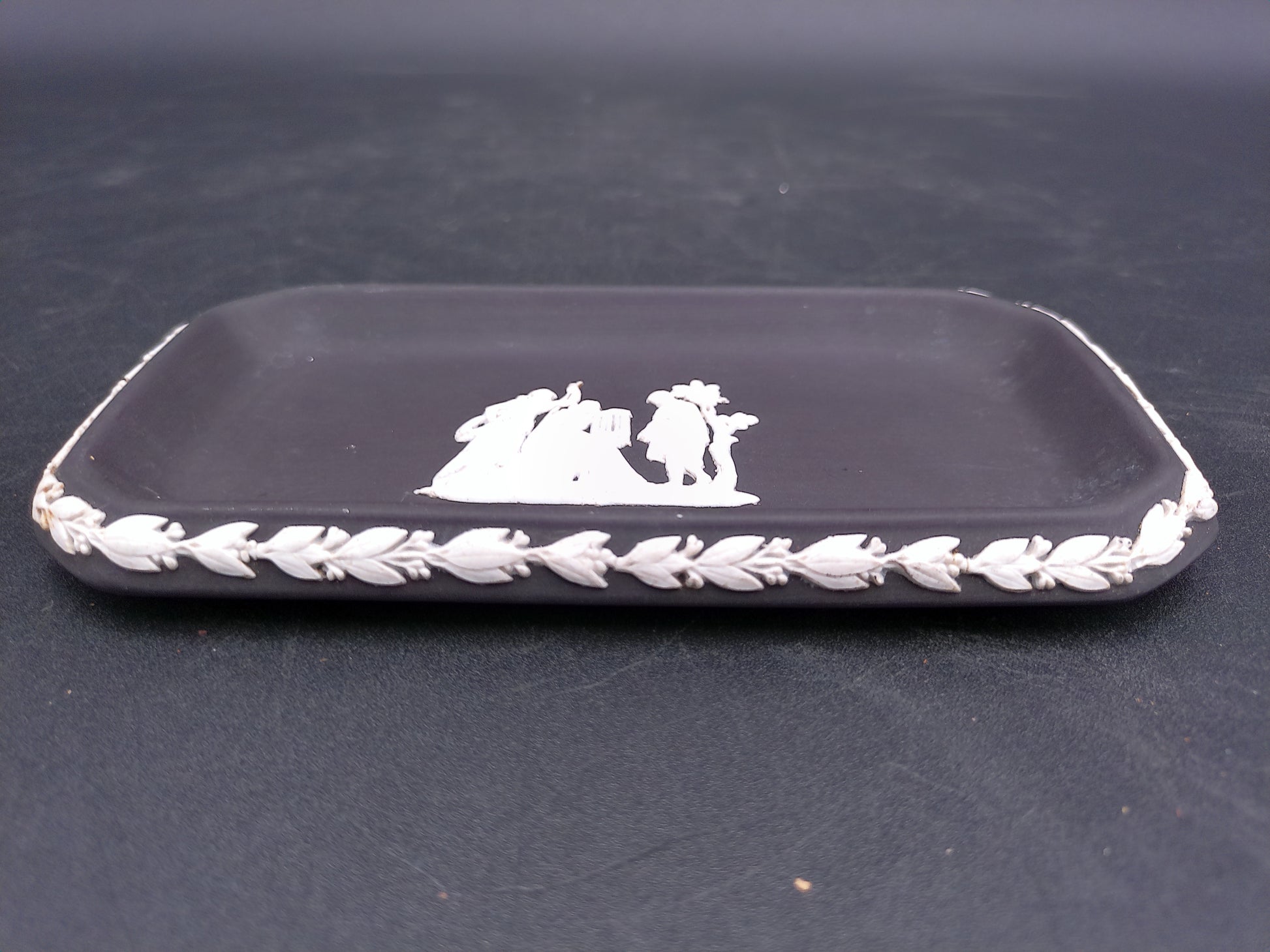 Wedgwood Black Jasperware Rectangular Tray Dish Made in England
