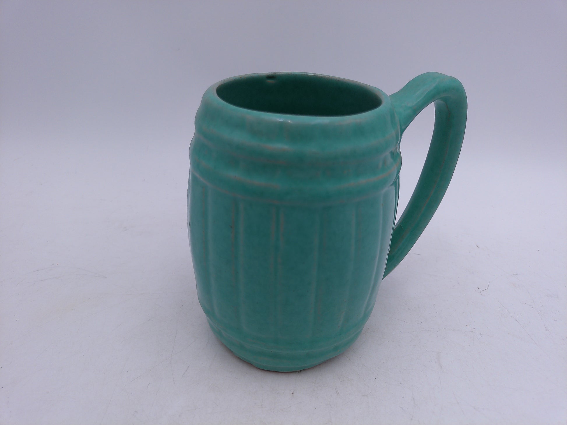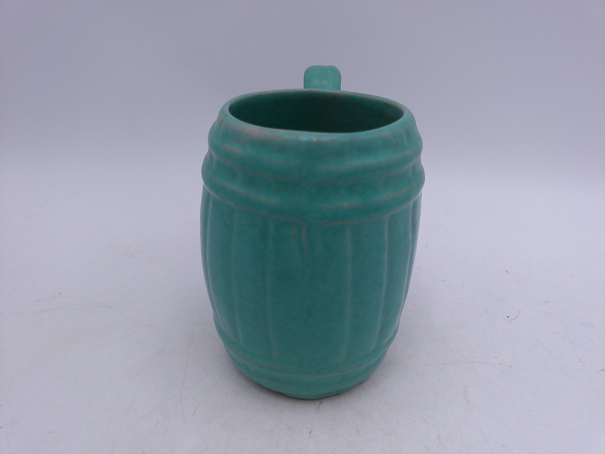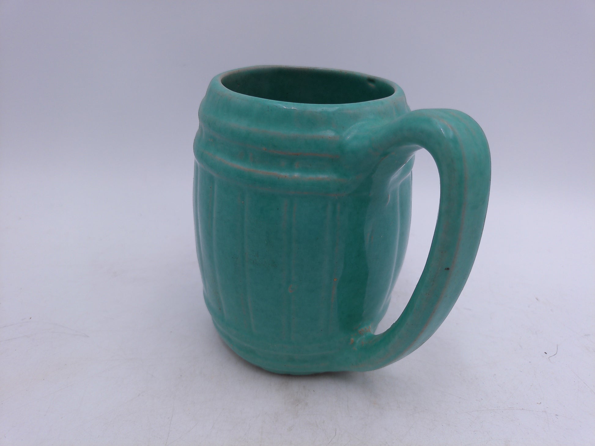 Beer or Coffee Cup Mug Blue Green Glazed Barrel Cup Mug Pottery