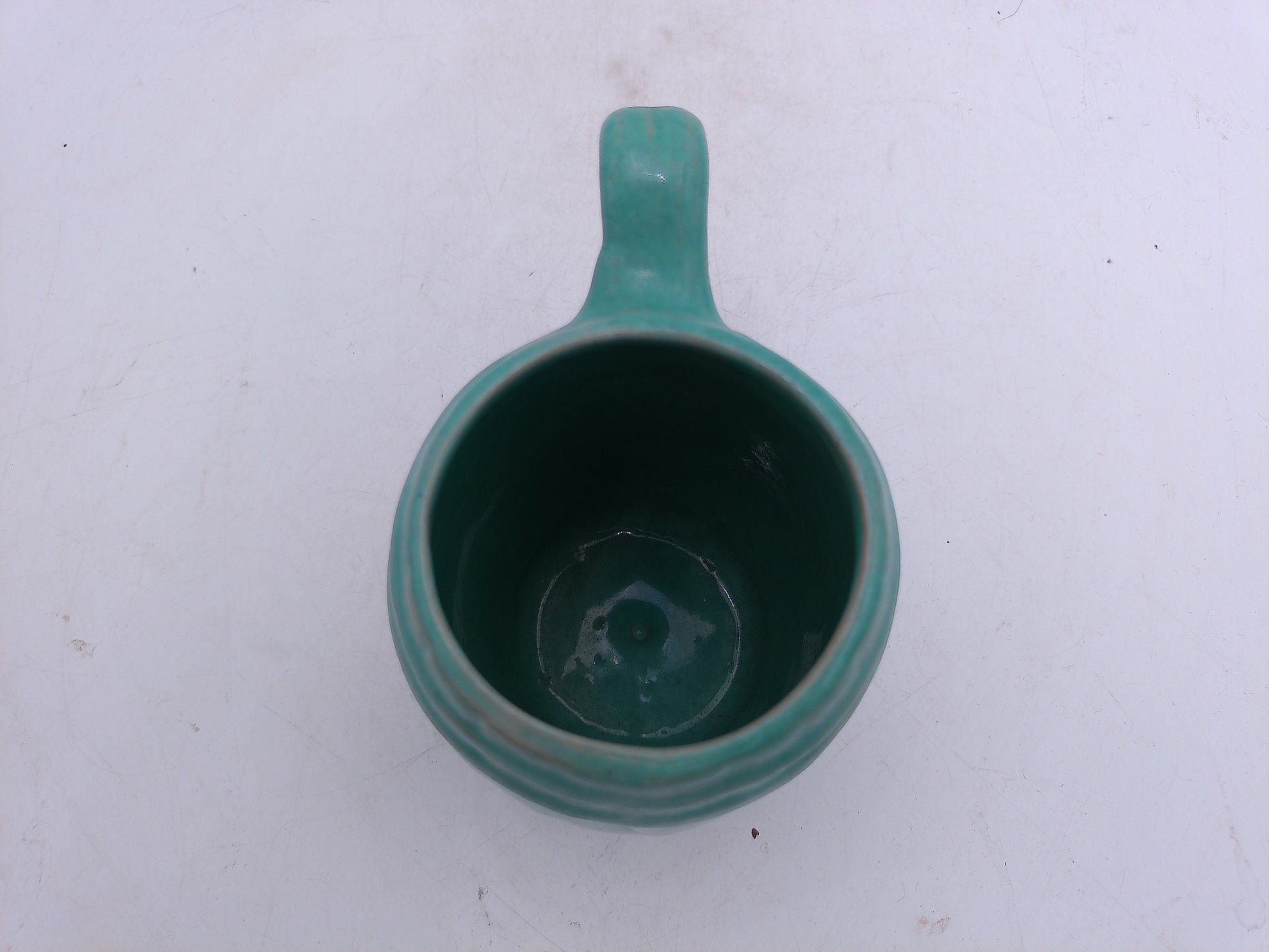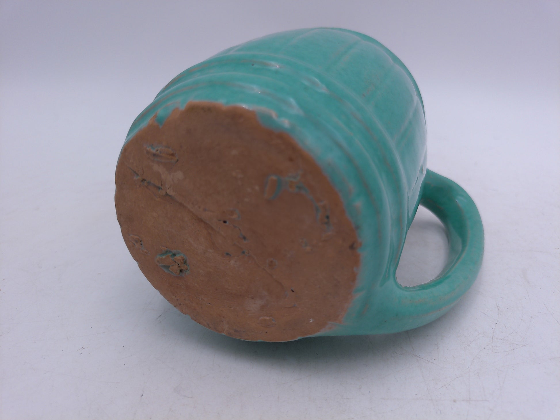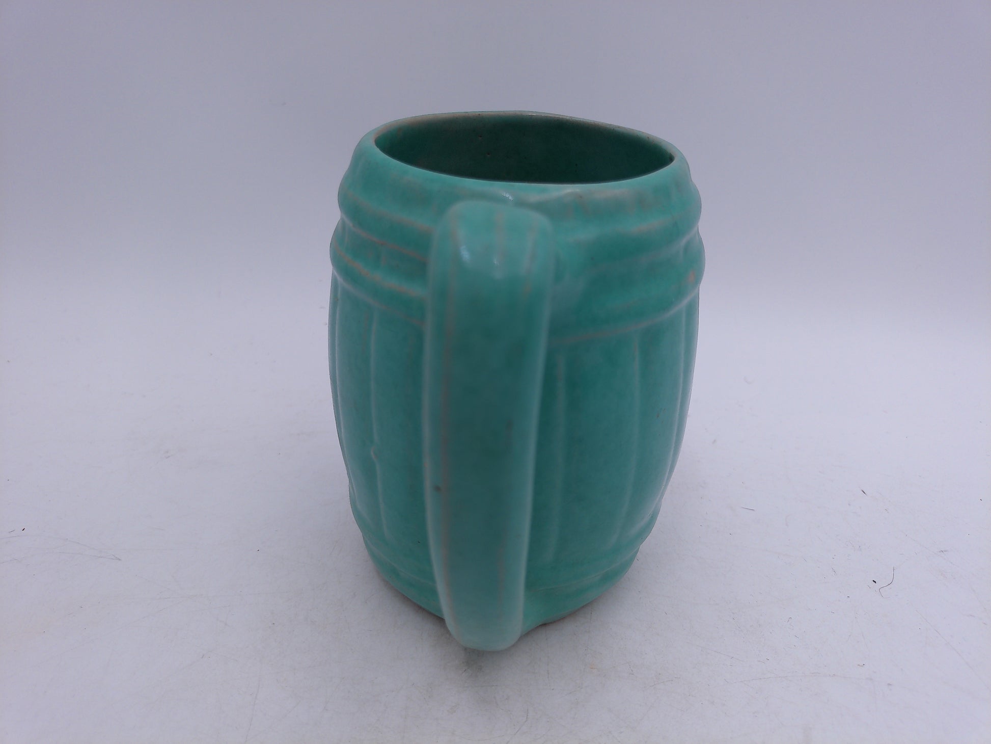 Beer or Coffee Cup Mug Blue Green Glazed Barrel Cup Mug Pottery