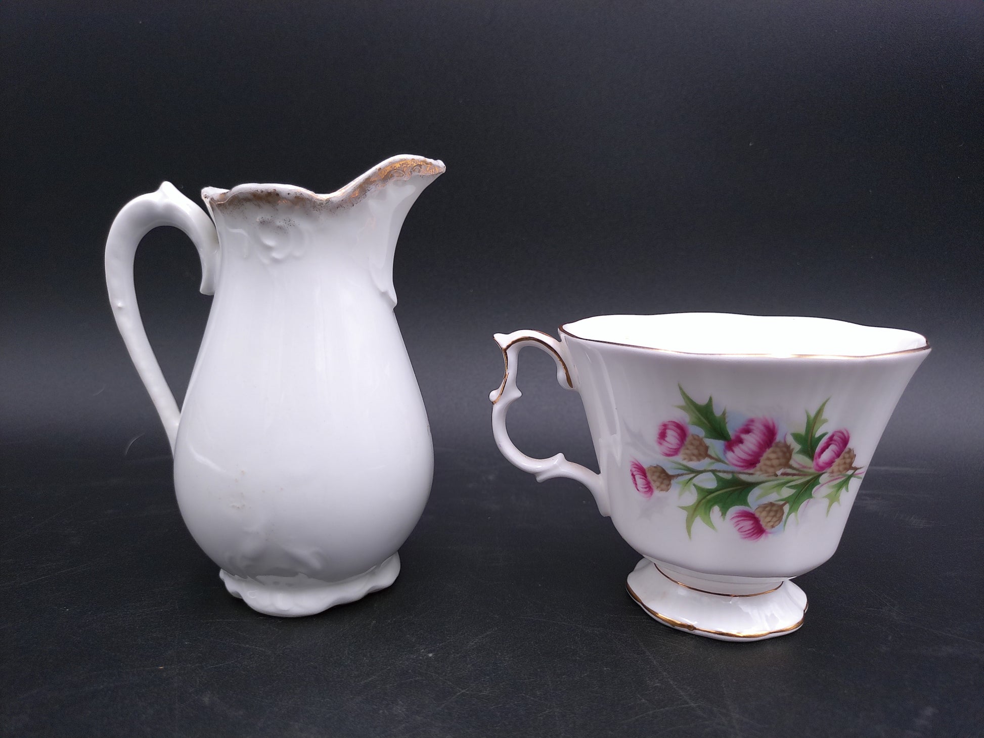 Elevate your tea time experience with our Royal Albert Bone China Tea Cup and another brand Decorative Picher set! Made of high-quality bone china, these elegant pieces feature a stunning royal floral decor that will add a touch of sophistication to any occasion. Treat yourself or a loved one to this luxurious set today.