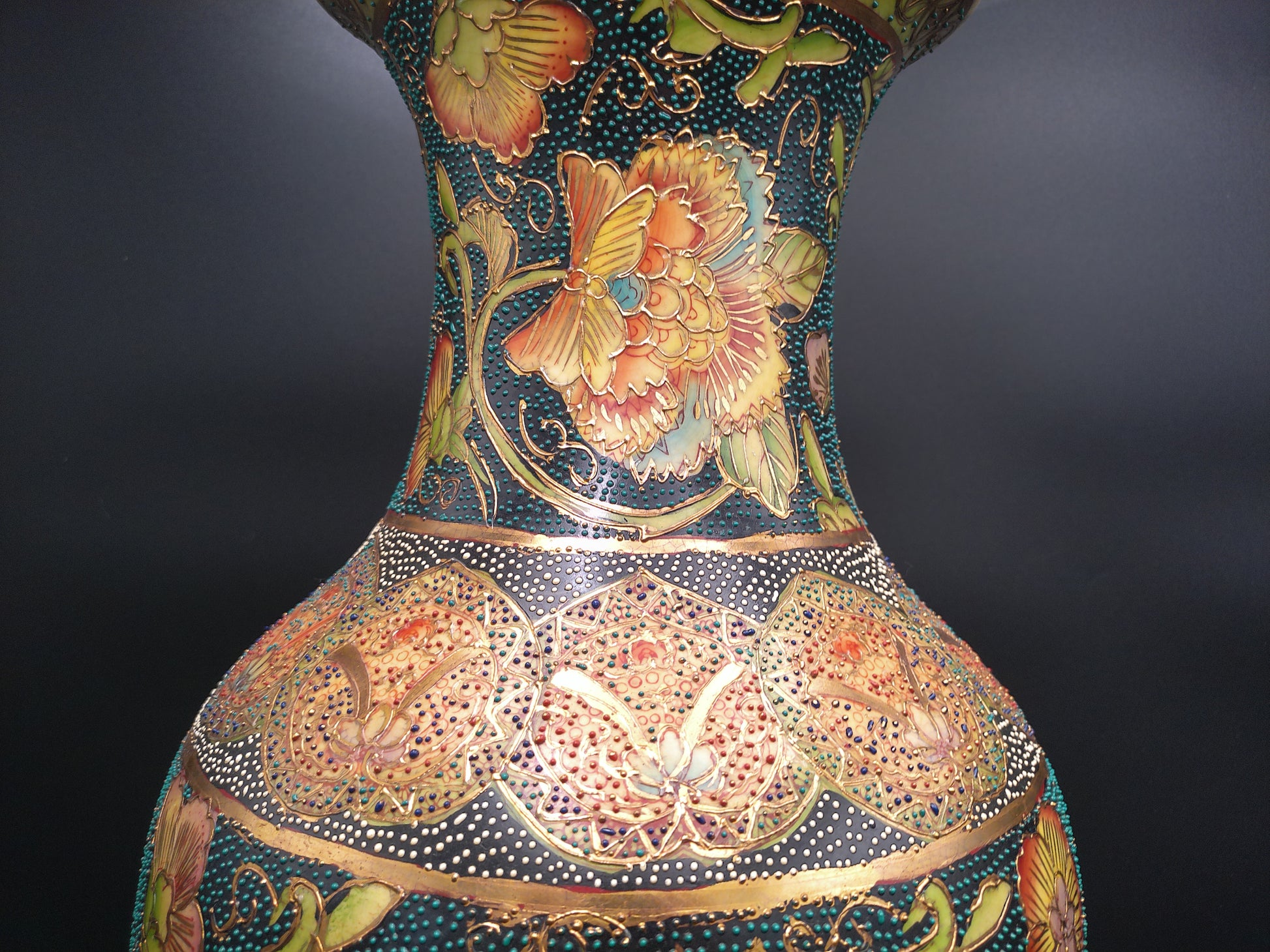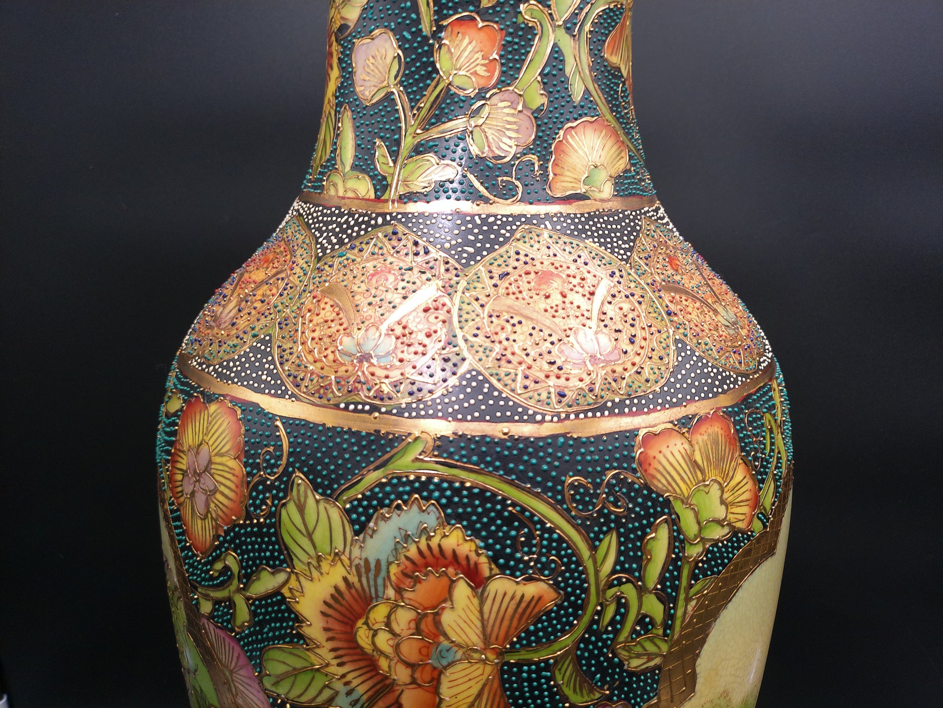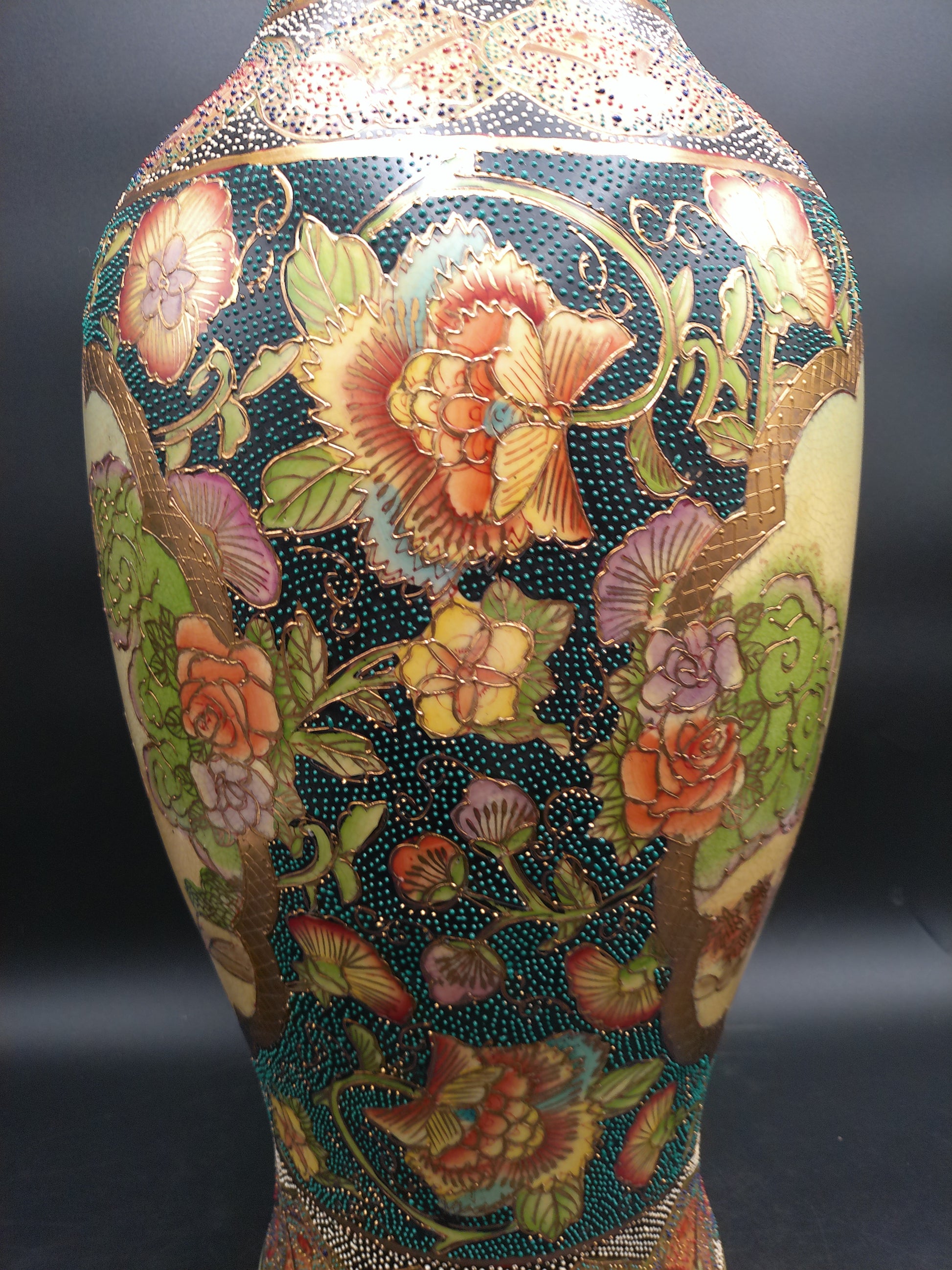 Japanese Japan Large Vase Gold Patterns Vintage Beautiful Bead Designs