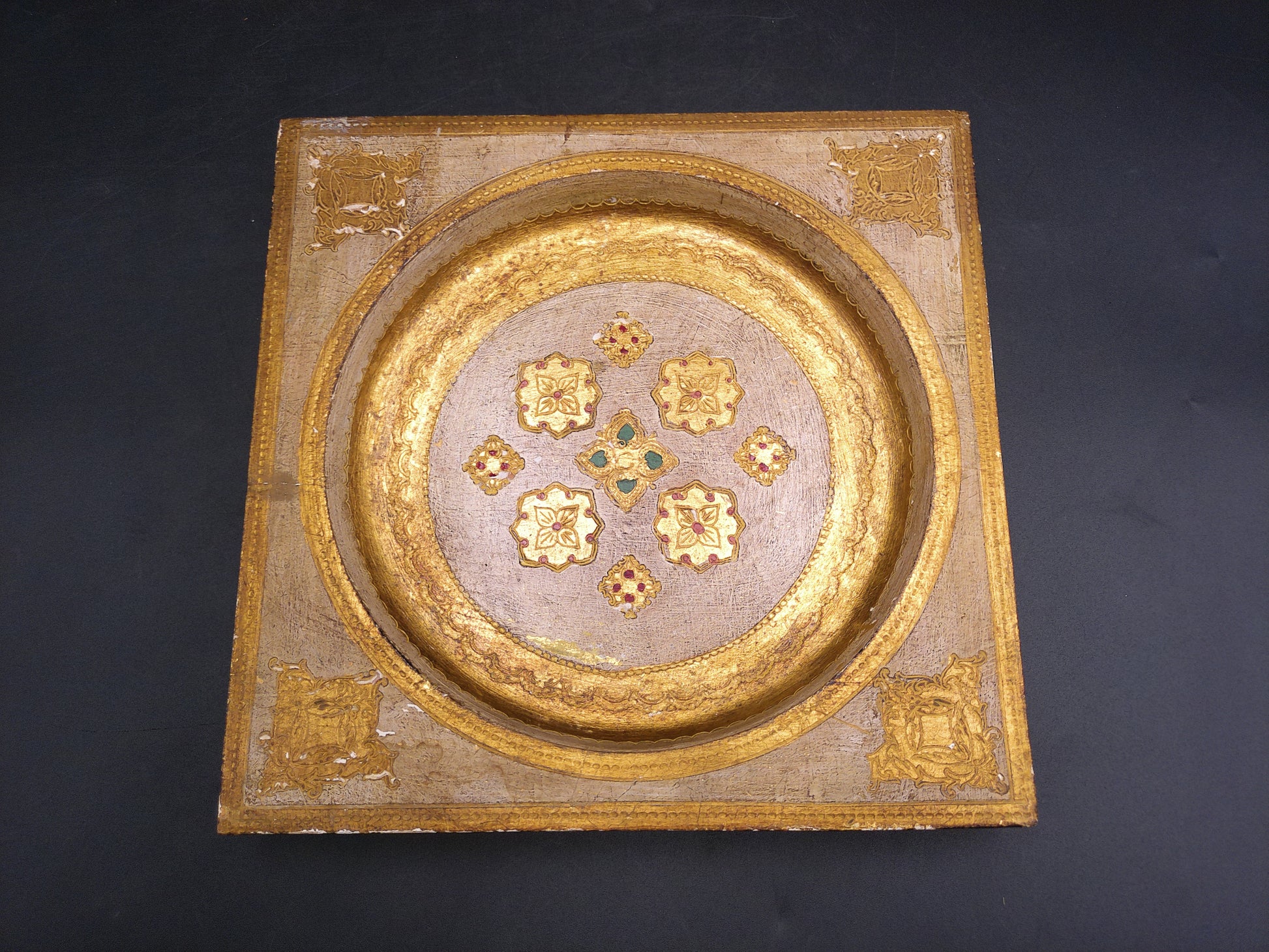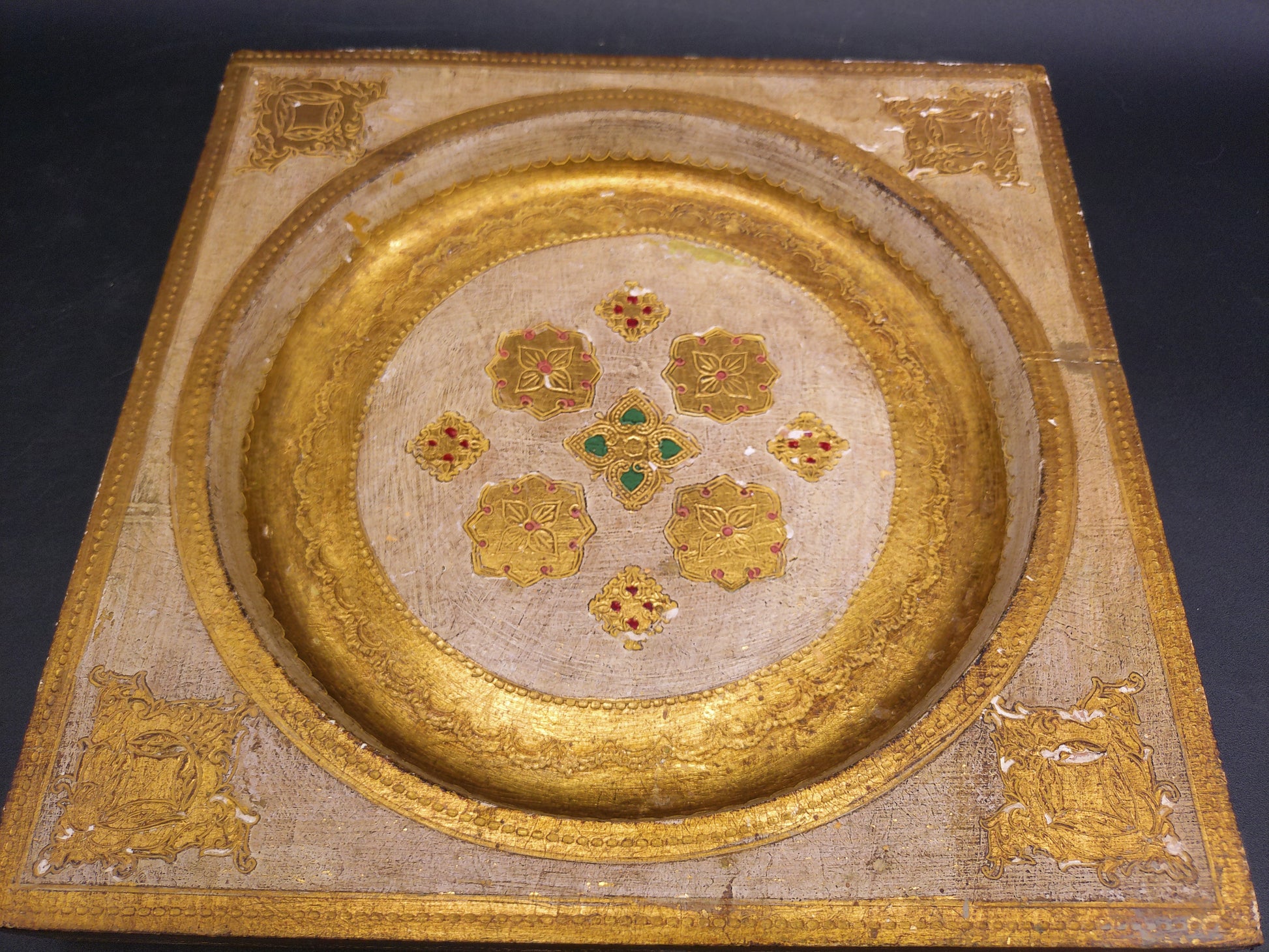 Florentine Wood Ashtray No Glass Insert Made in Florentia Italy