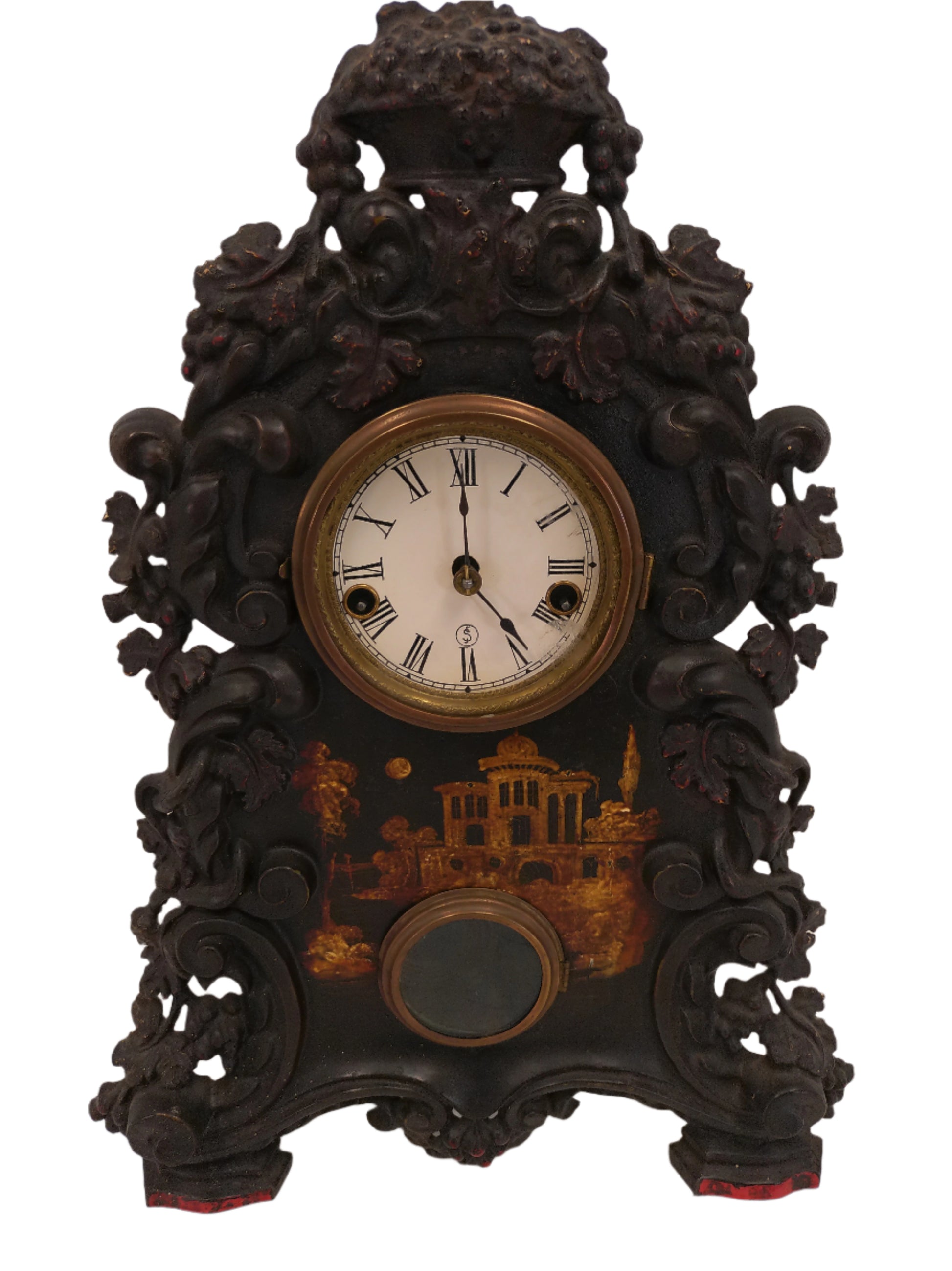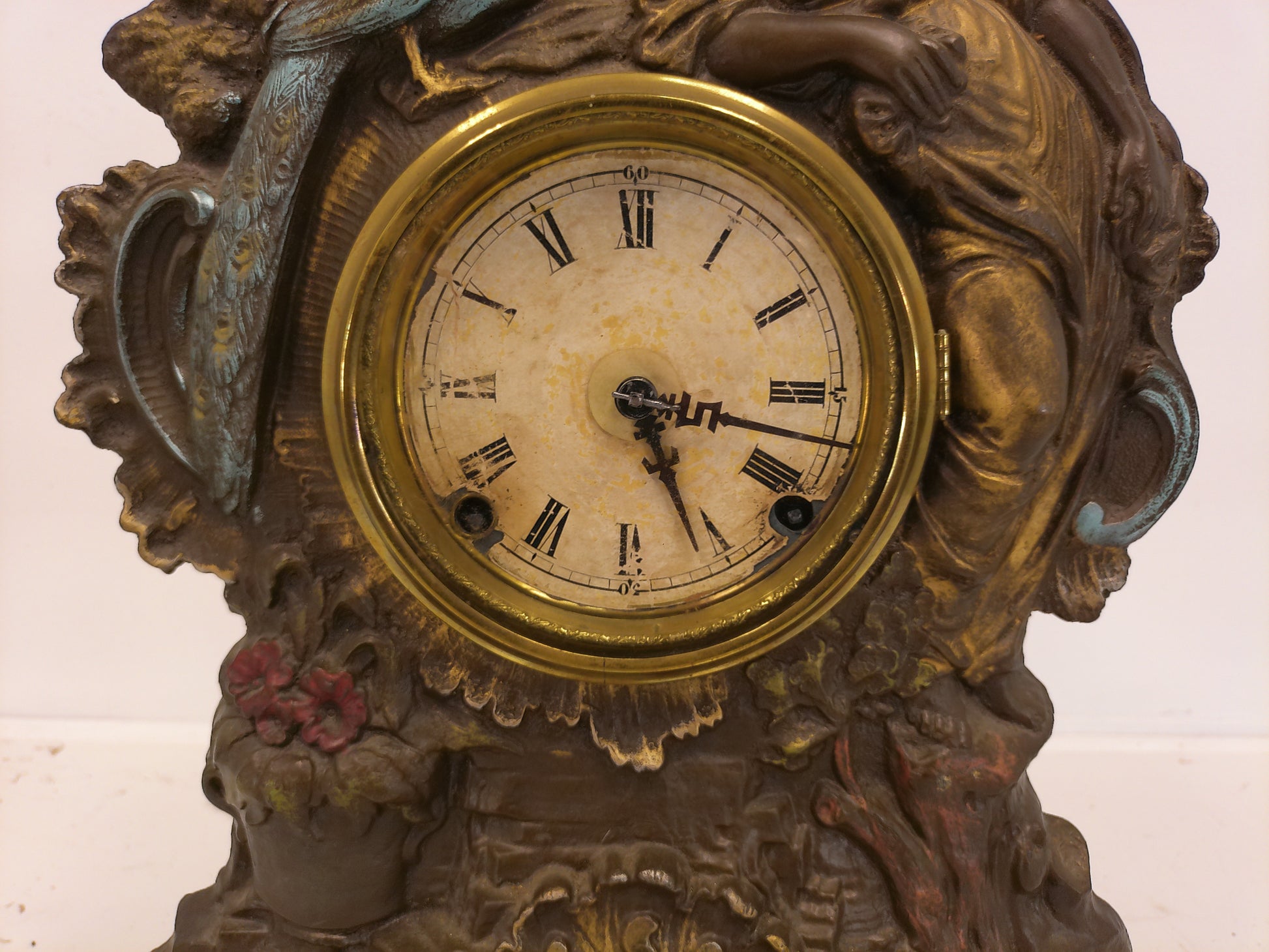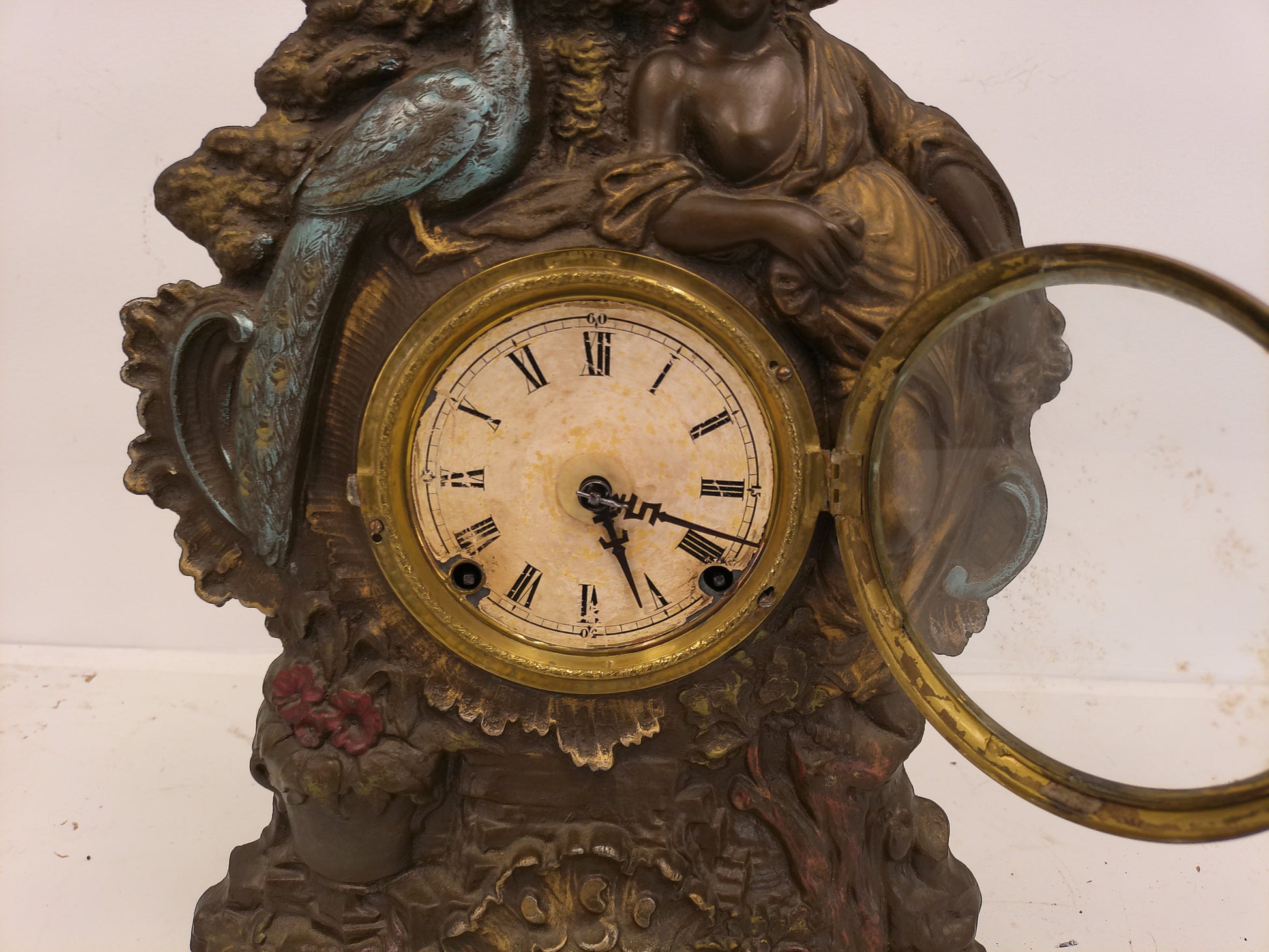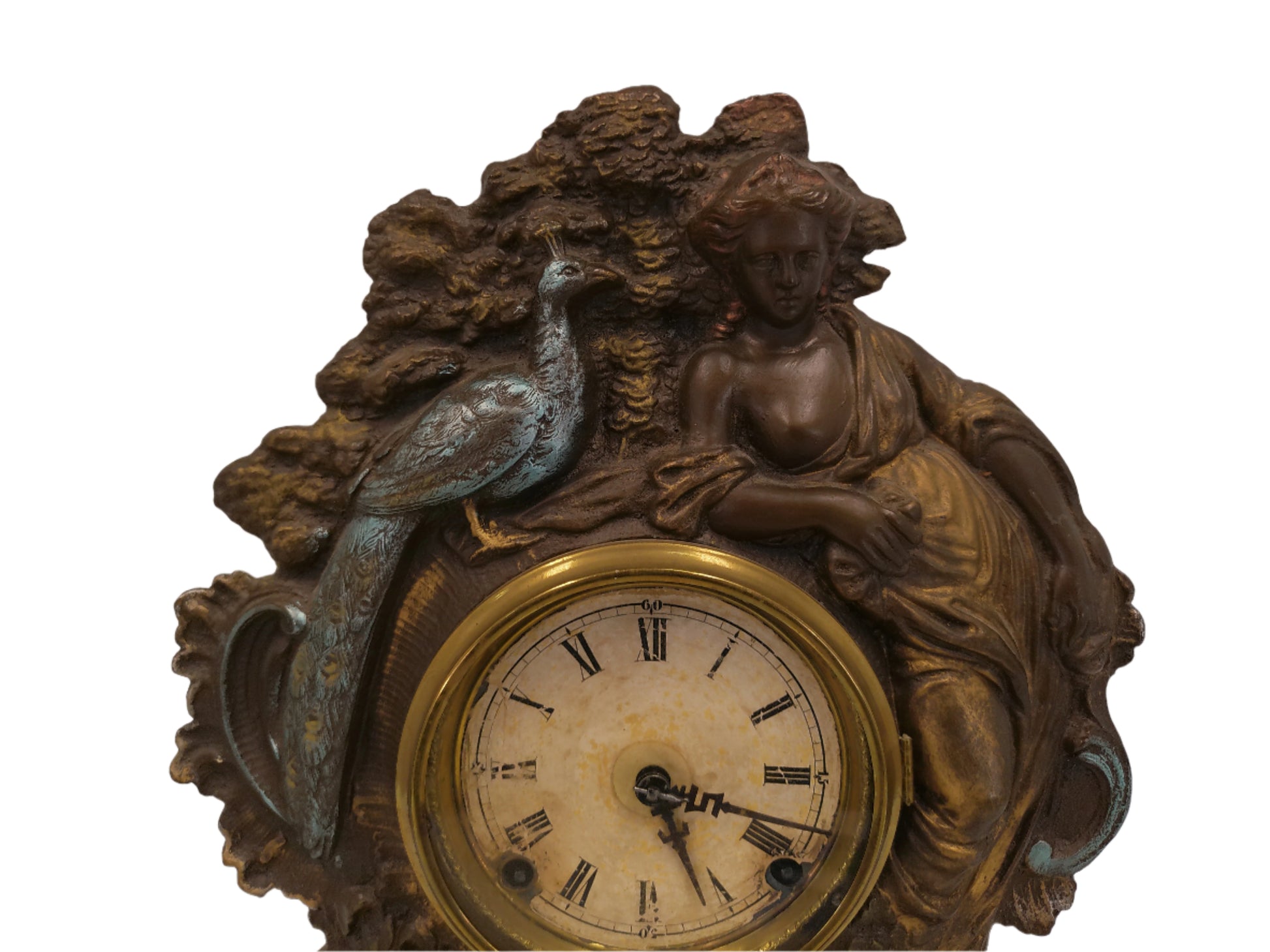 Nicholas Muller & Sons "Lady Peacock No. 51" Cast Iron Mantel Clock 8 Day
