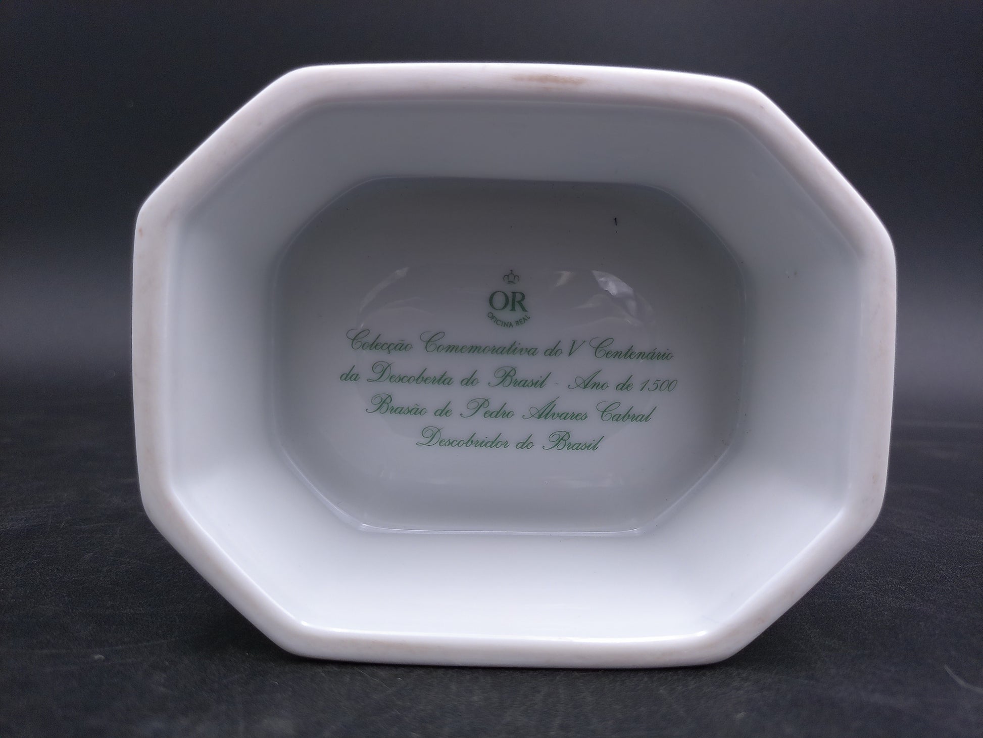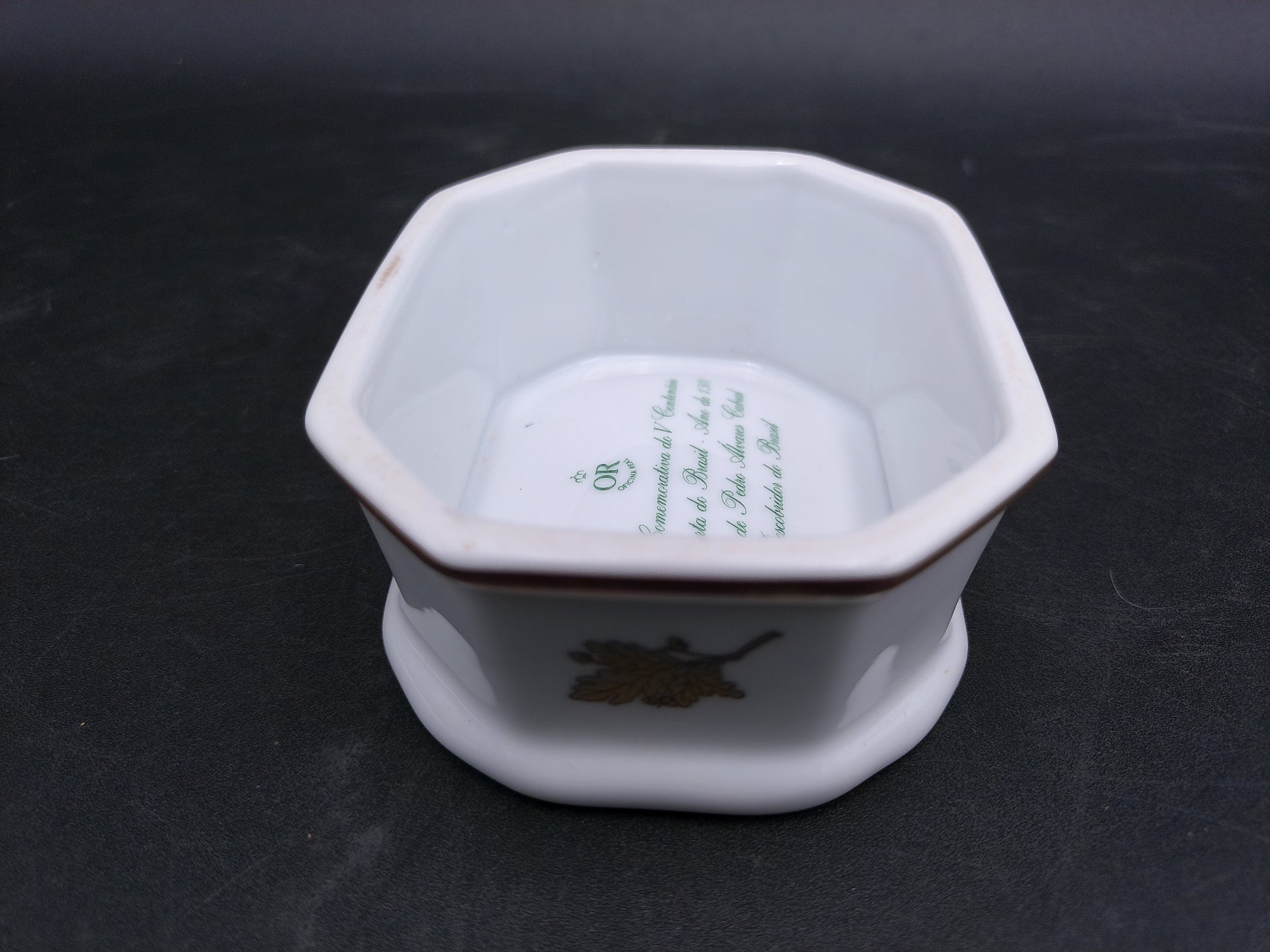 Gold Plated Rims Trinket Box 8 Sided Porcelain Made in Brazil