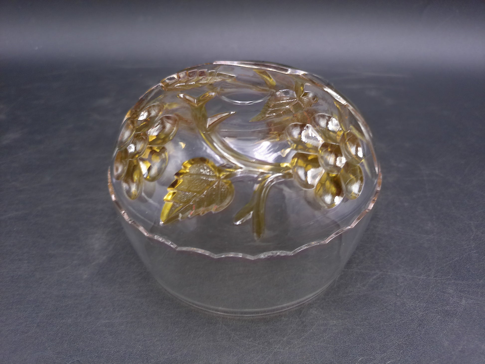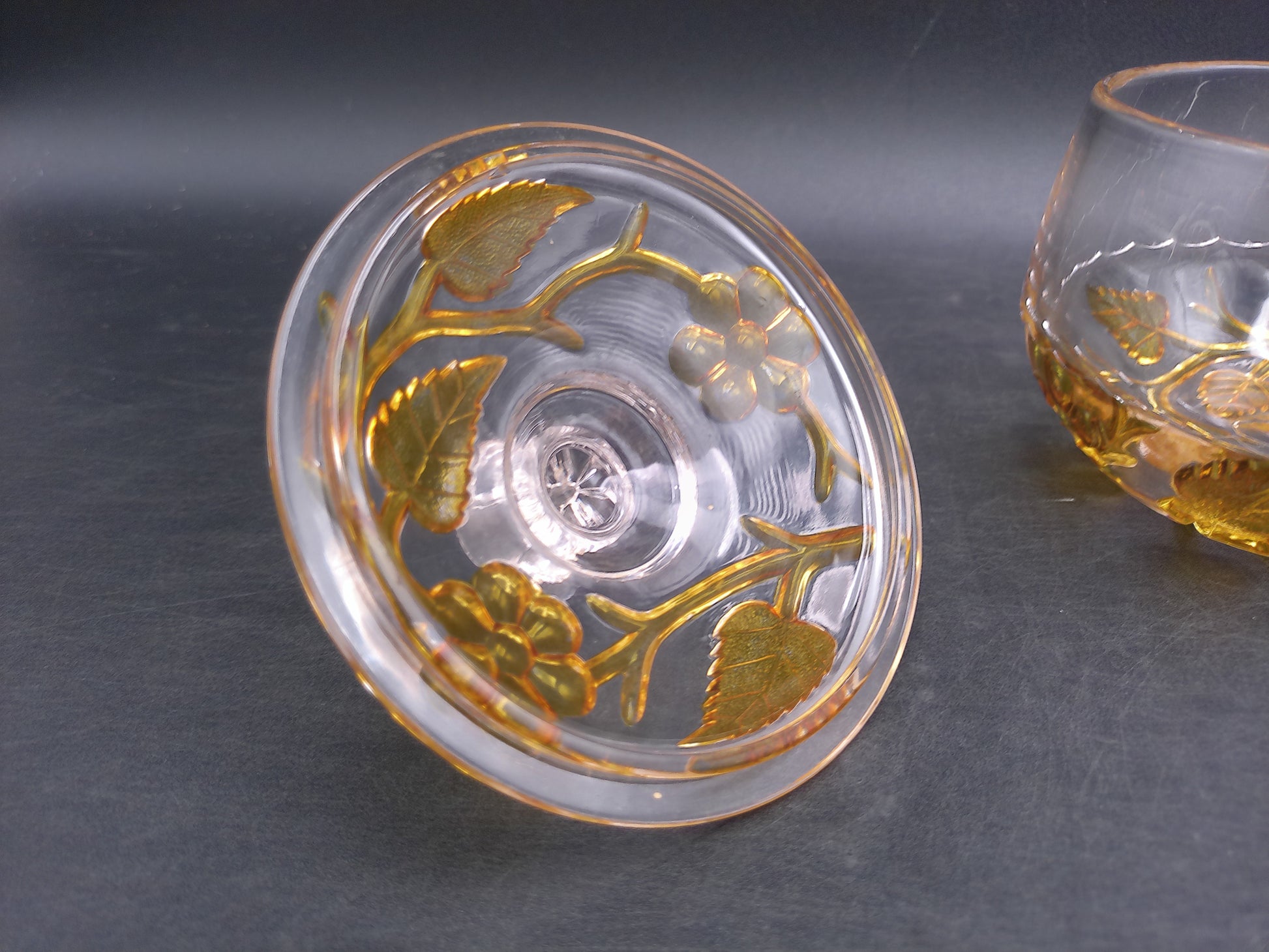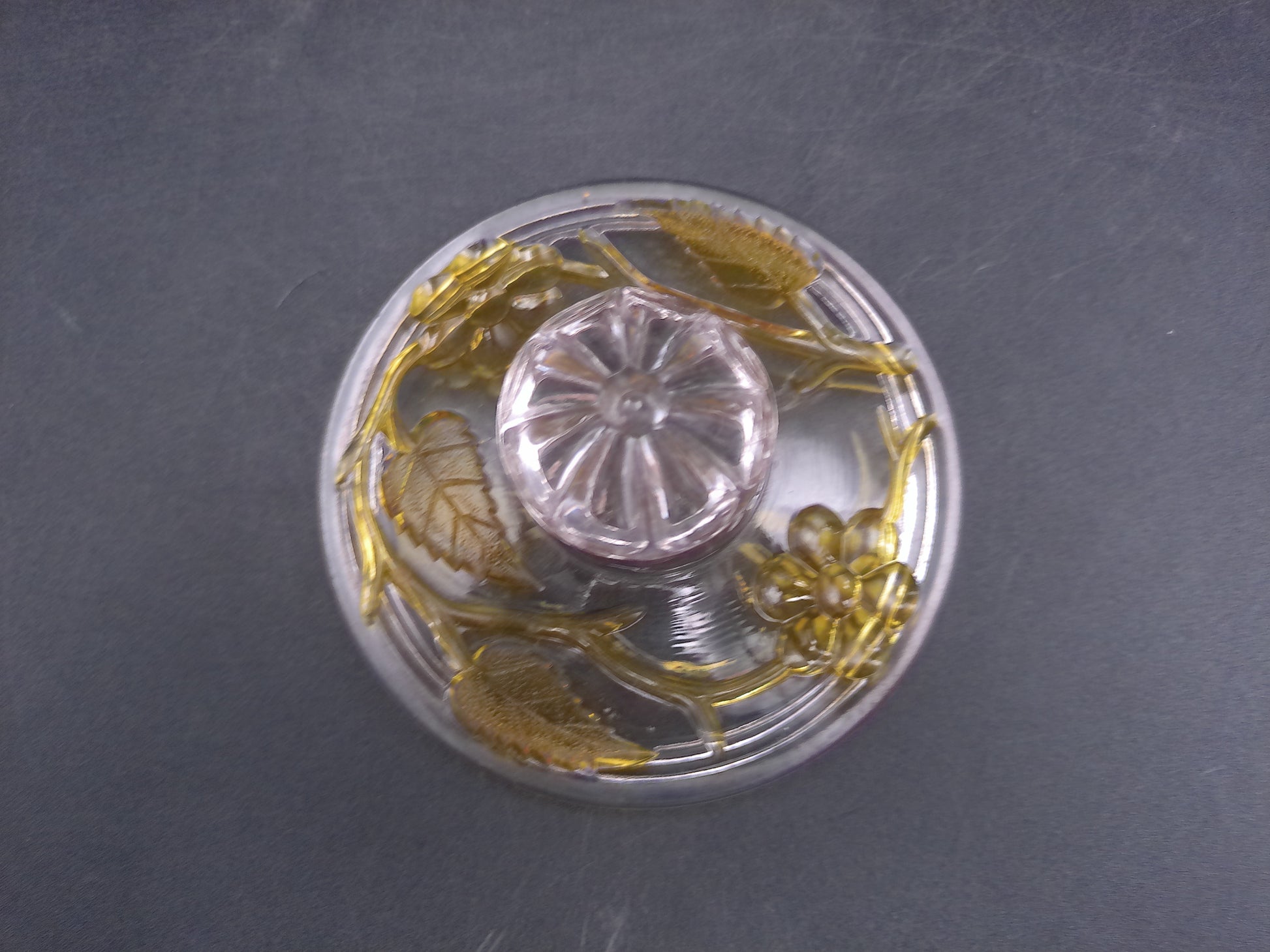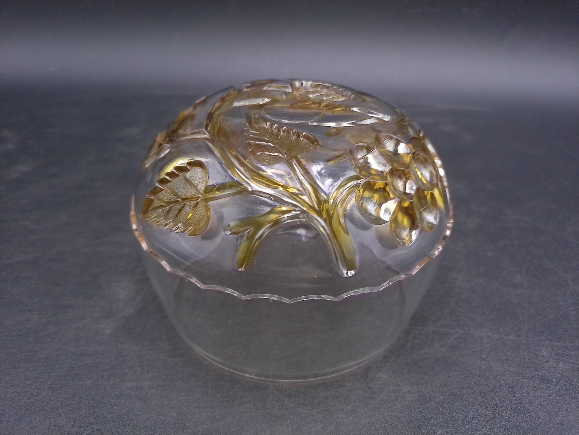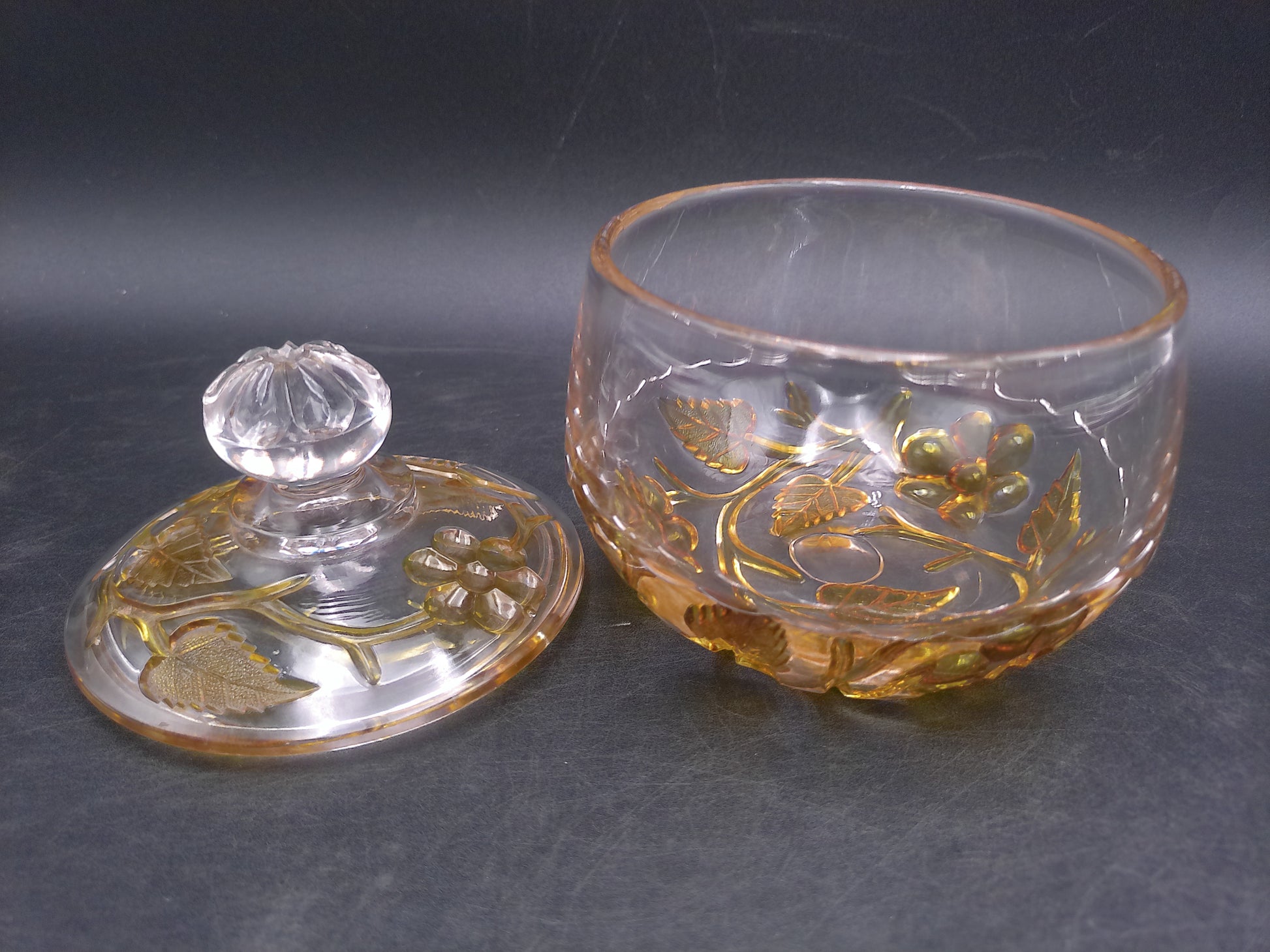Old and Rare Crystal Candy or Jam Jar Amber Glass Floral Glass Design with Lid