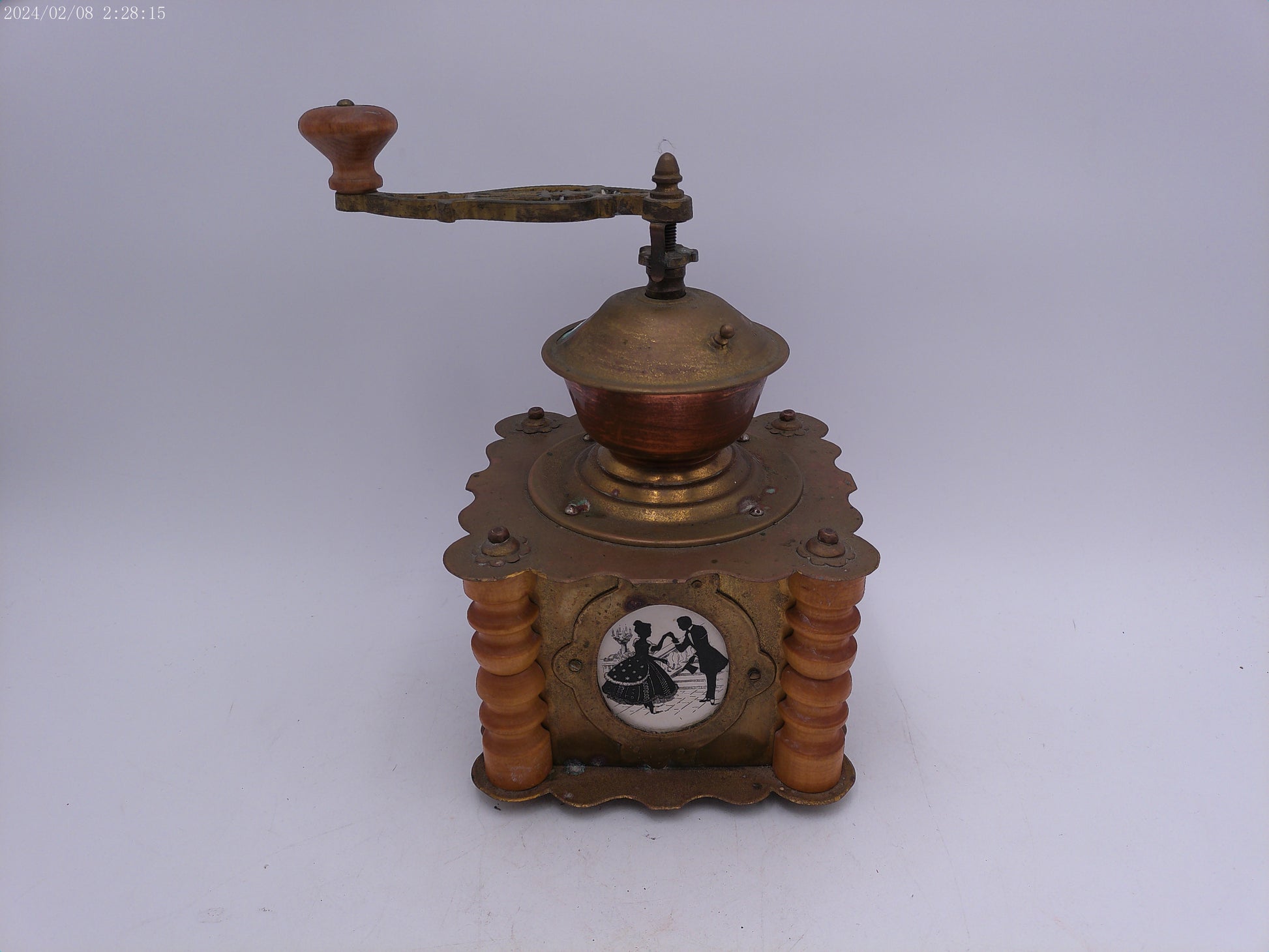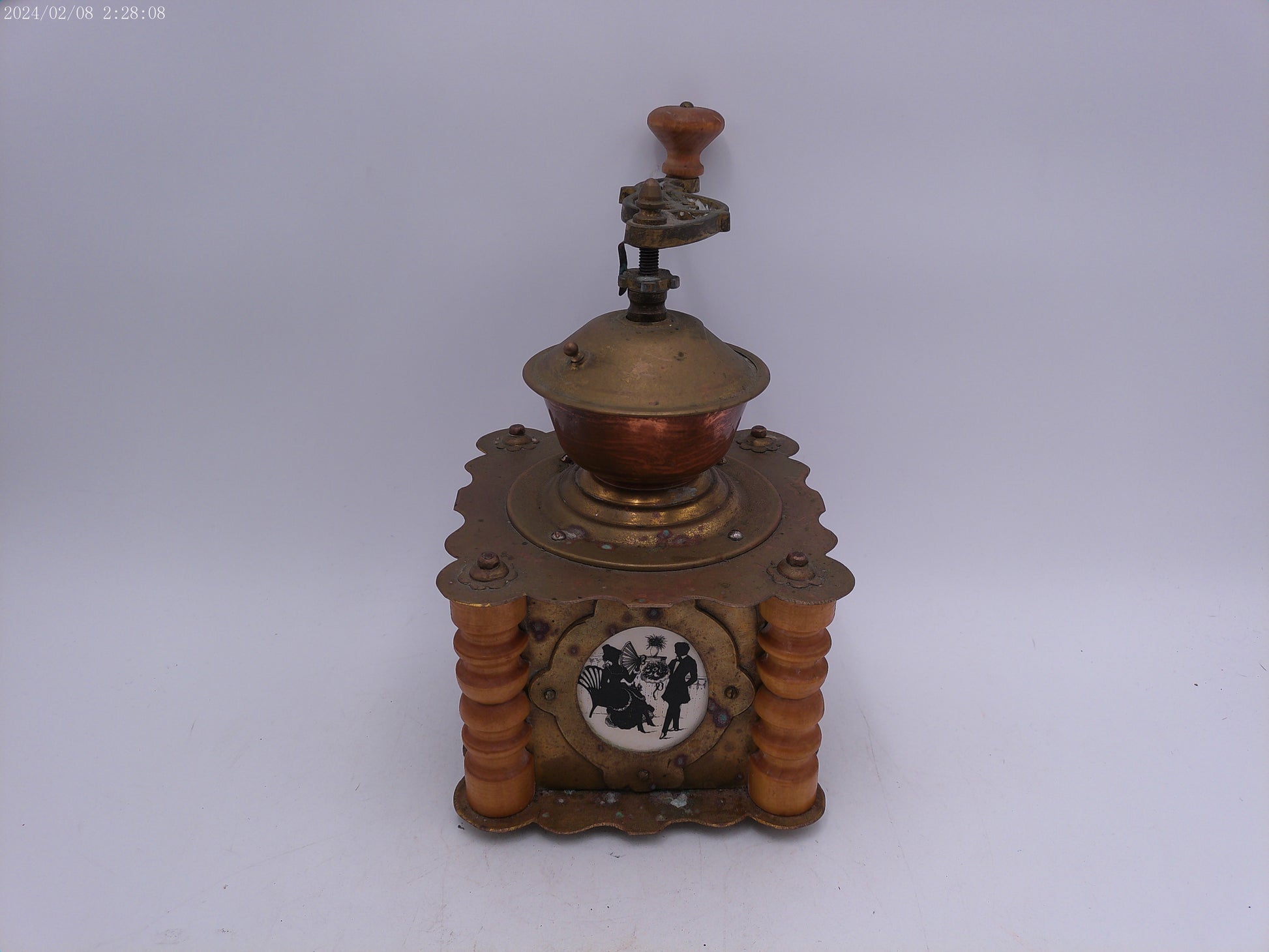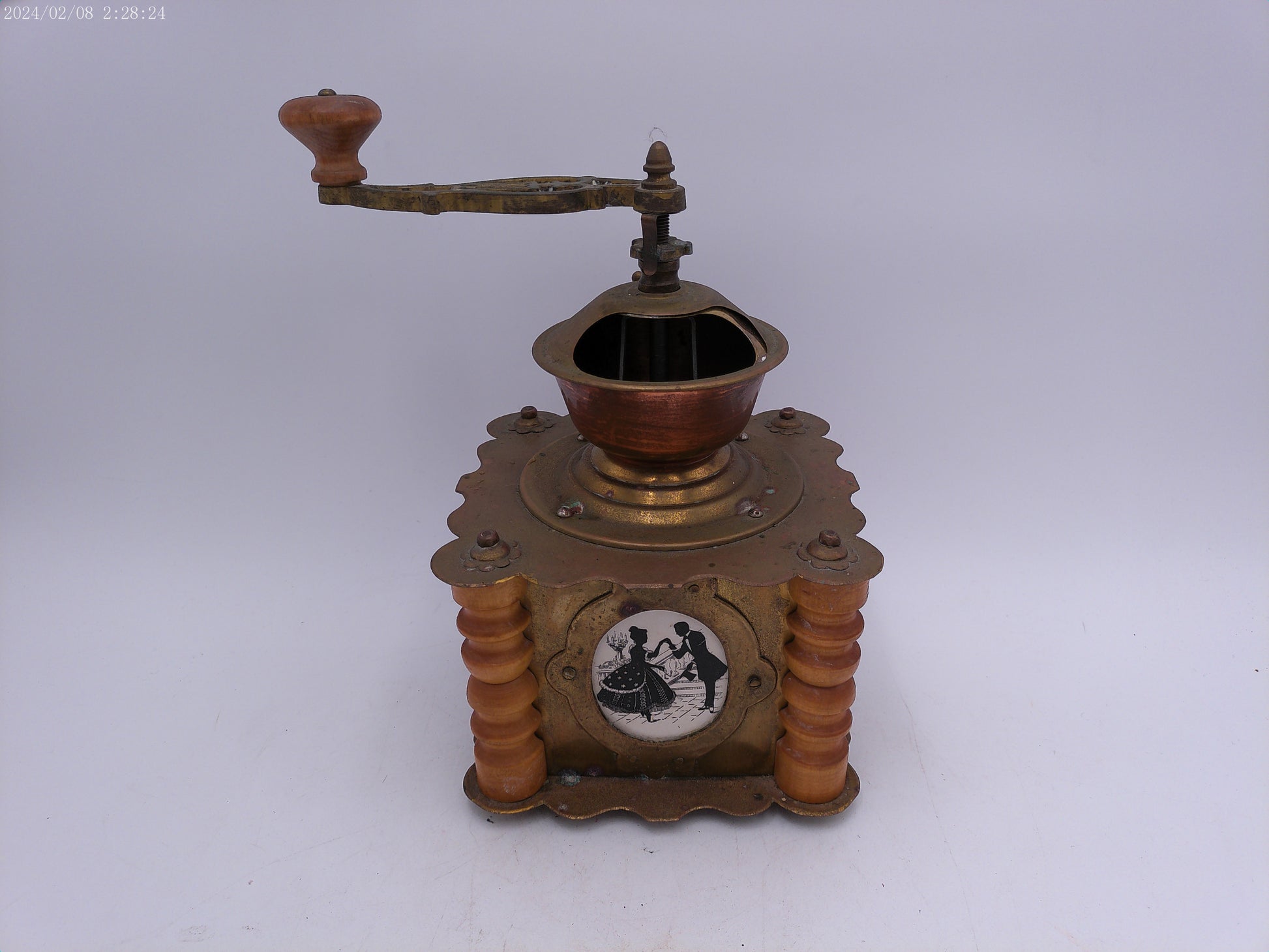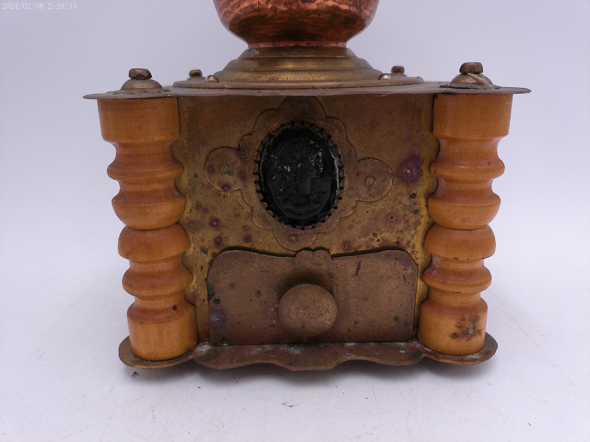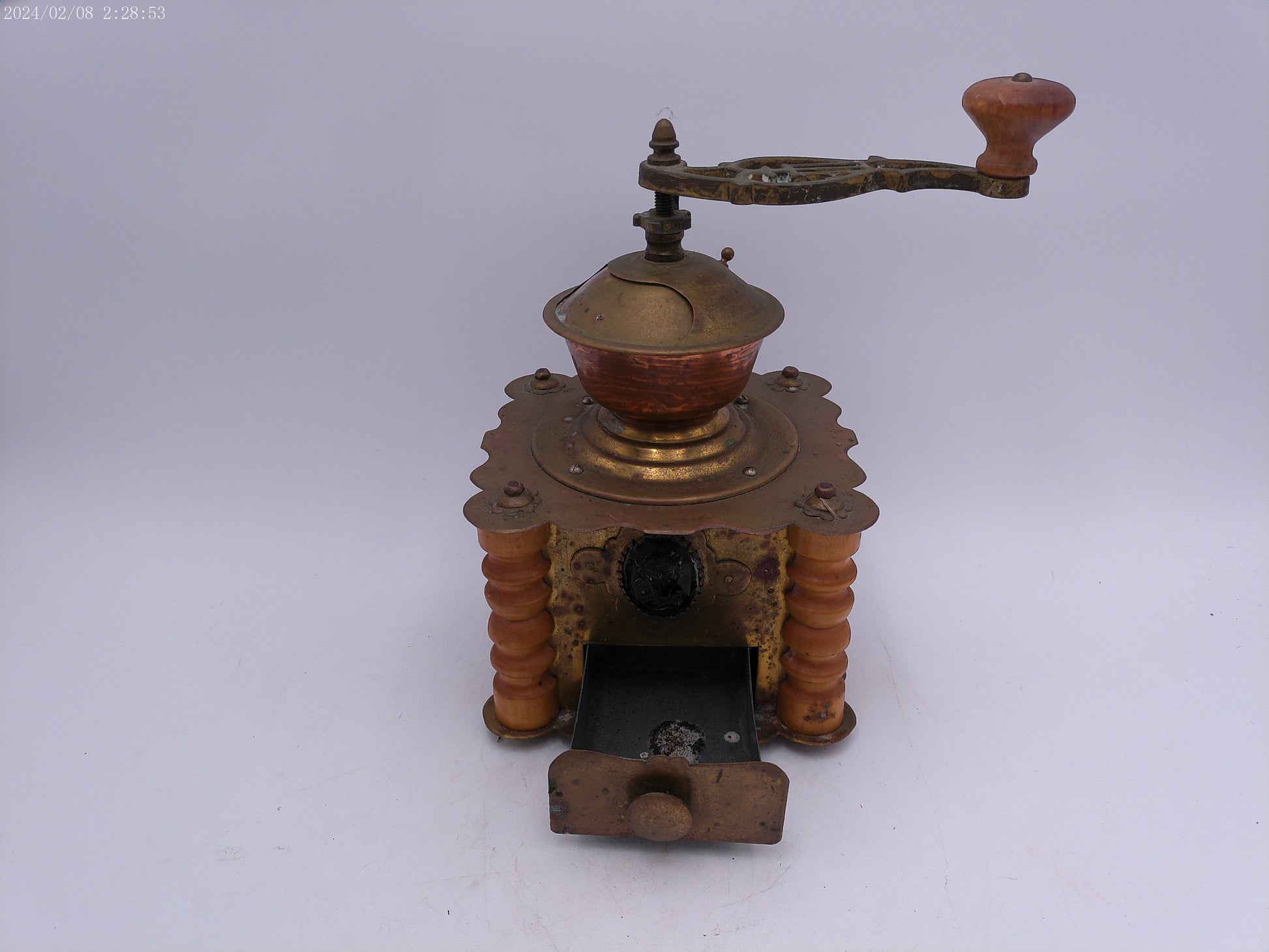Ornate Antique Wooden Brass Coffee Grinder With Drawer Kitchen Decor