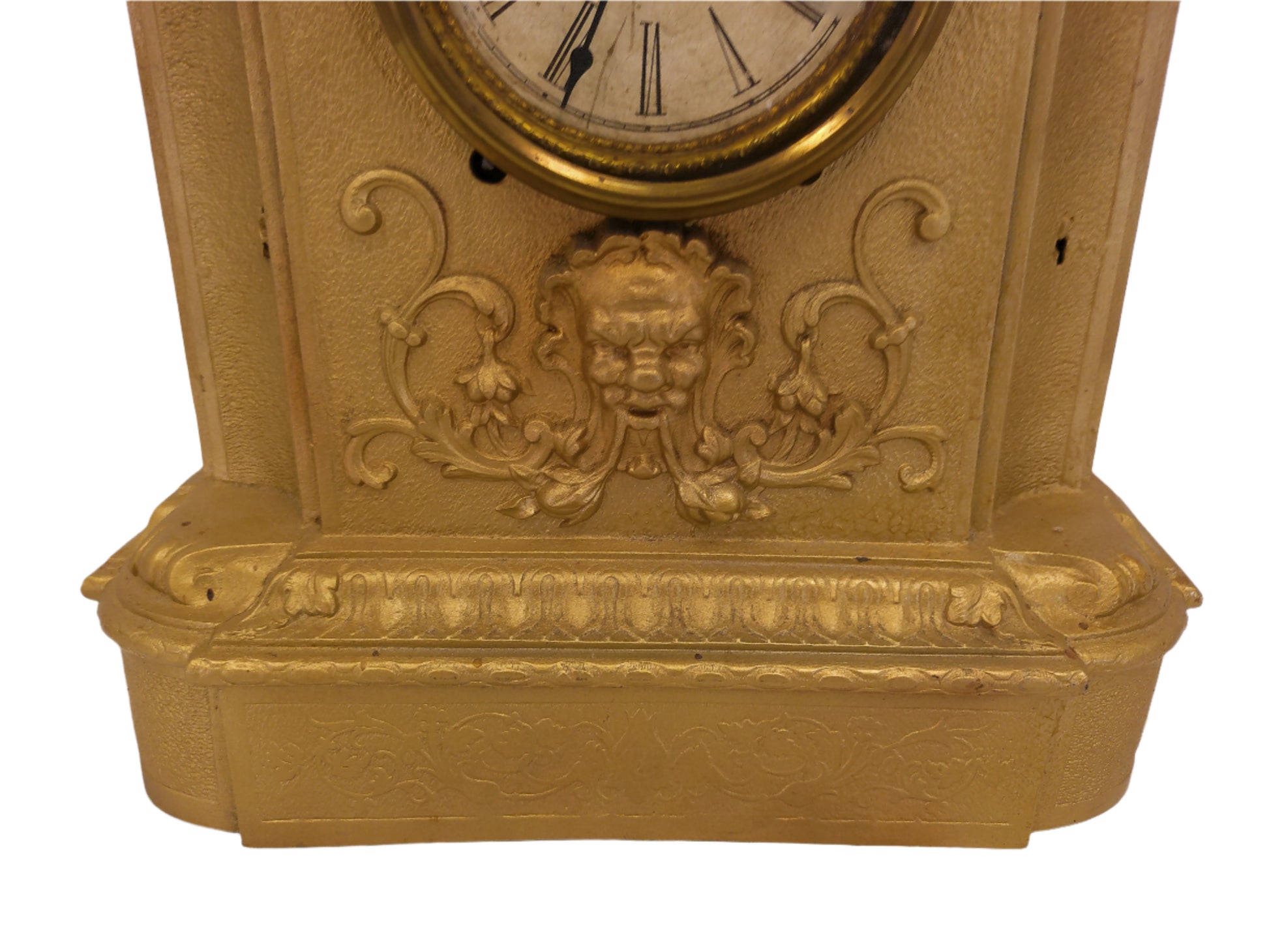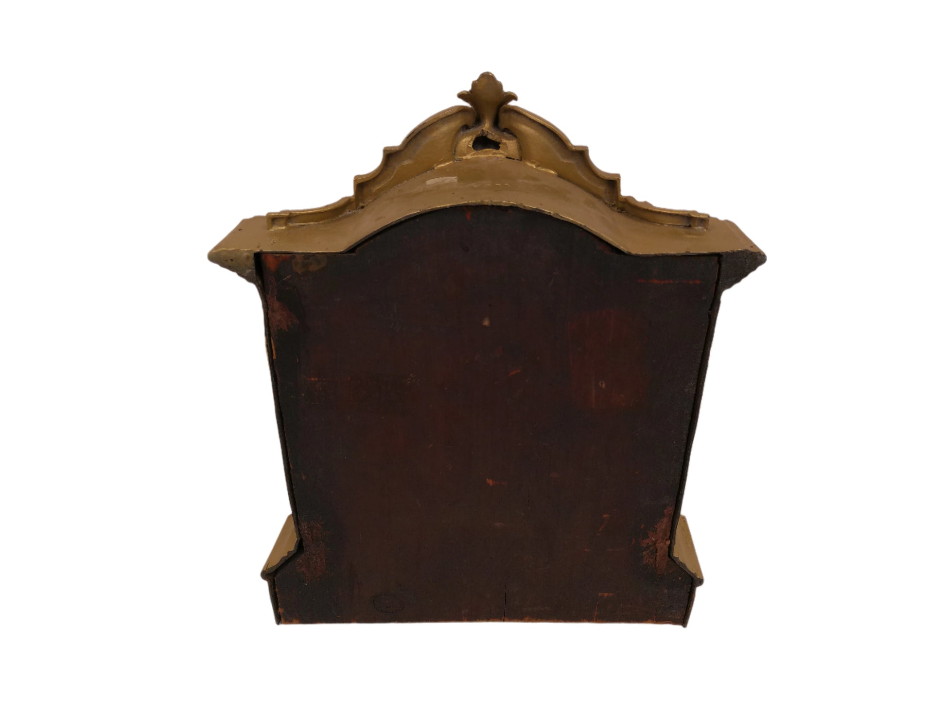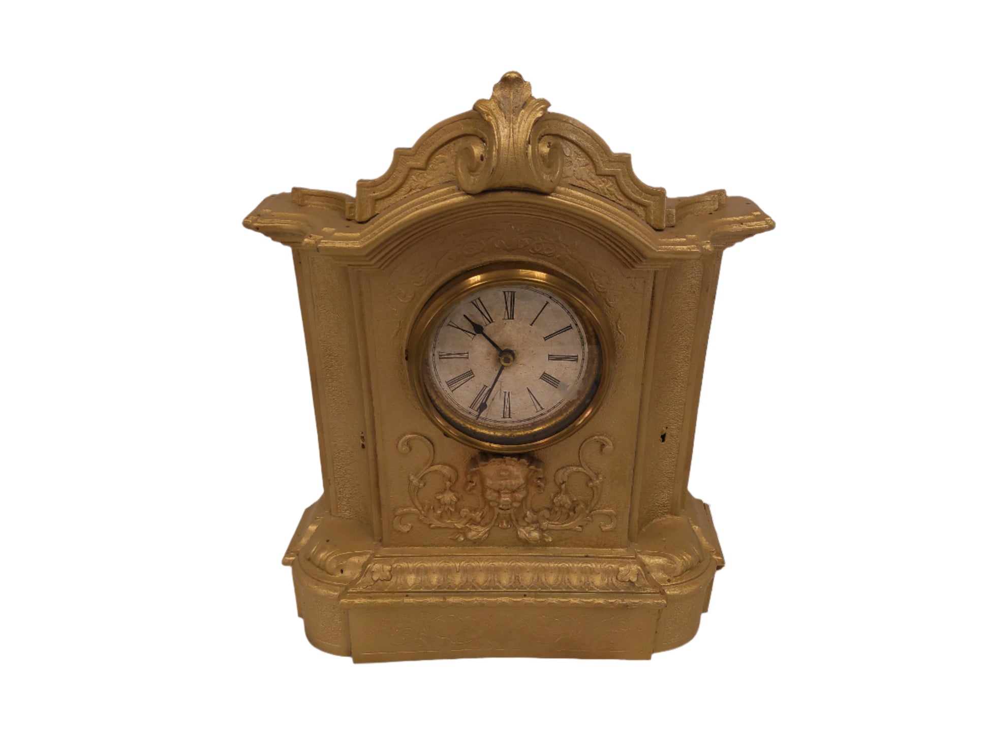 This ornate mantel clock is crafted from high-quality, painted brass with antique gold finish. Its intricate design adds a touch of elegance to any room. Enjoy accurate timekeeping and a beautiful centerpiece with this antique-style clock.