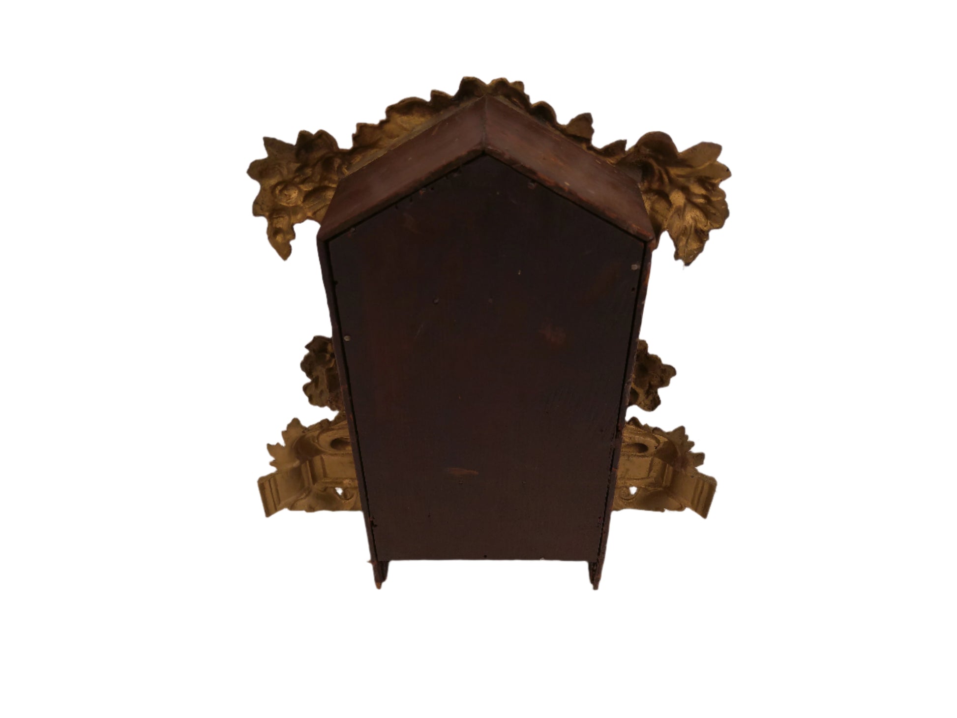 Ornate antique Gold painted Metal Clock With Wood Backing