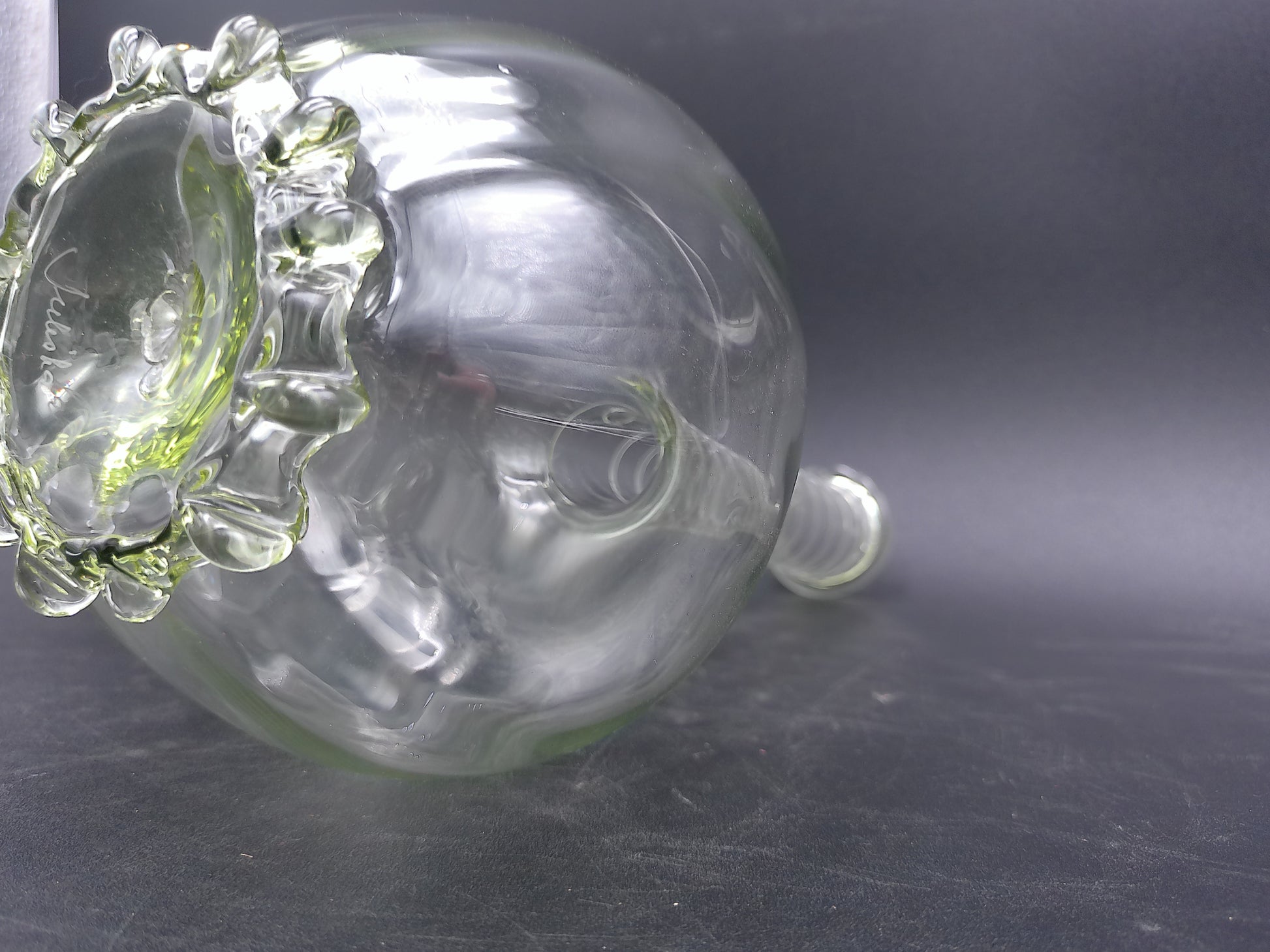 Introducing the JULISKA Hand Blown Twisted Modern Clear Glass Sculpture - the perfect accent piece for any space. Expertly hand-blown, this stunning vase boasts a unique twisted design that adds a touch of modern elegance to any room. Made from clear glass, it reflects light beautifully and is sure to be a conversation starter.