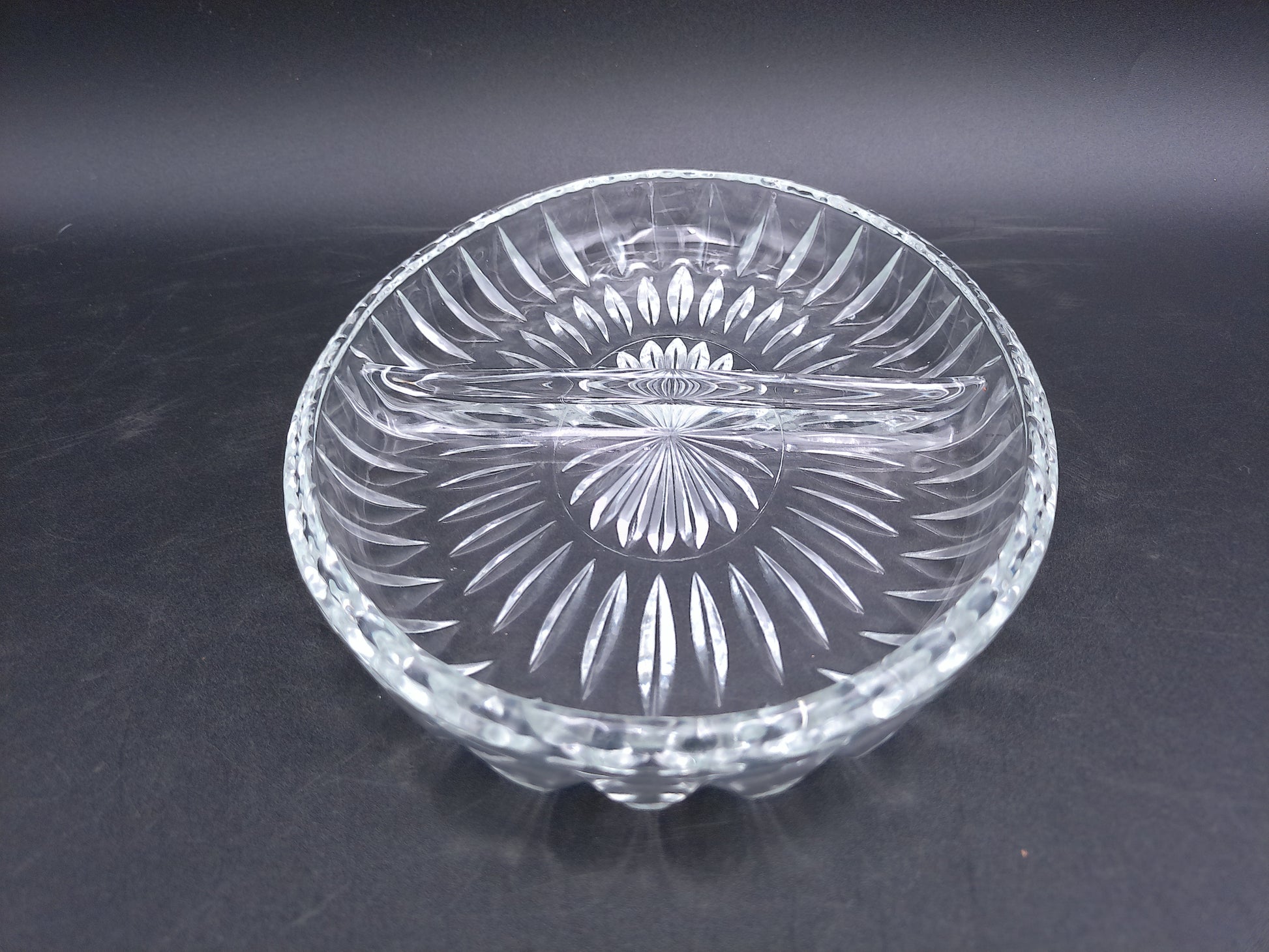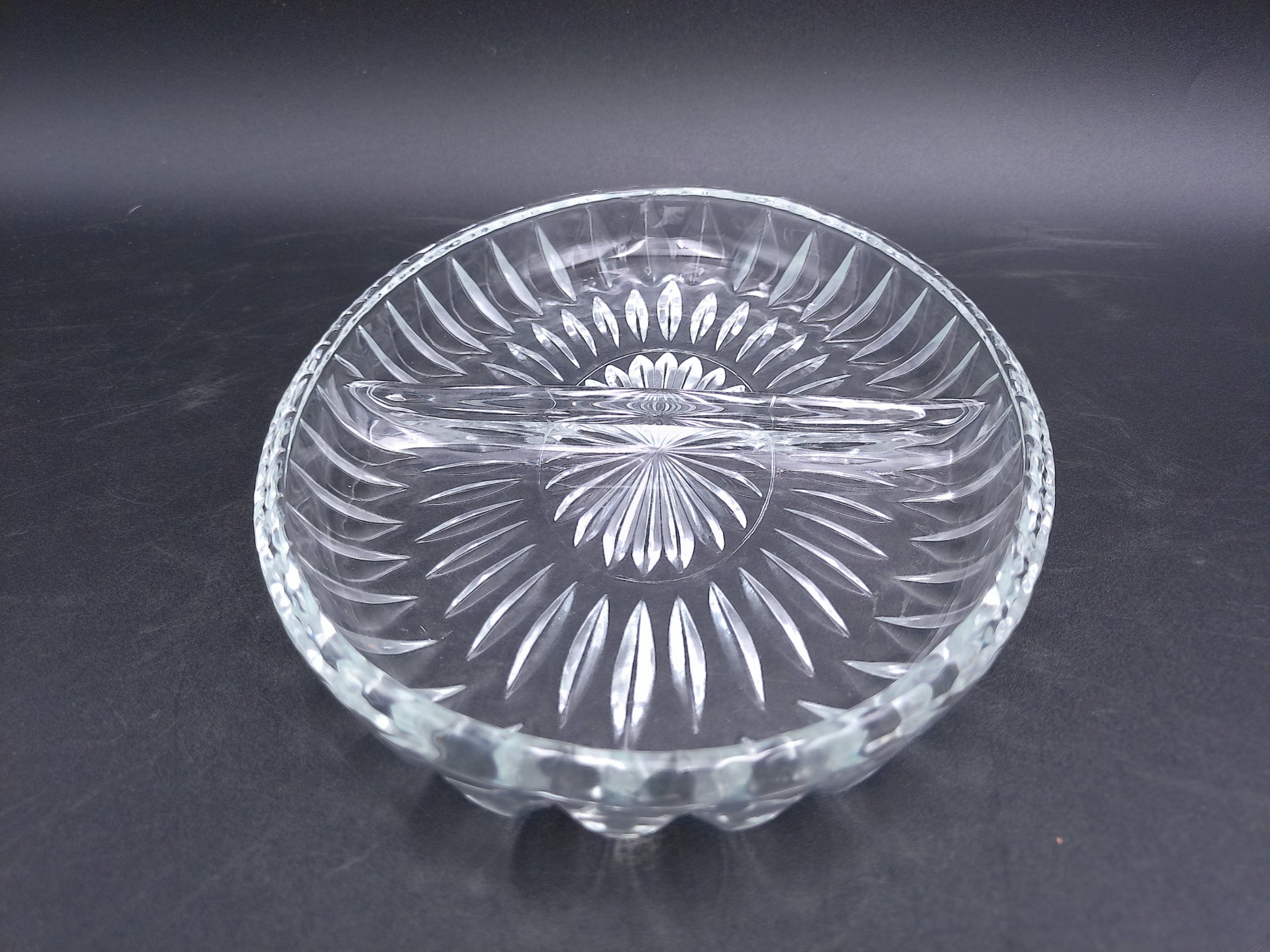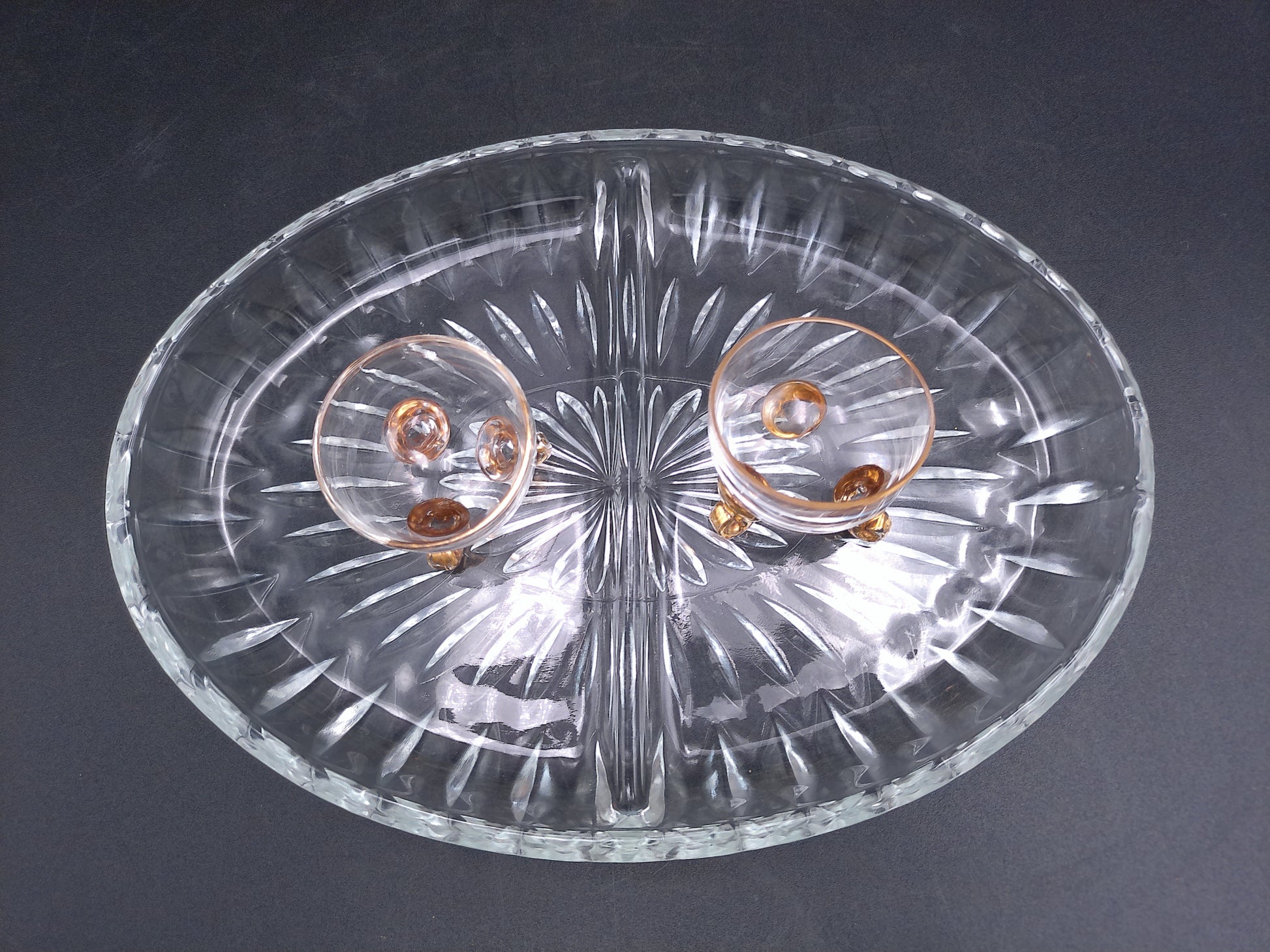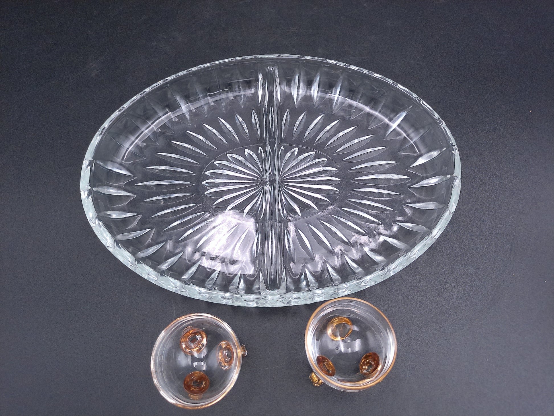 Gold Plated small set of 2 bowls and Divided Glass Serving Tray Dish Bowl Circle