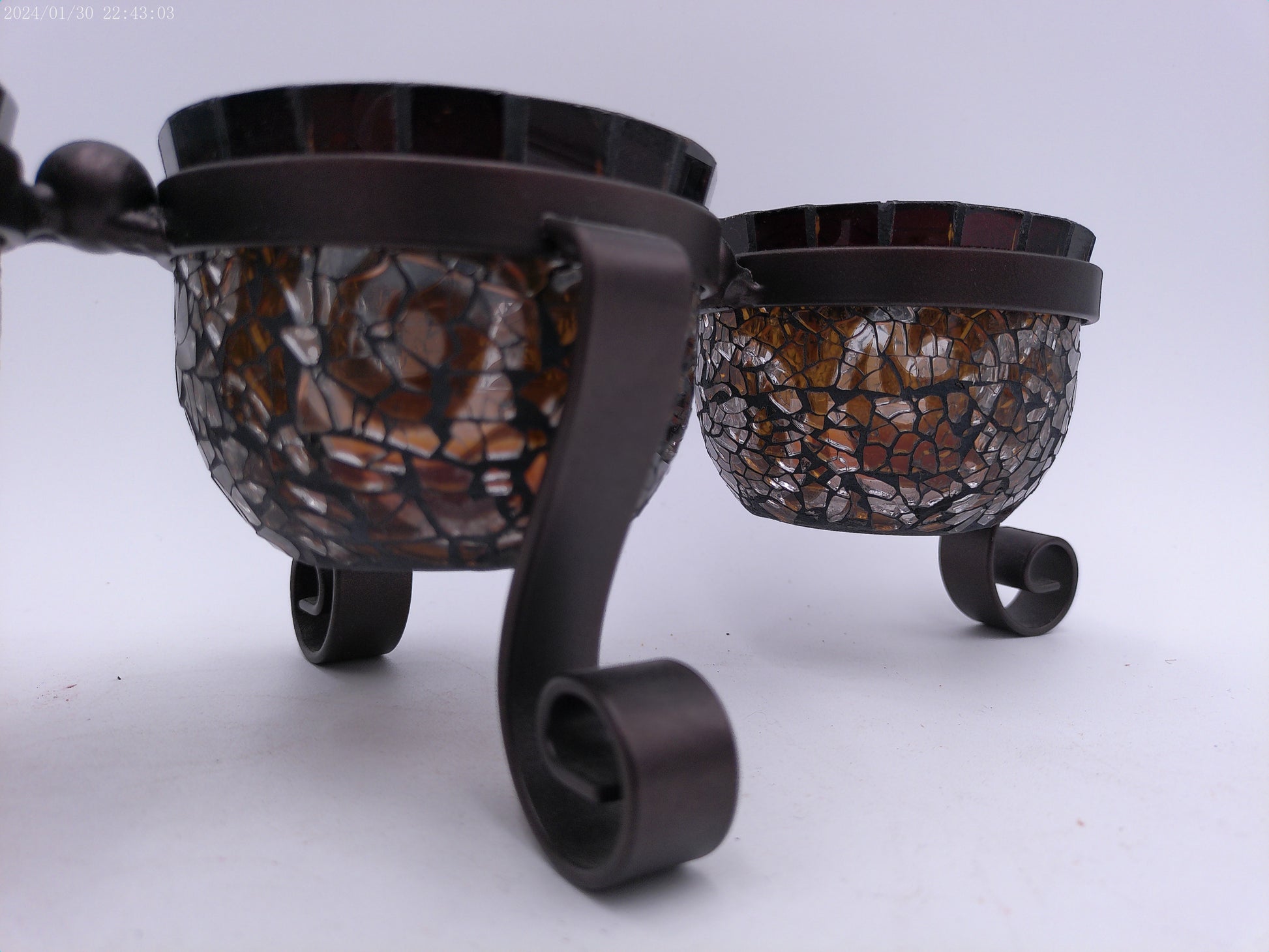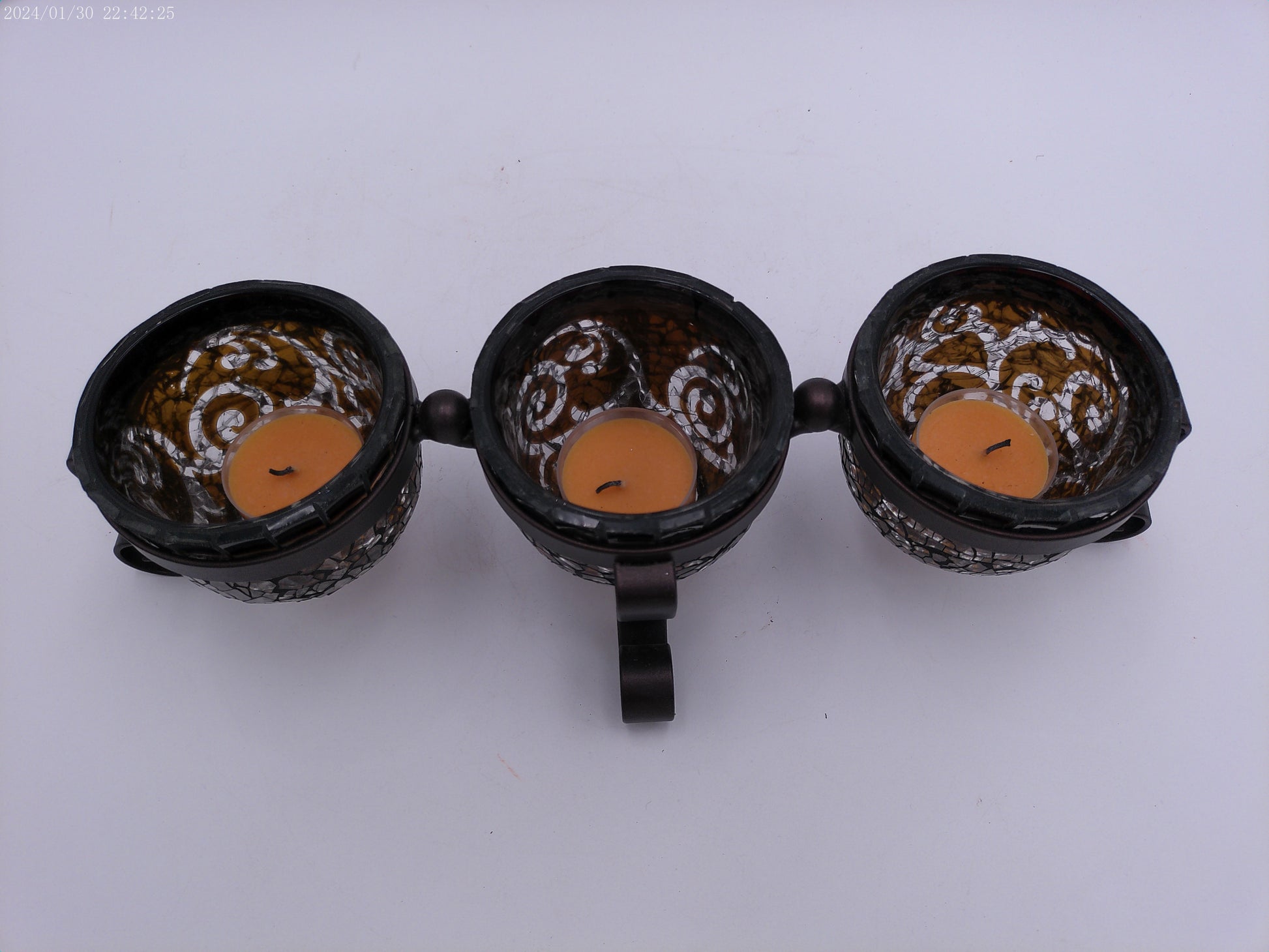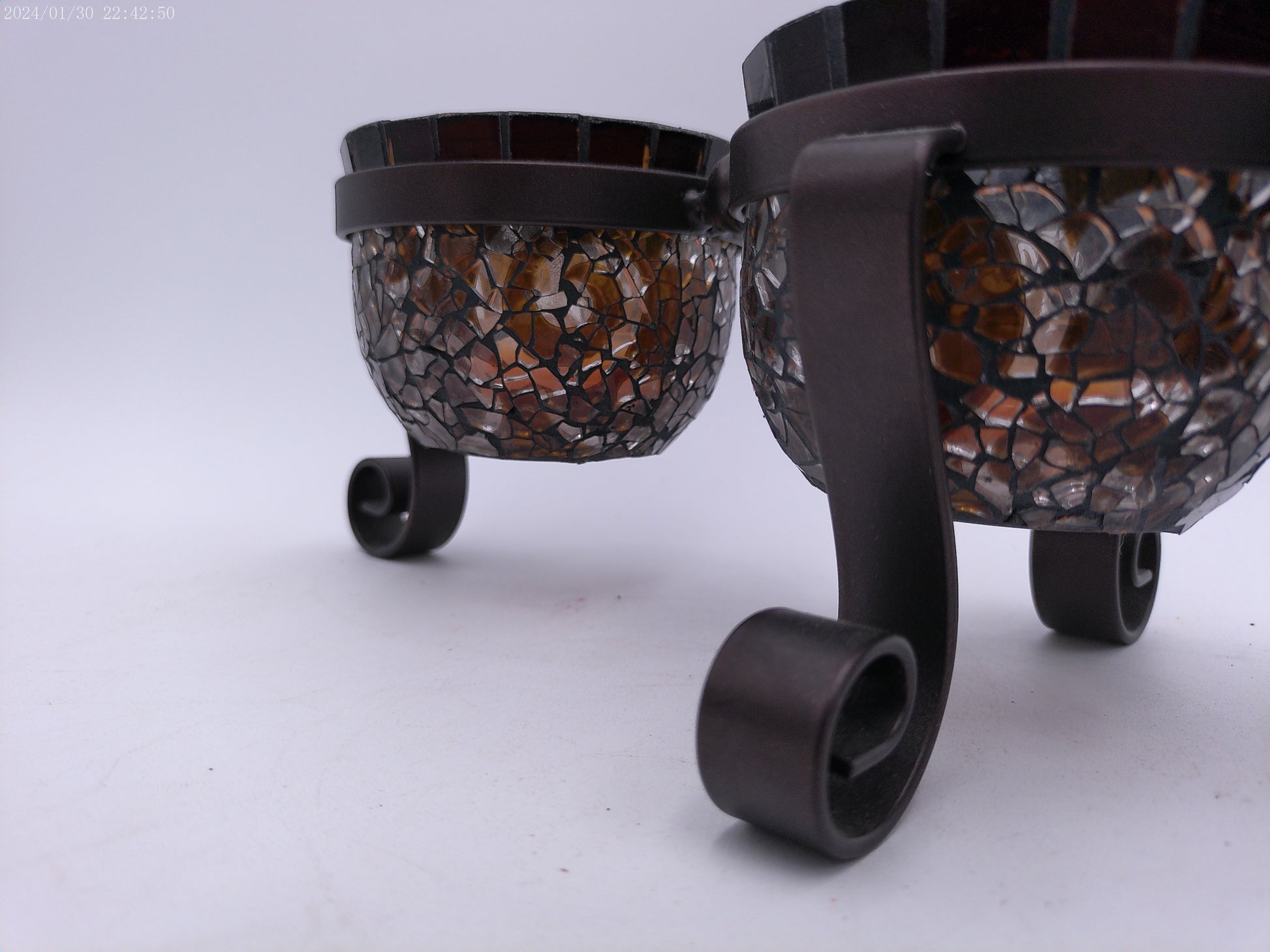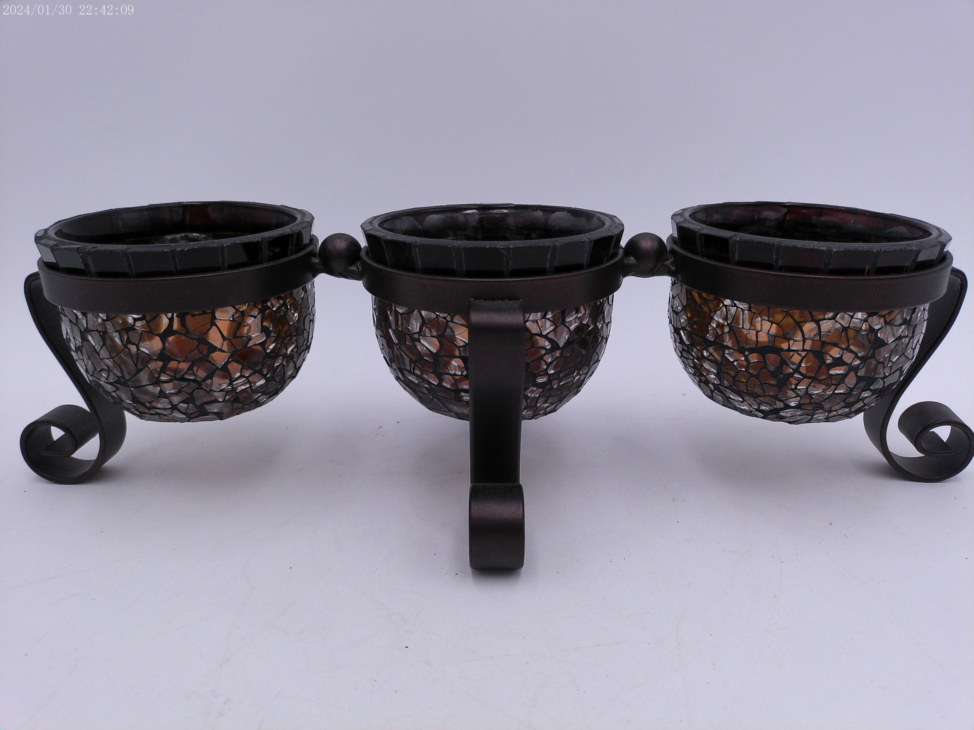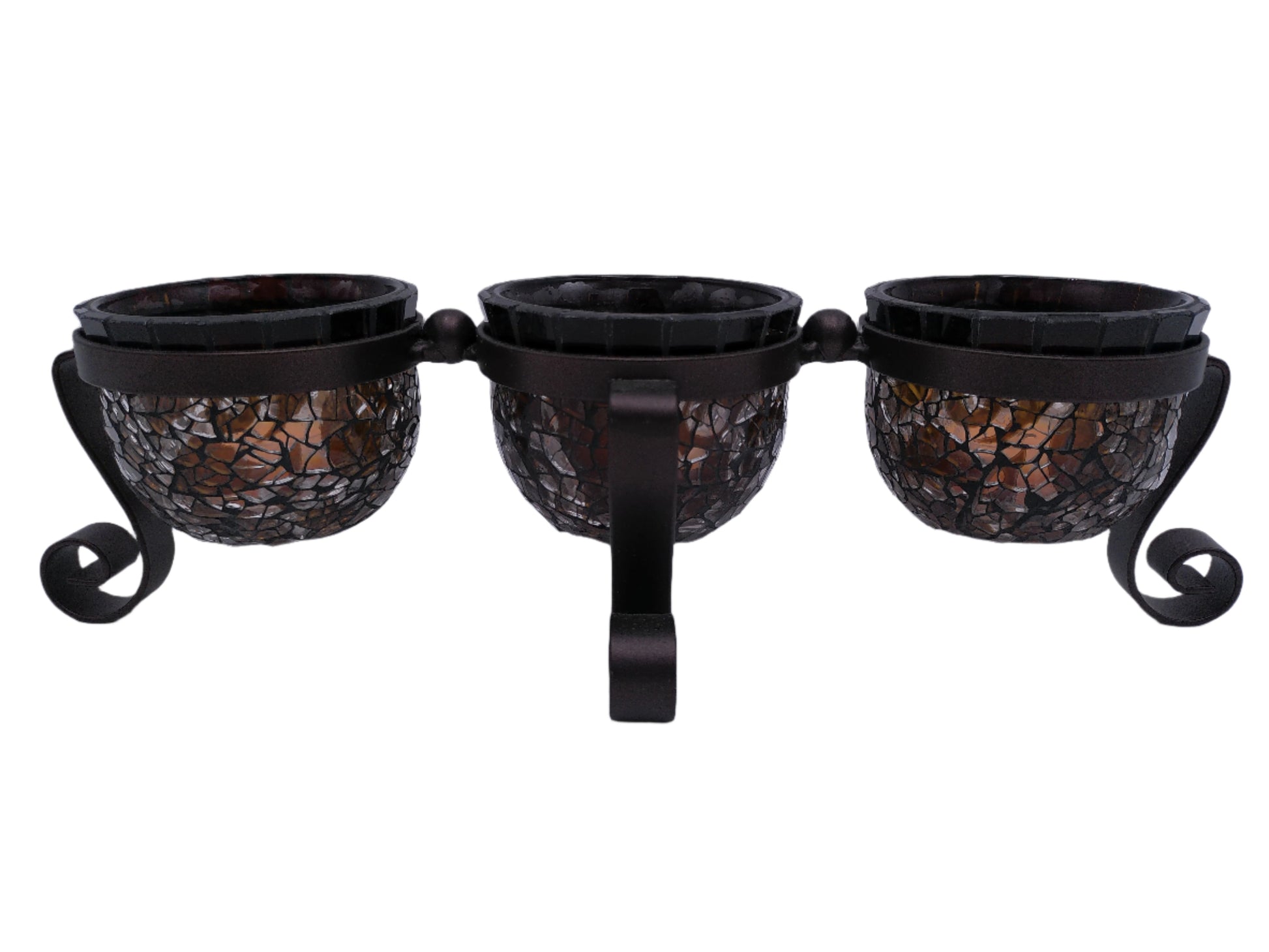 Party Lite* Amaretto Swirl * 3 Light Mosaic Tealight Holder