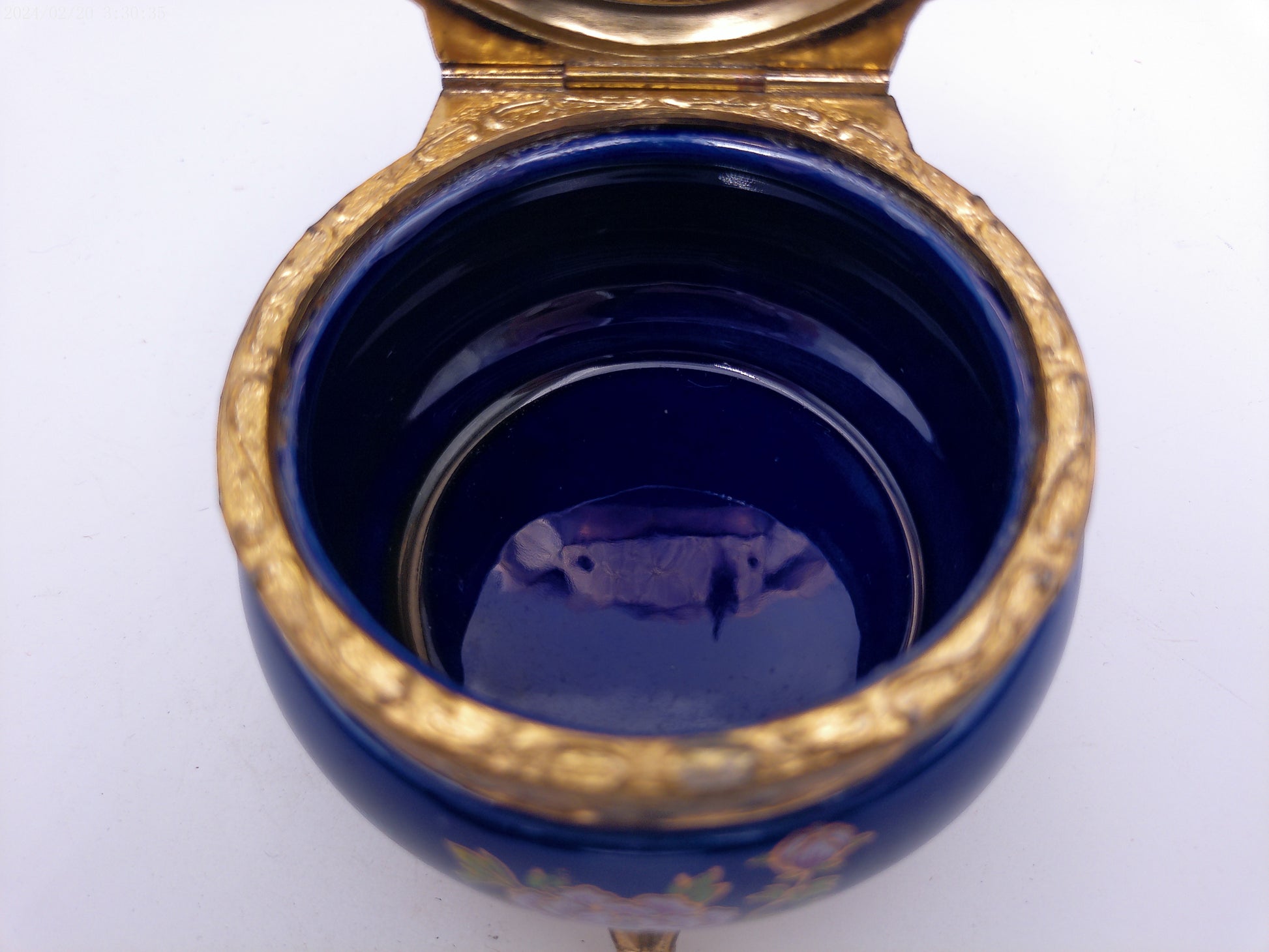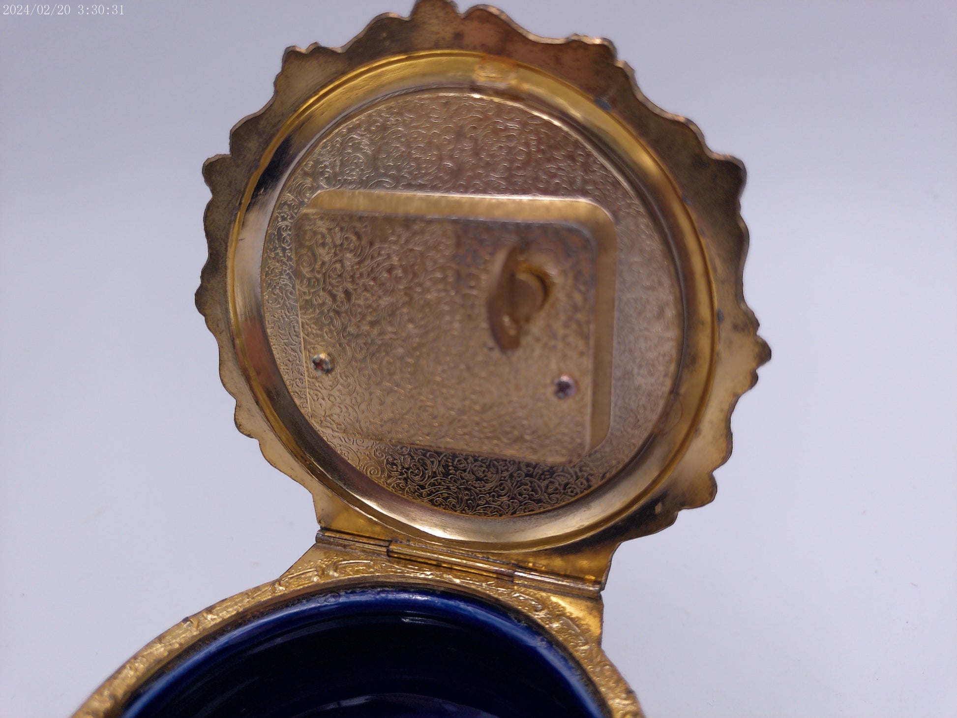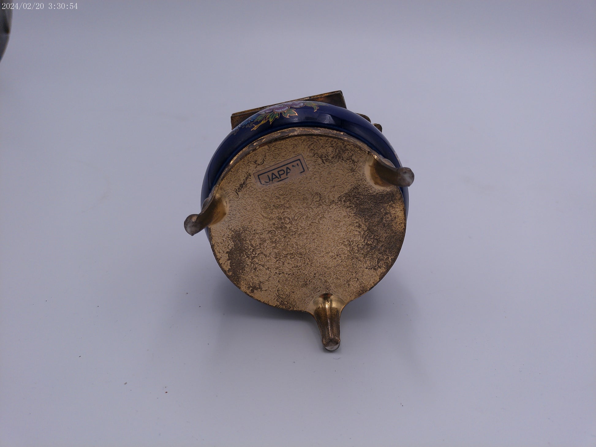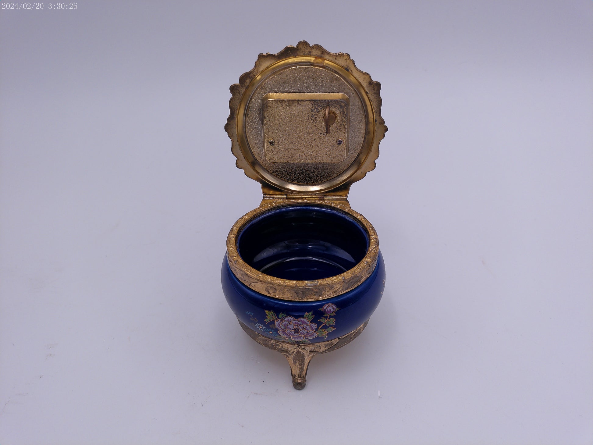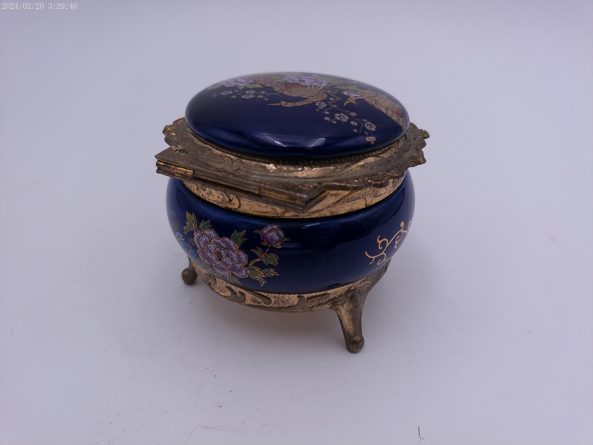 Peacock Music Box Trinket Royal Blue Porcelain & Gold Metal Stunning