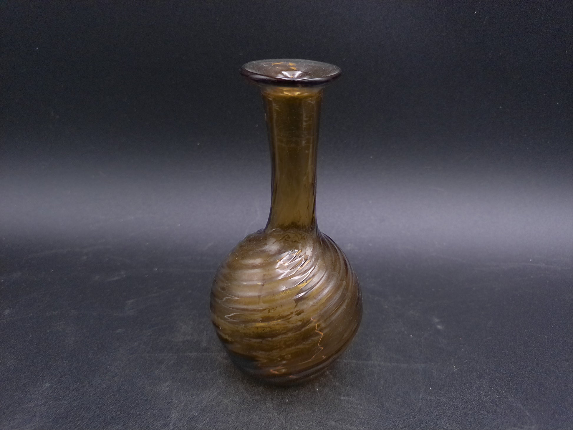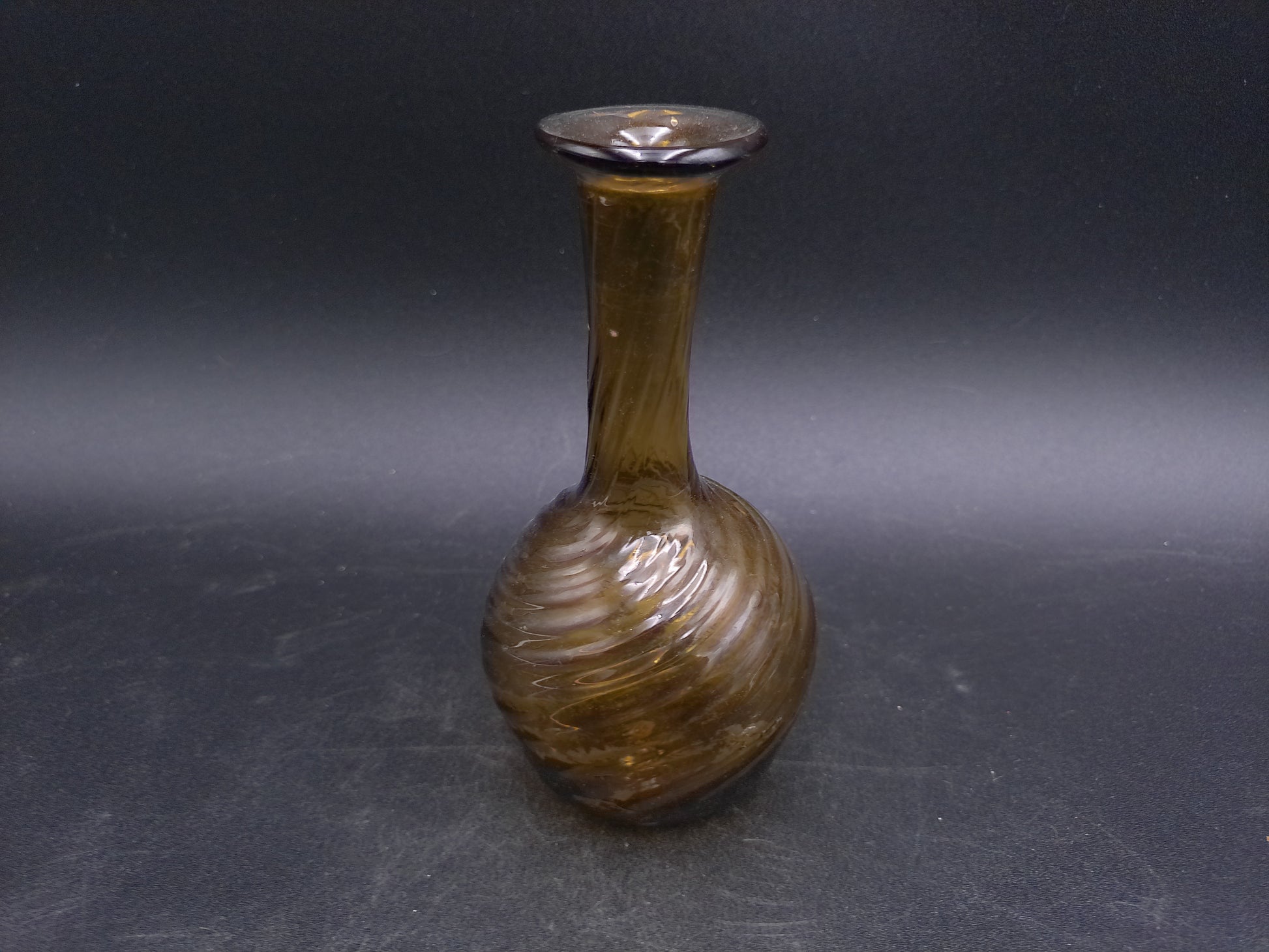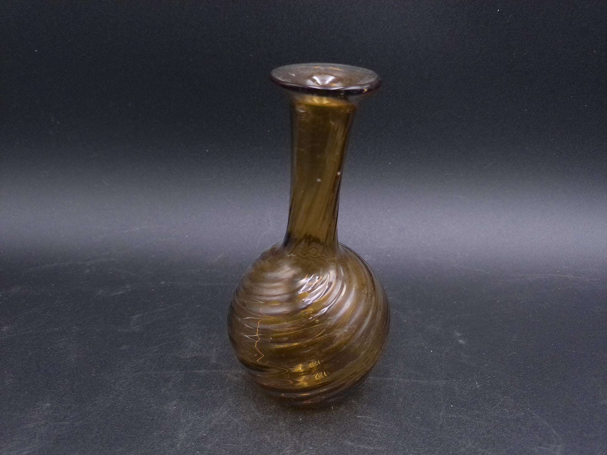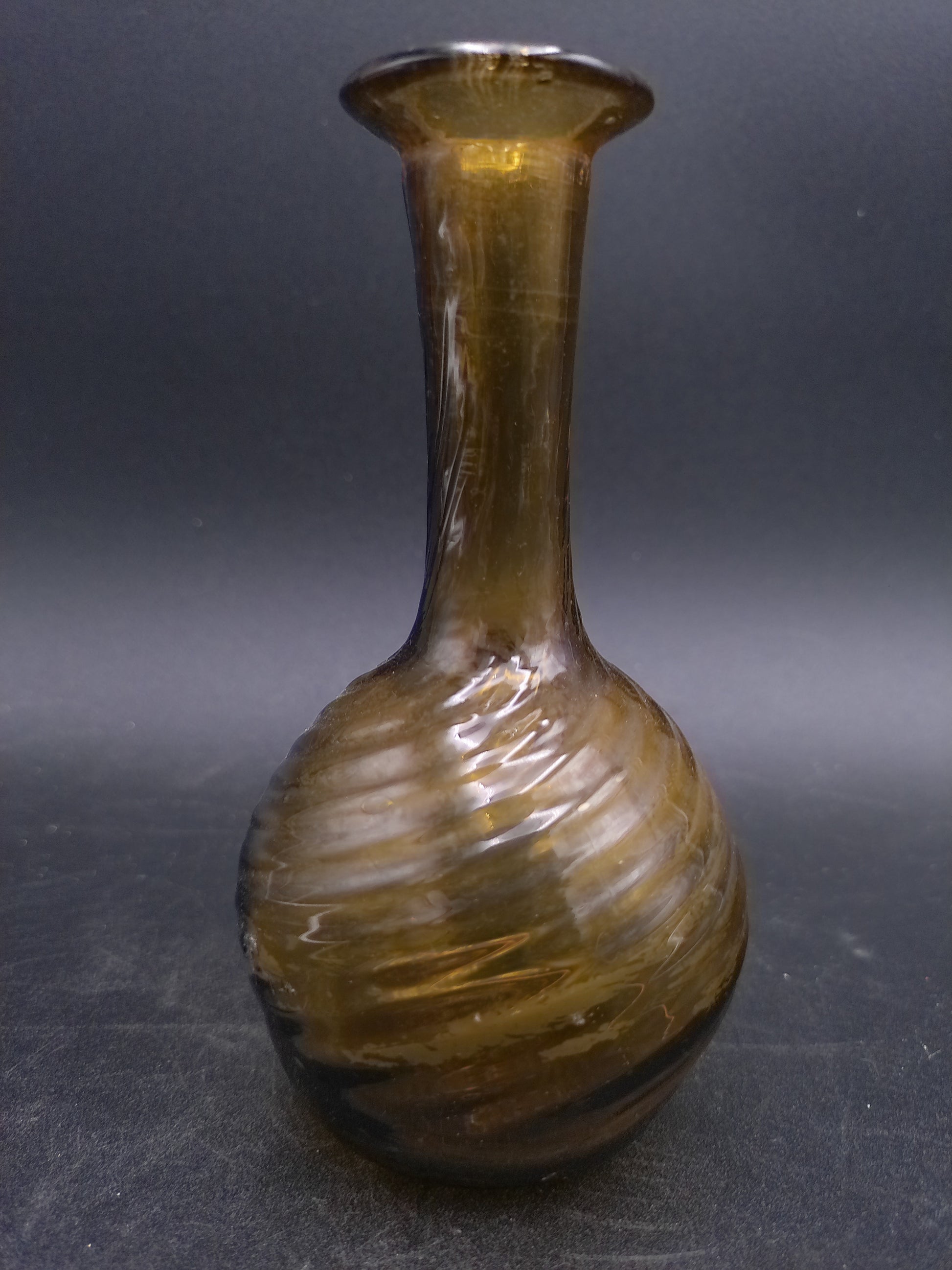Hand Blown Swirl Honey Amber Glass Bottle Vase Vintage