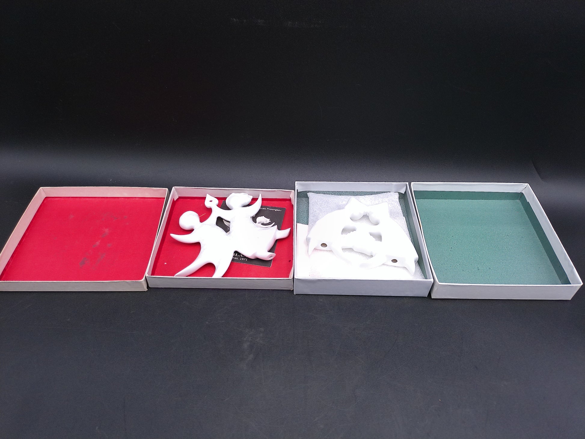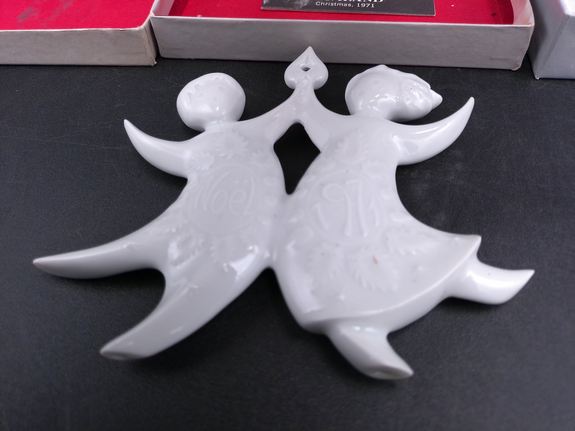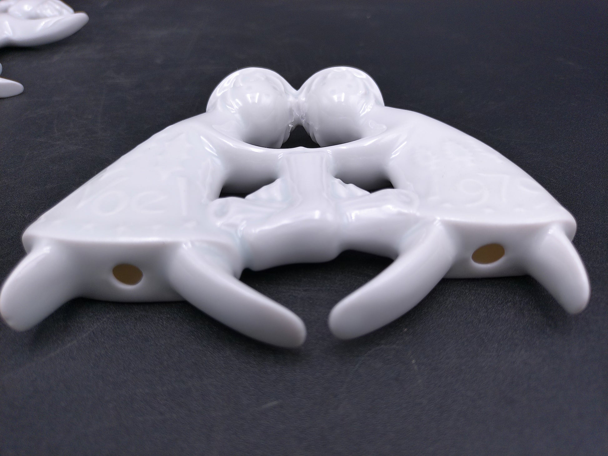 Add a touch of luxury to your holiday decor with these Haviland Limoges porcelain ornaments. Designed and crafted in France in 1979, the delicate Yule Log and Children design will add an elegant and timeless touch to your festive celebrations. These collectible ornaments come in a beautiful box, making them the perfect gift for any art and design enthusiast.
