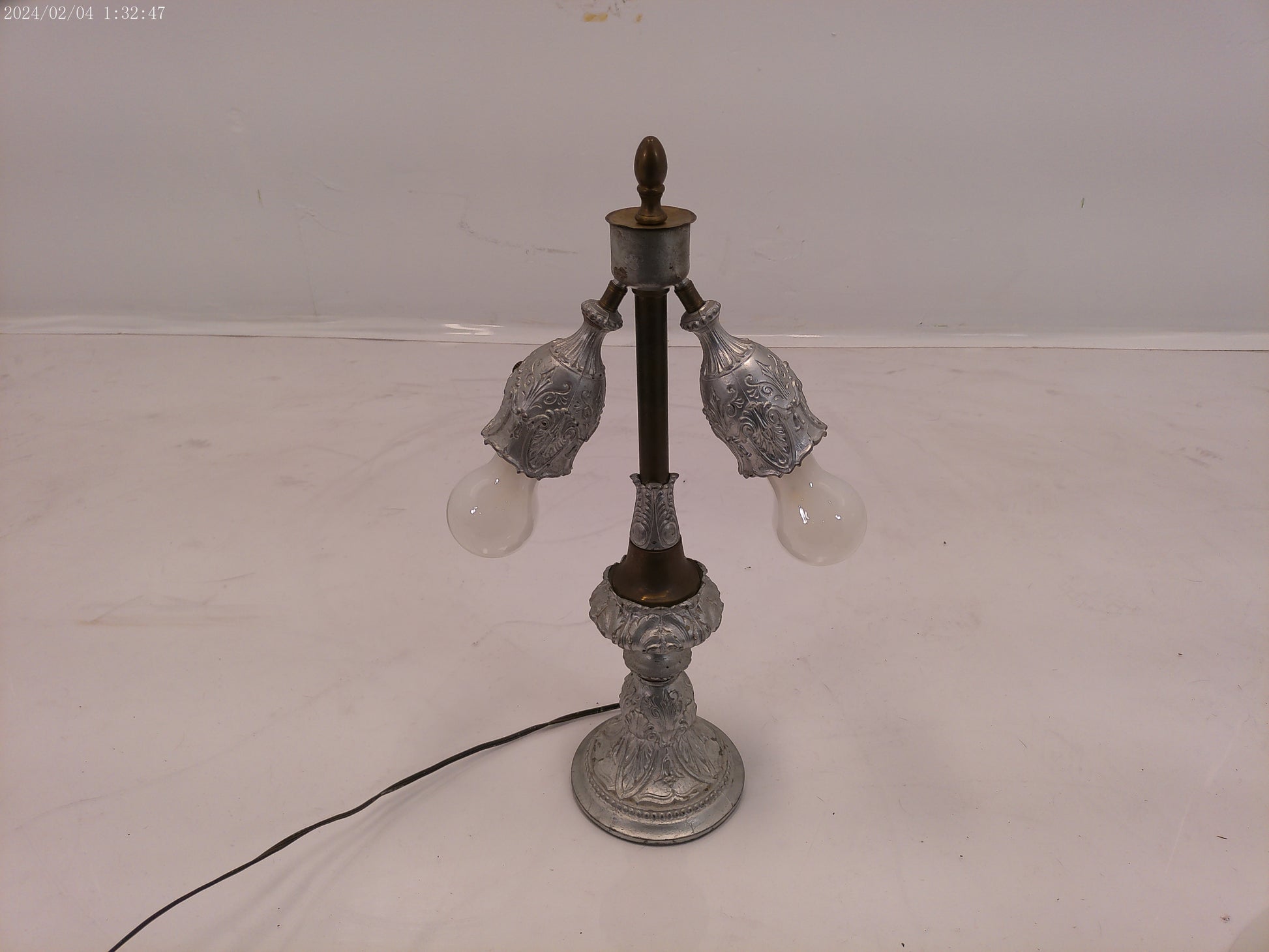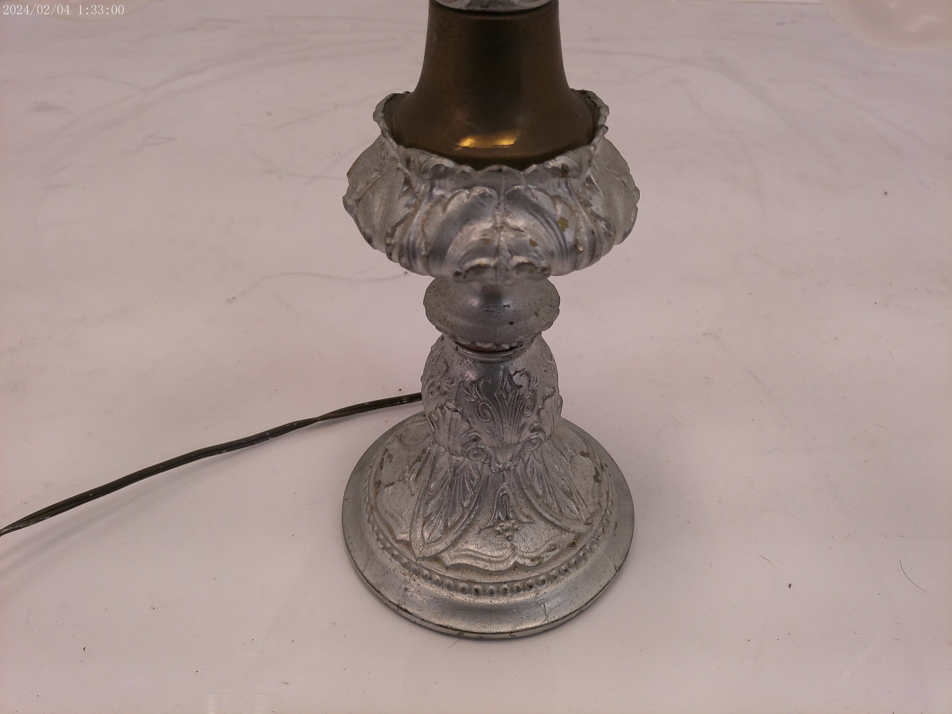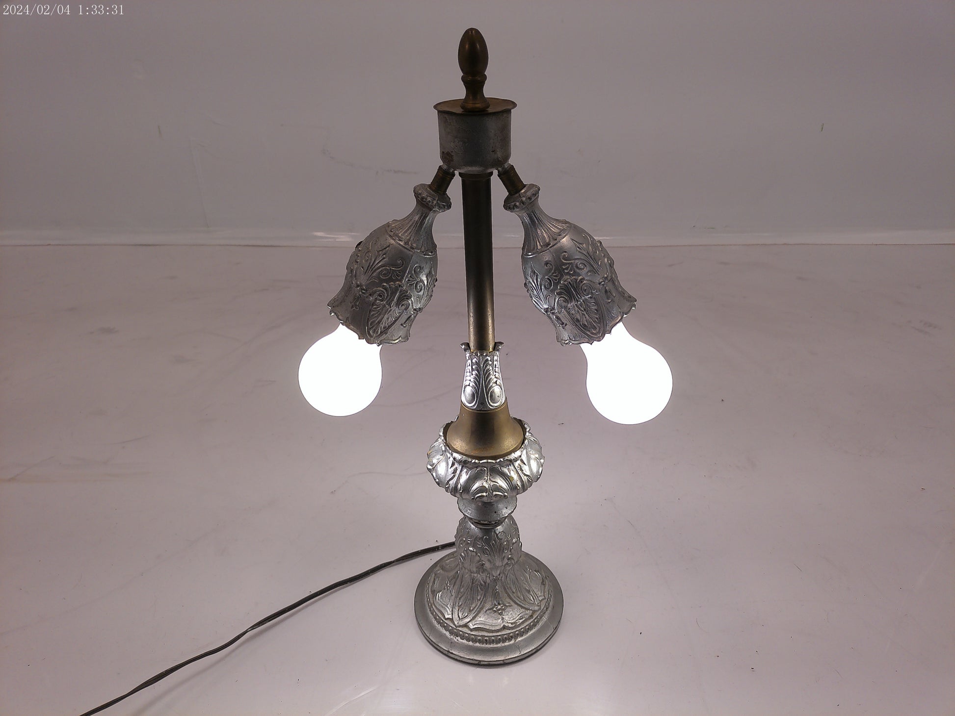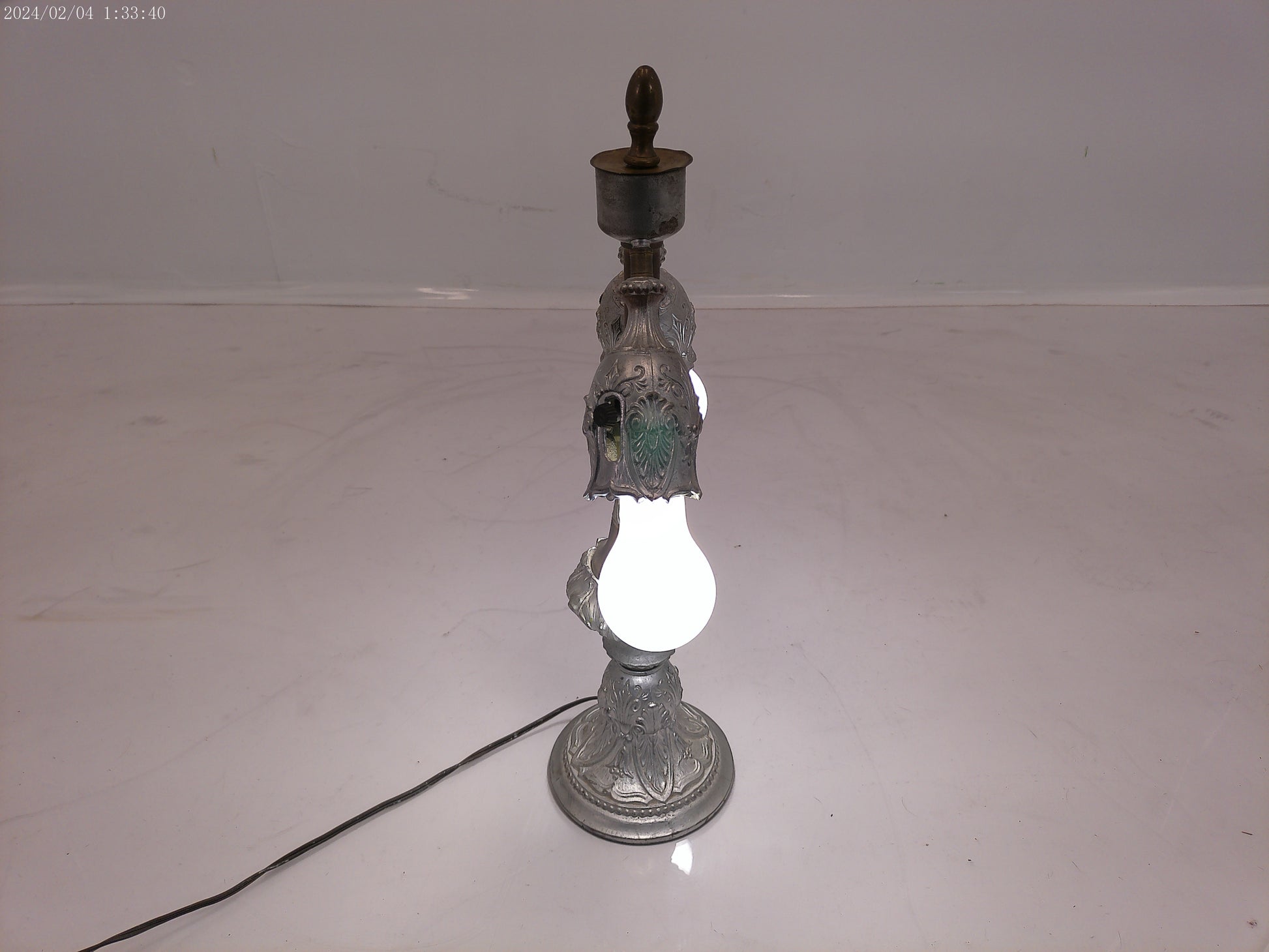 Pewter Colored Patina, Unusual Panels, Intricate Detail Lamp
