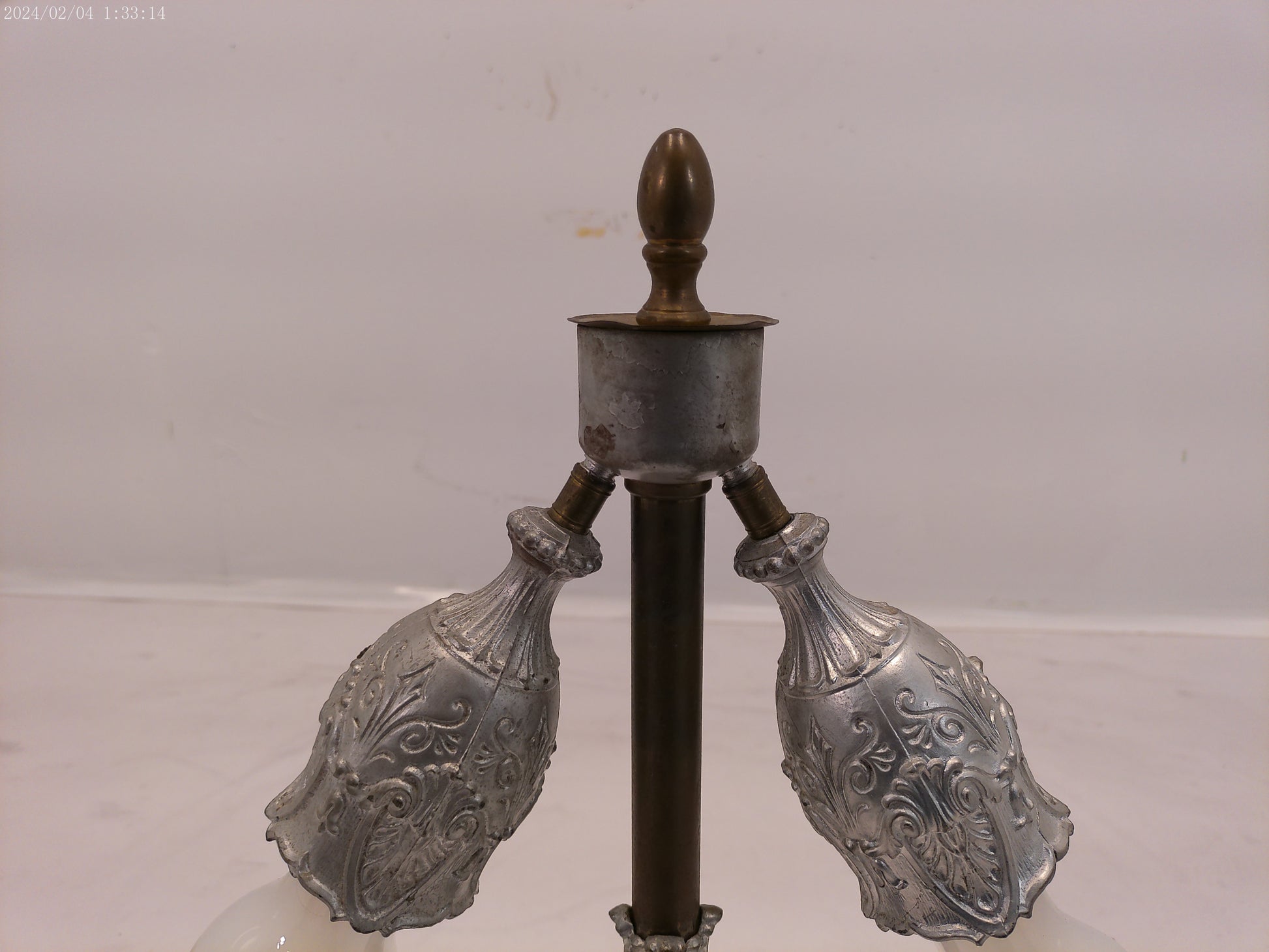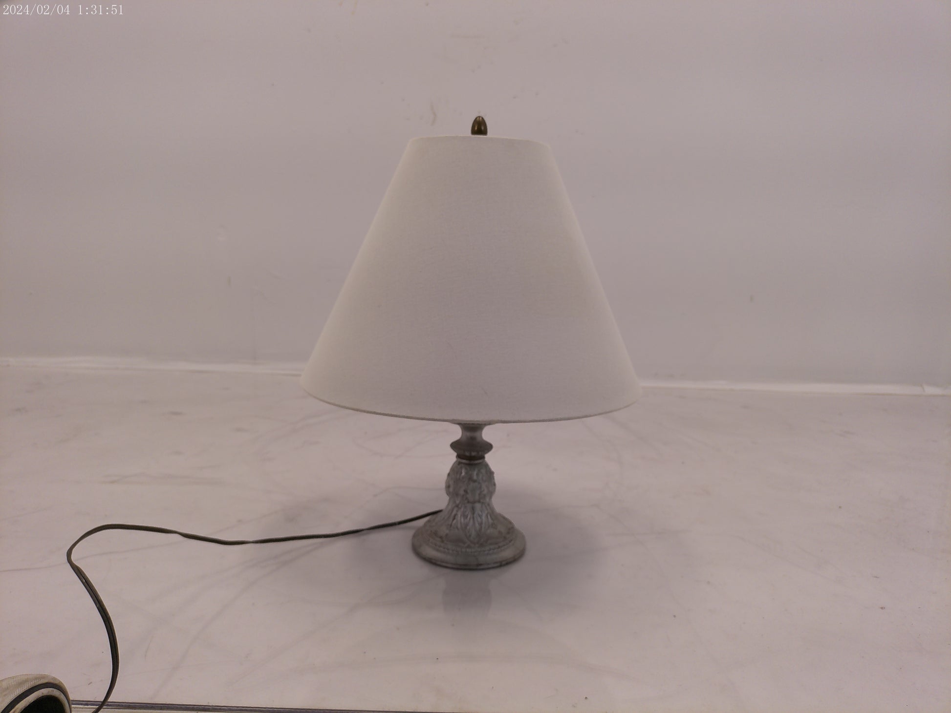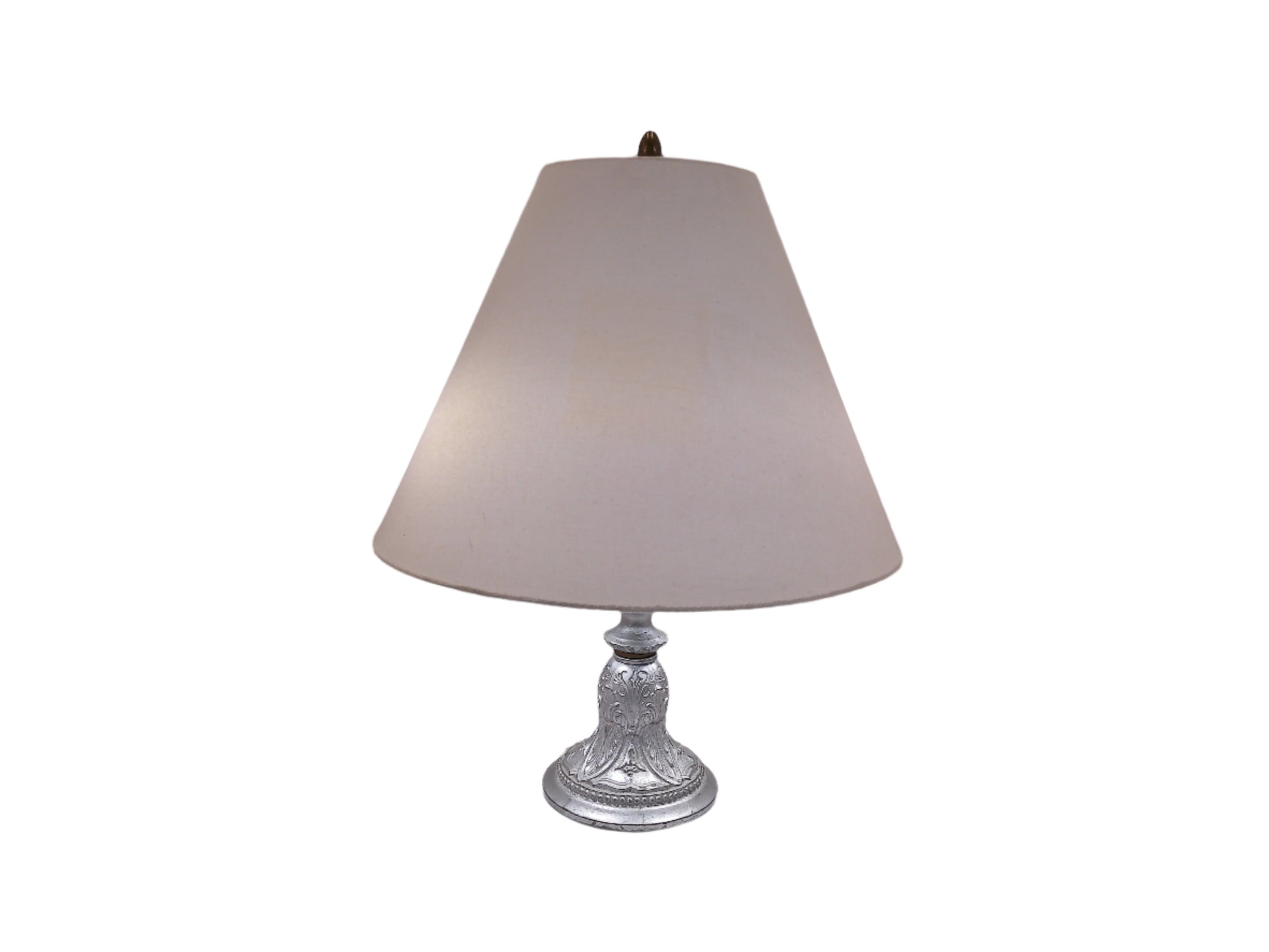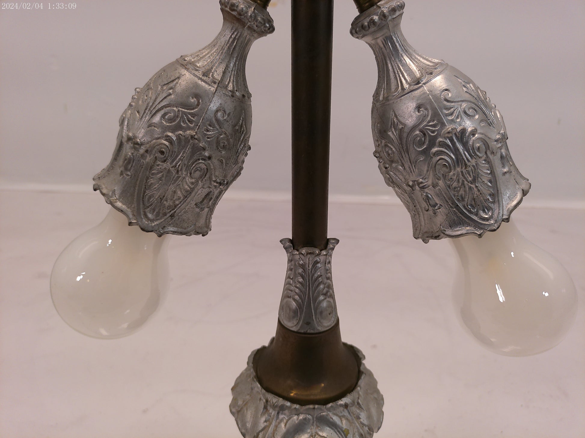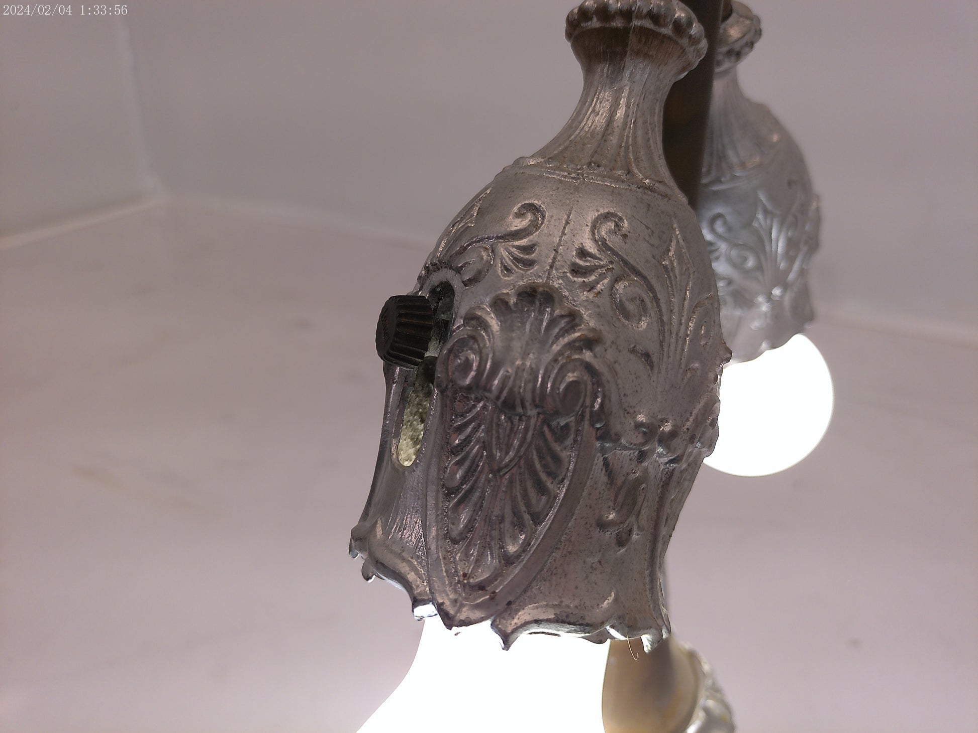 Pewter Colored Patina, Unusual Panels, Intricate Detail Lamp