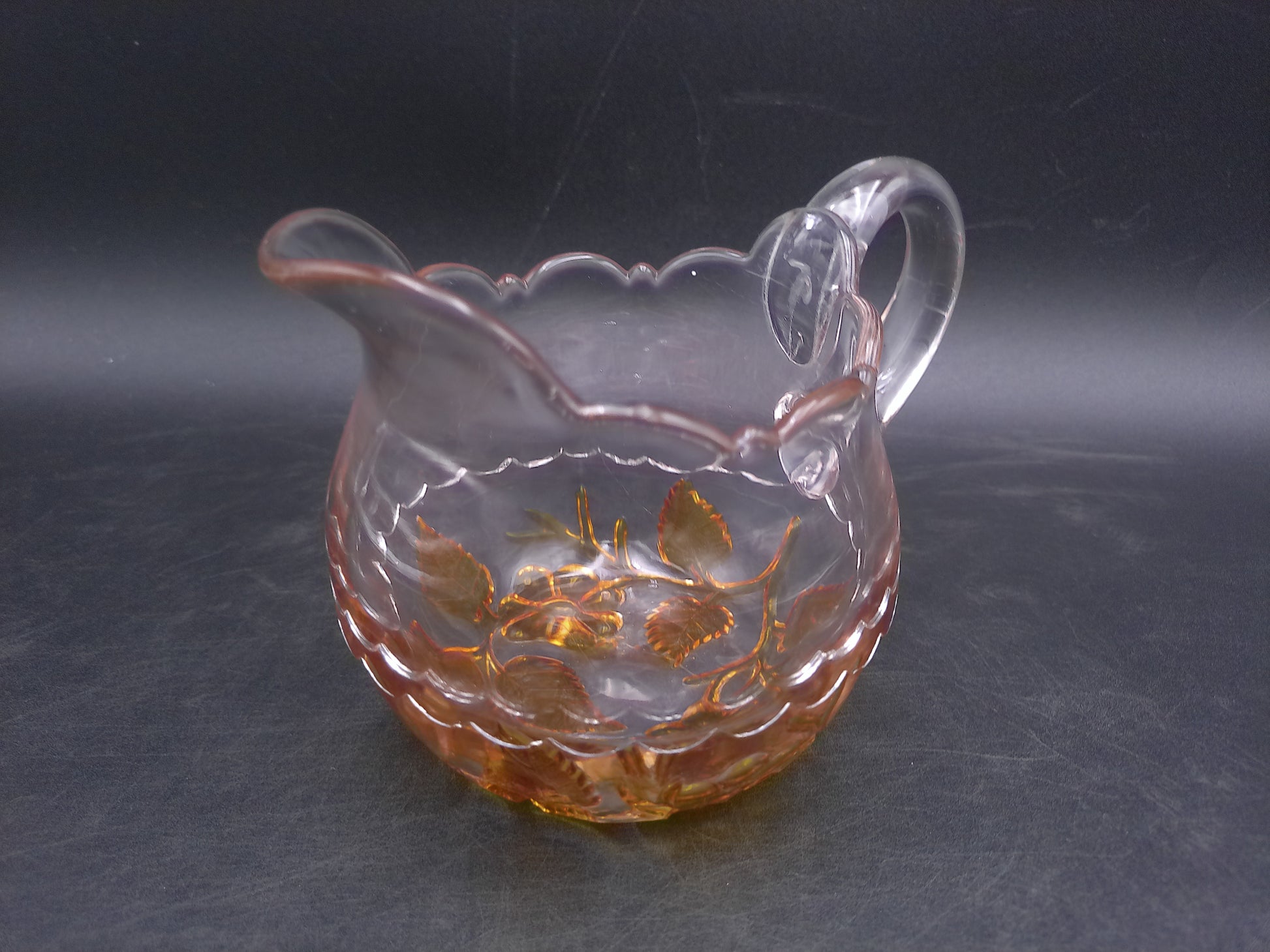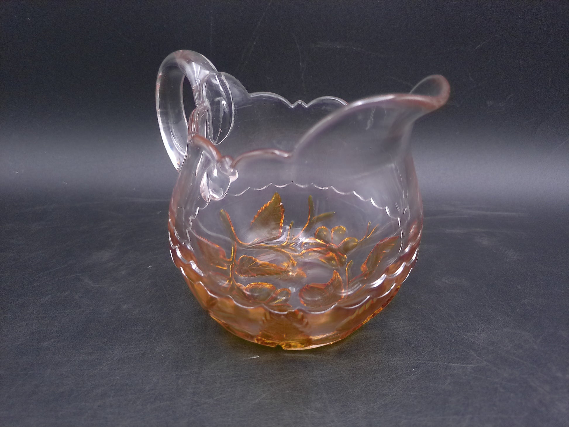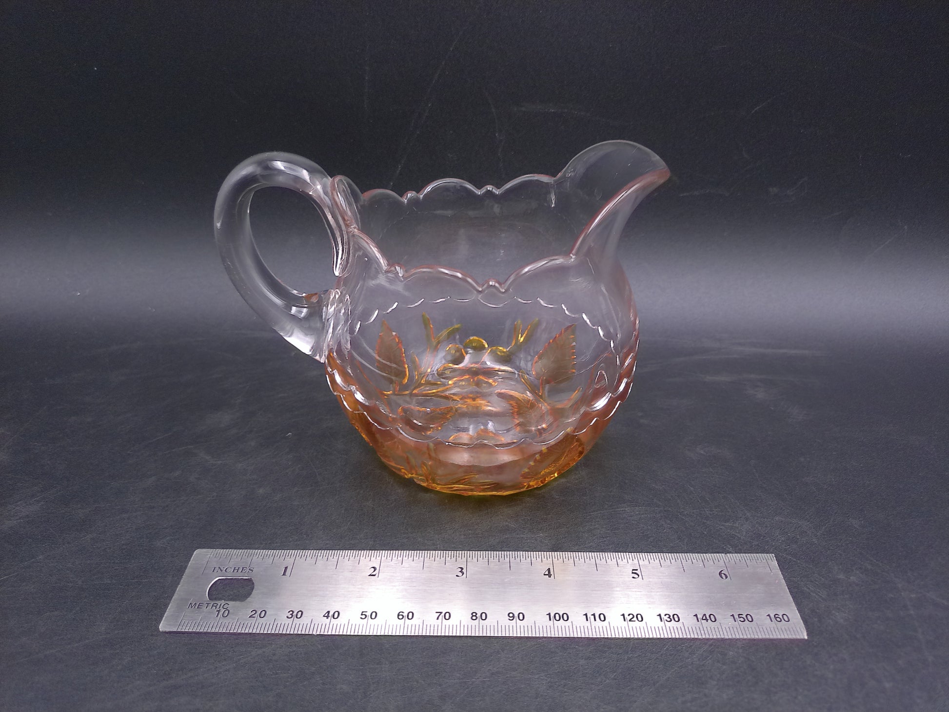 Orange Glass Ruffle Floral Glass Creamer Pitcher