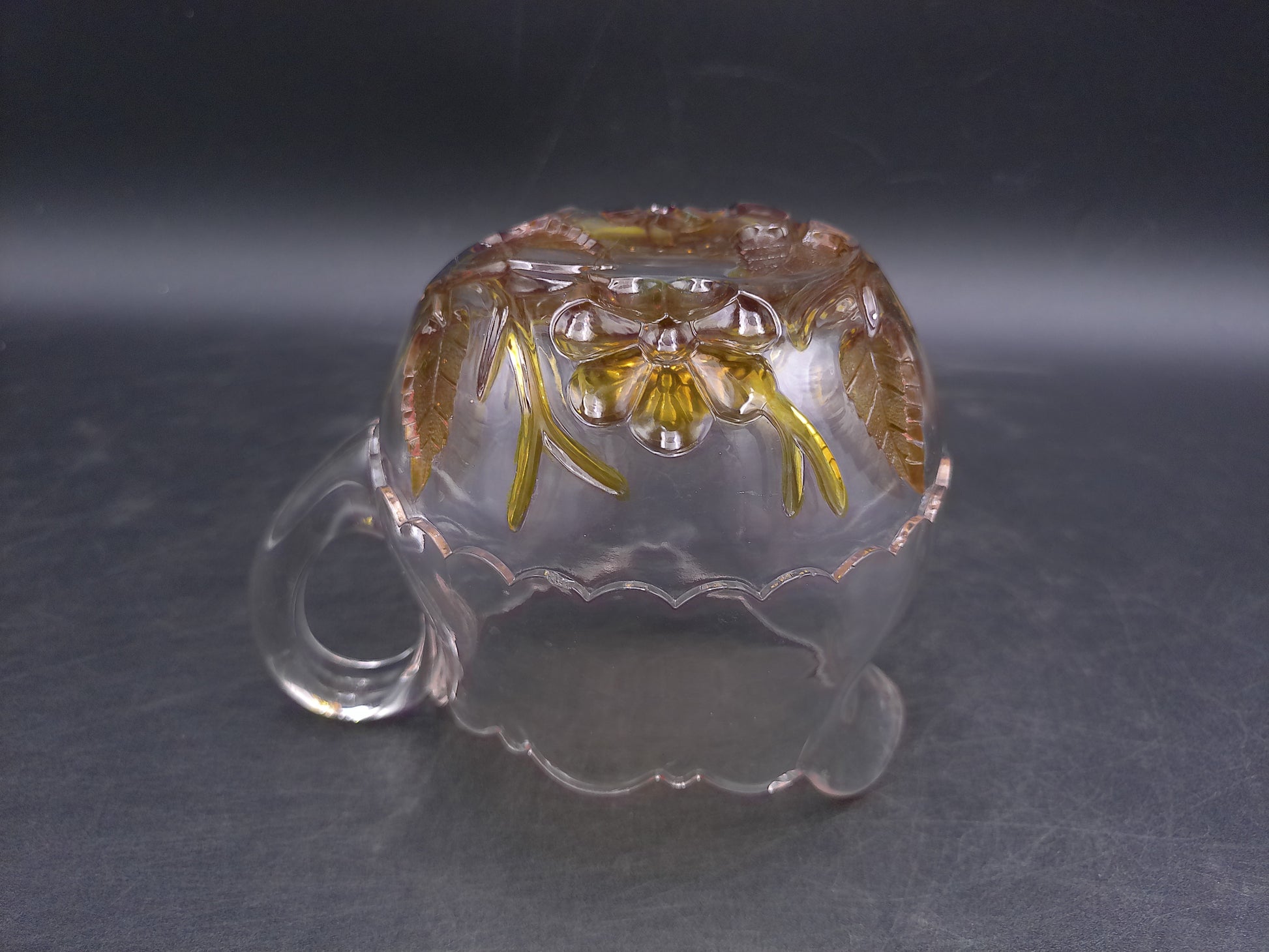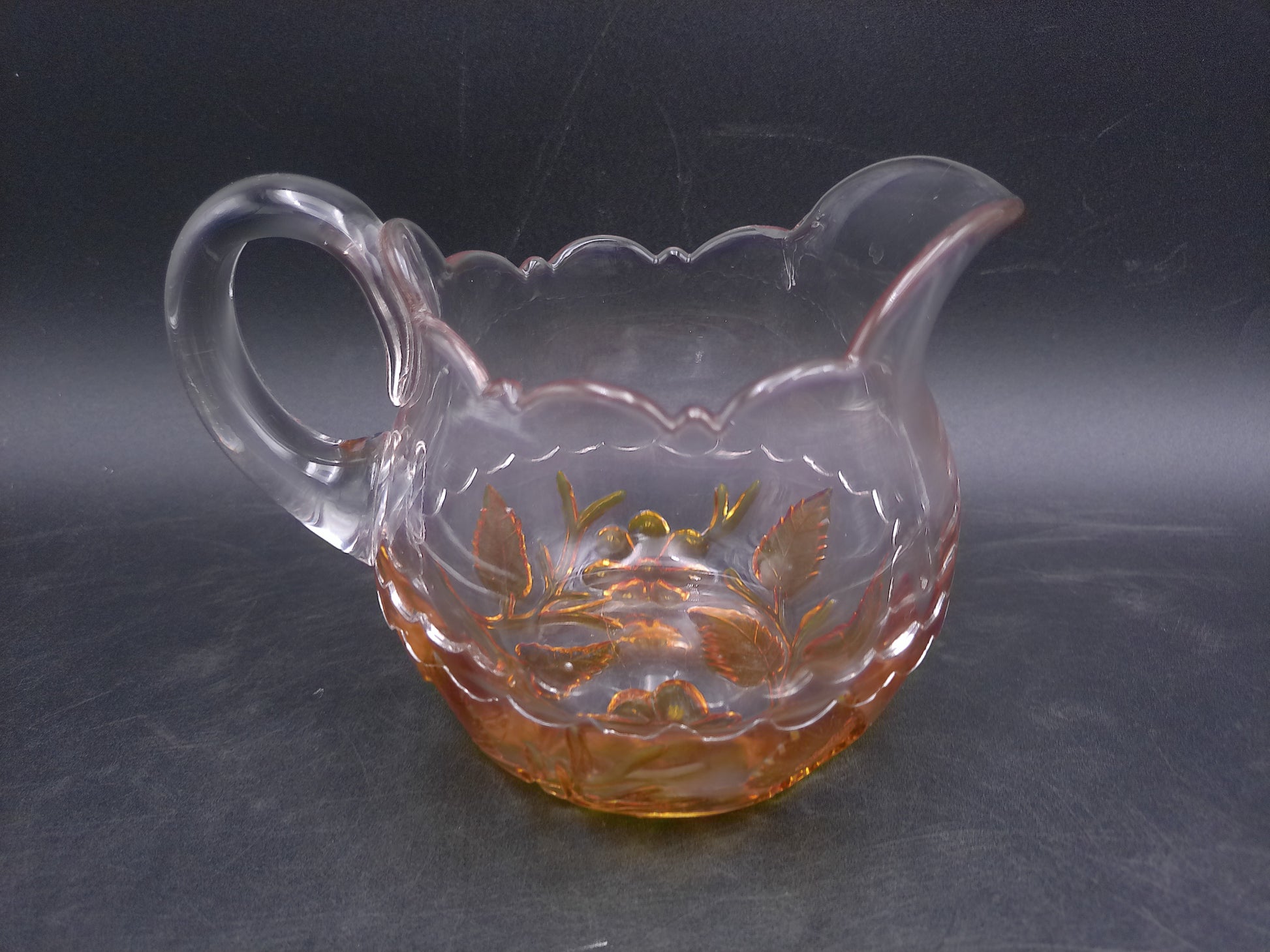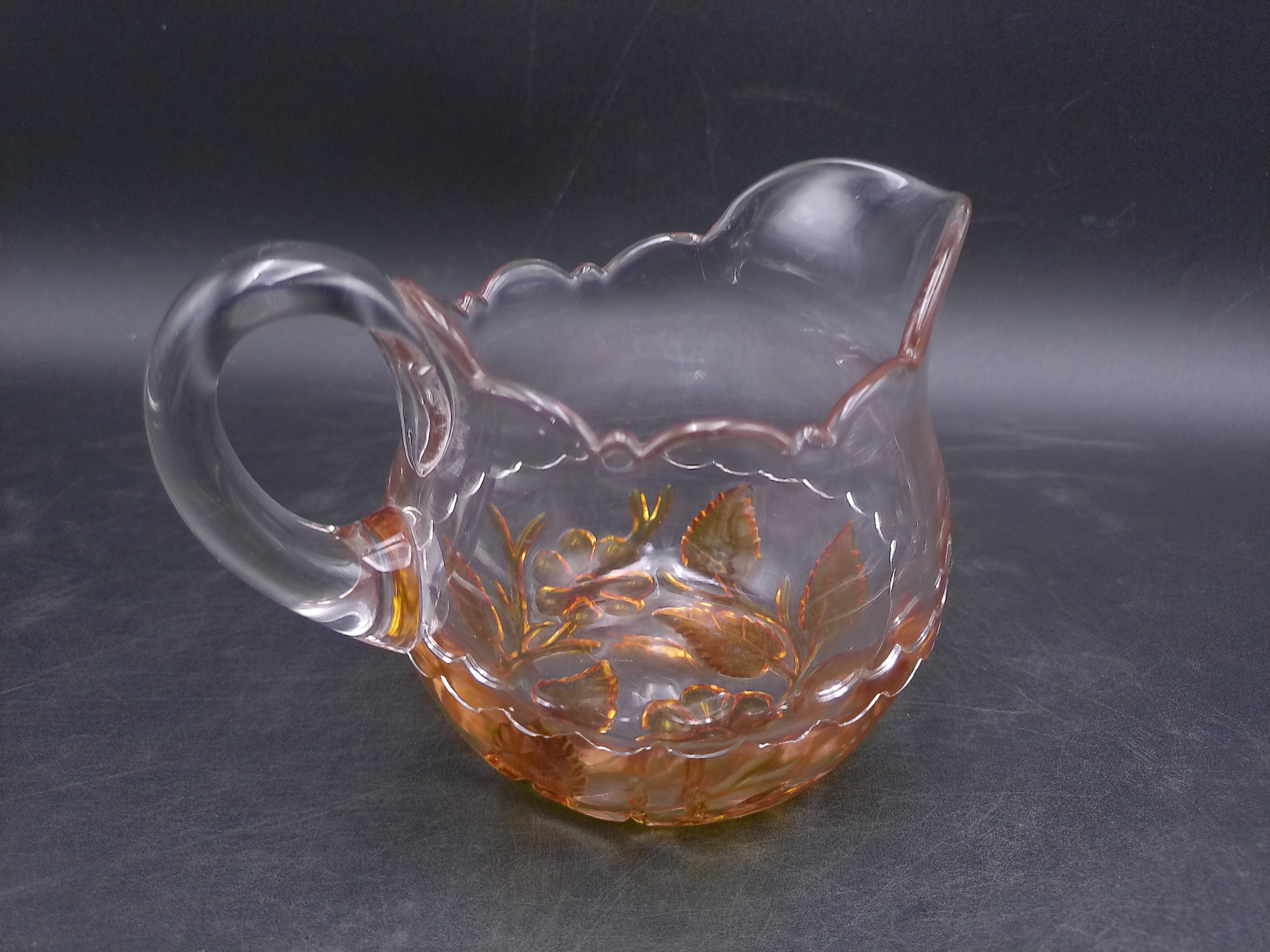 Orange Glass Ruffle Floral Glass Creamer Pitcher