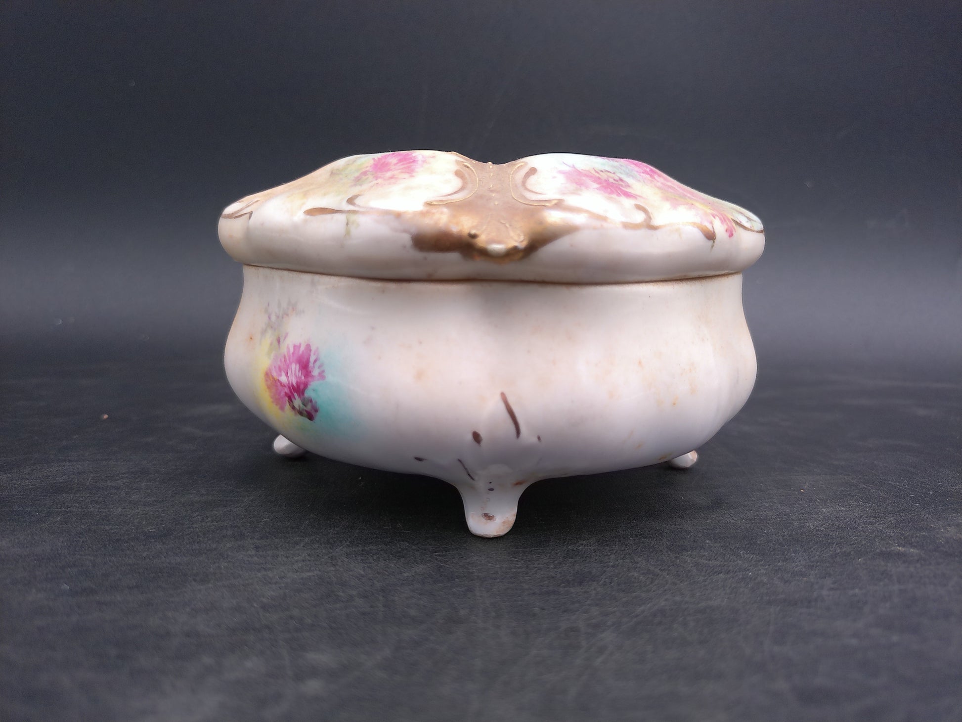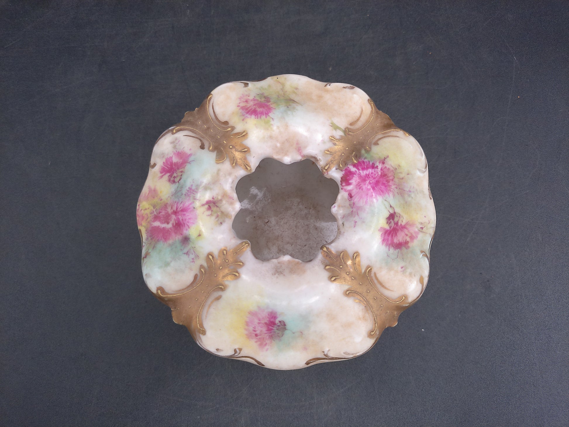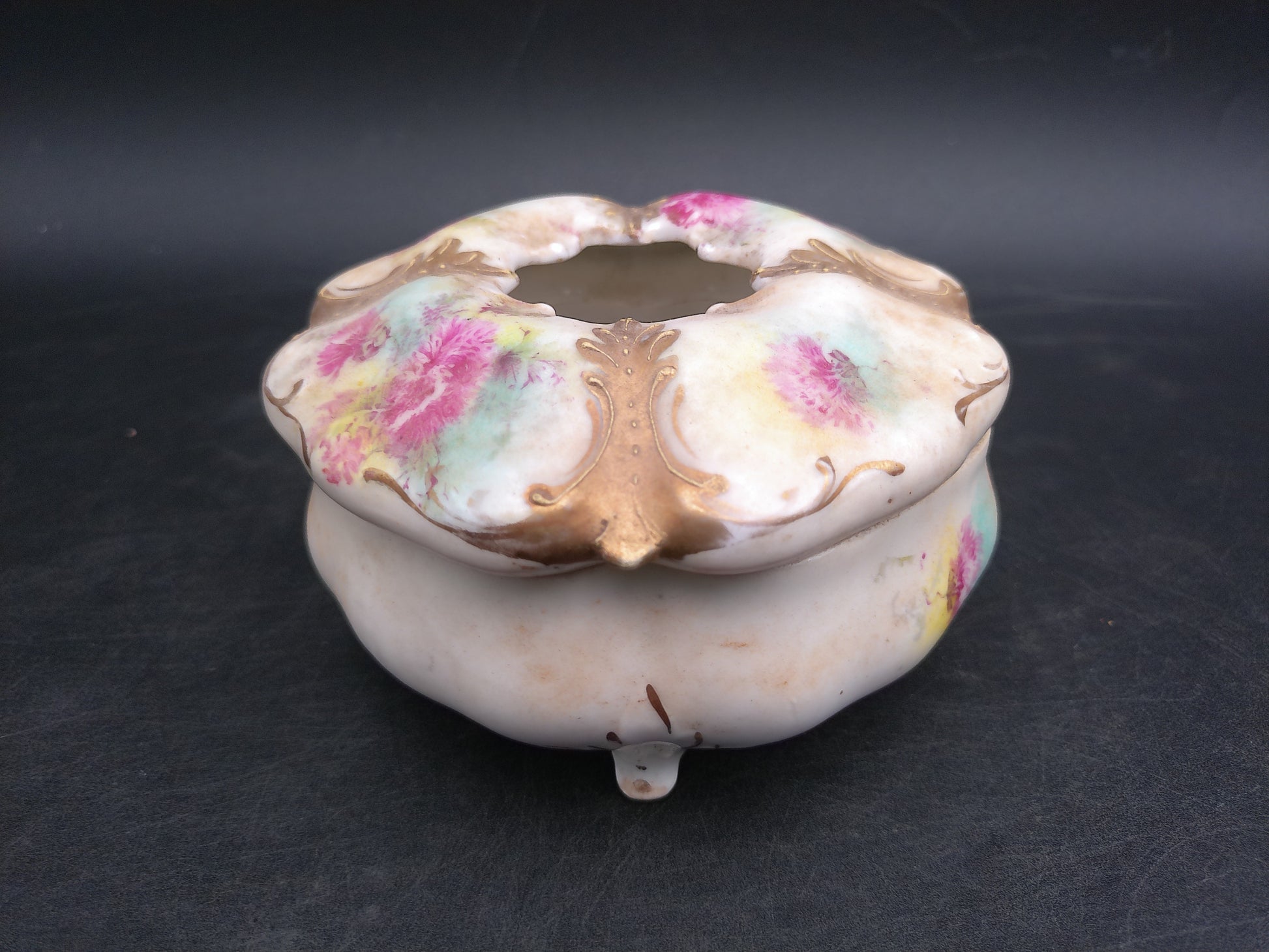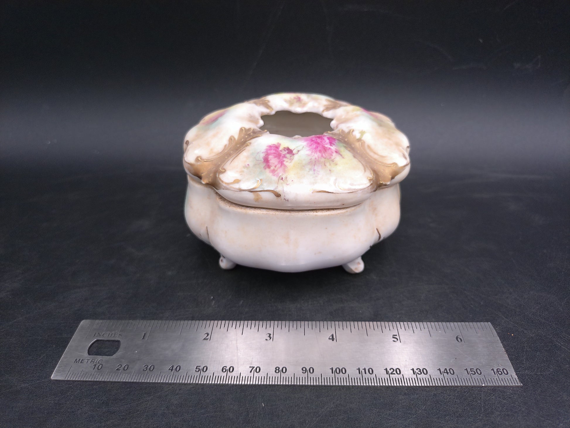 Gold Rim Floral Hair Receiver Porcelain Vintage