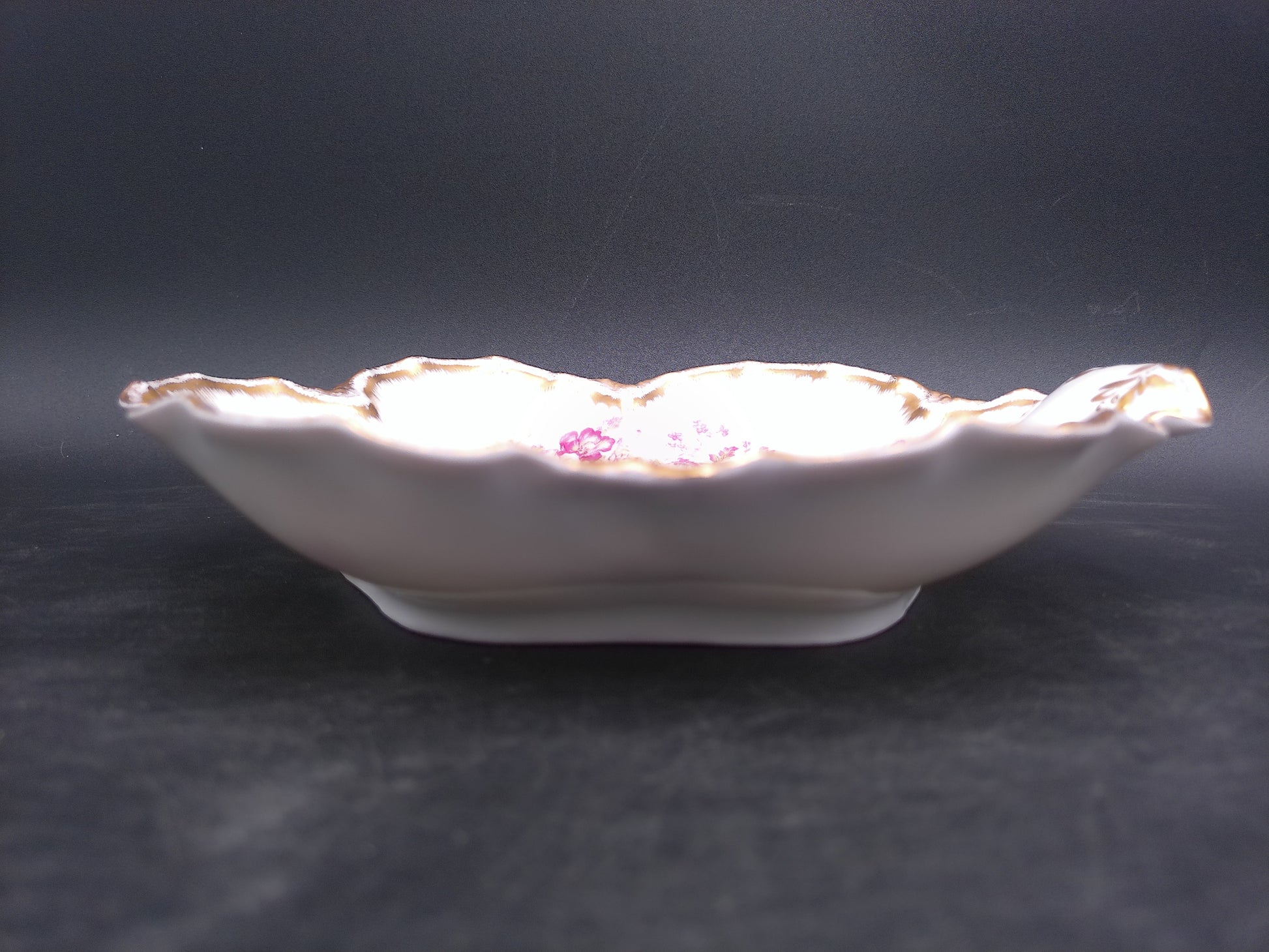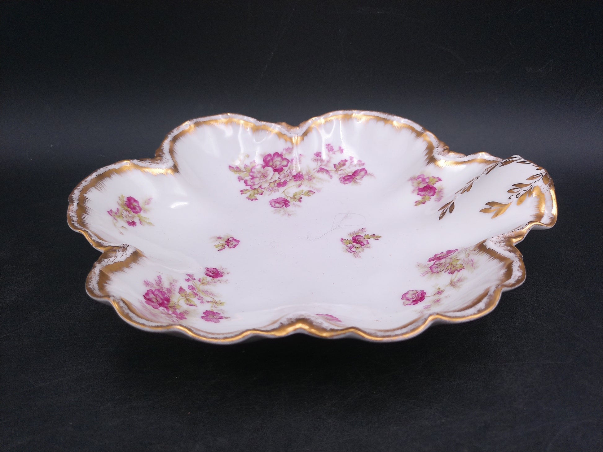 Enhance your dining experience with this vintage Haviland & Co France relish dish, featuring an elegant gold rim. Crafted with timeless sophistication, this plate adds a touch of luxury to any table setting. Perfect for serving appetizers or condiments, it combines classic French artistry with functional design, making it a cherished addition to your collection or a refined gift for special occasions.