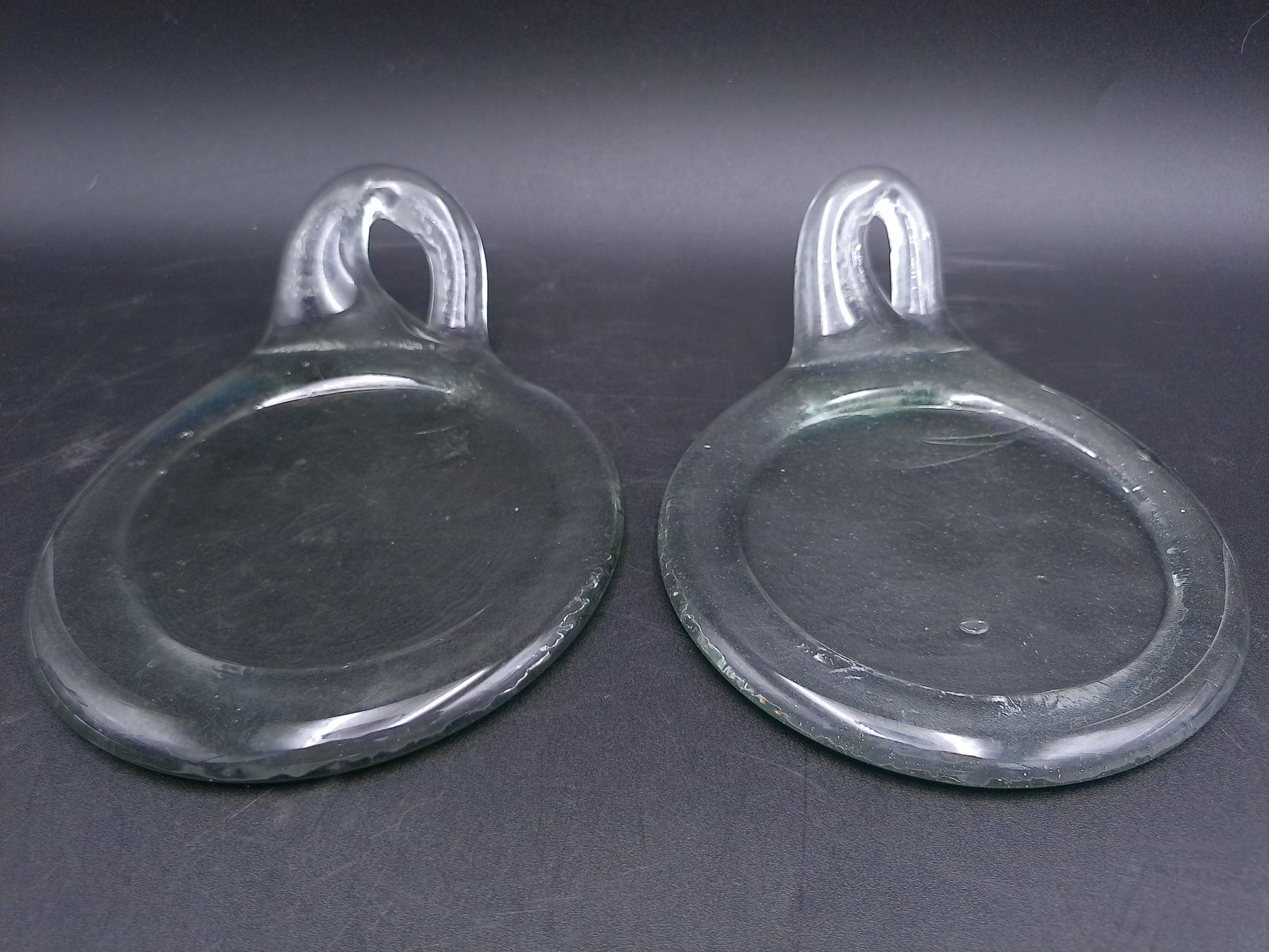 Glass set of 2 Candle holders with Handle and Glass bottle with plate