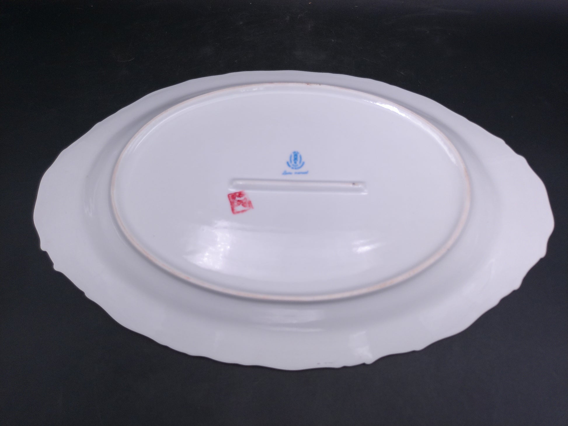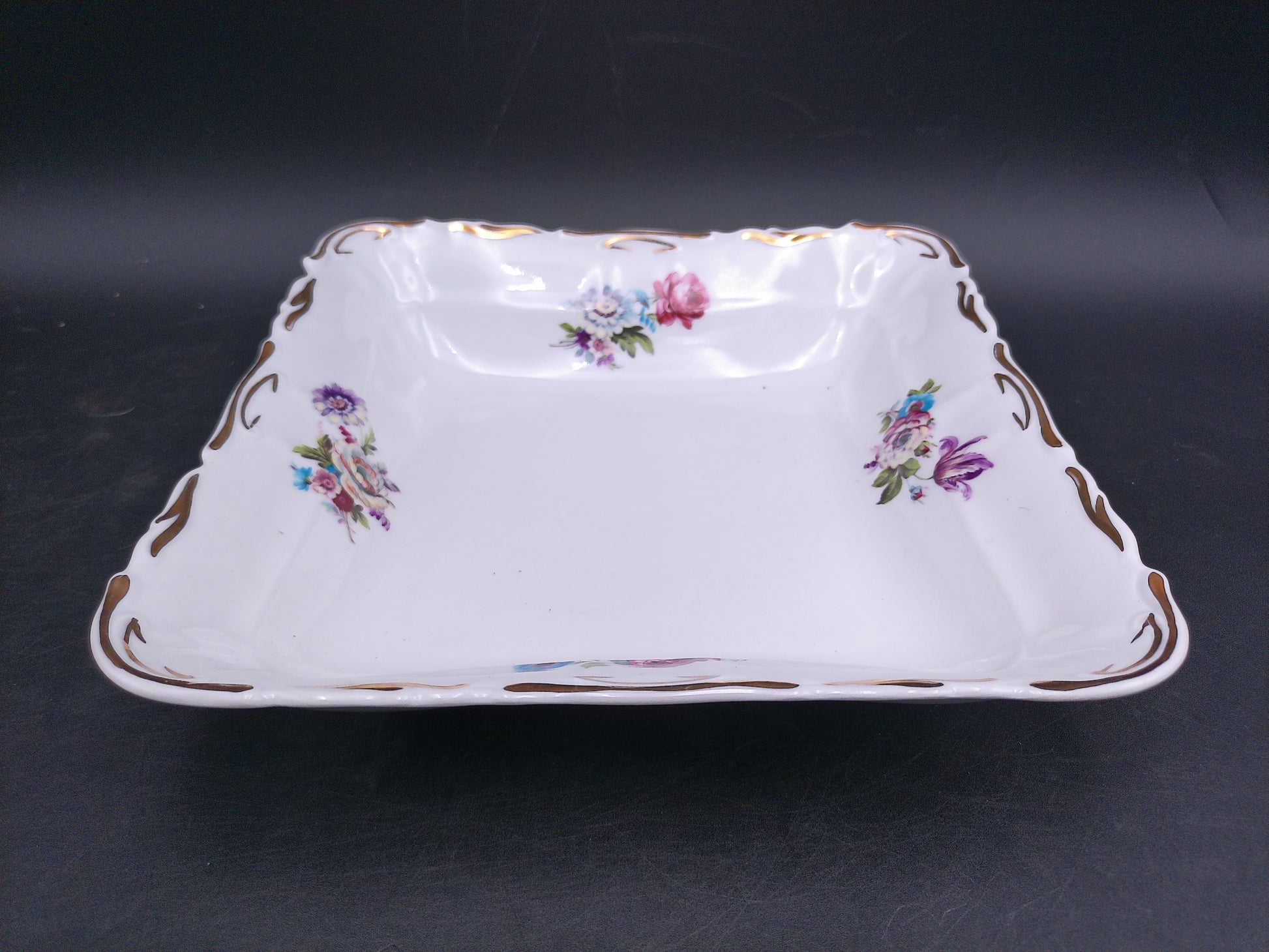 Porcelain Square Serving Dish and Oval Plate Floral Design Gold Trim marked JRJS Cluj Romania