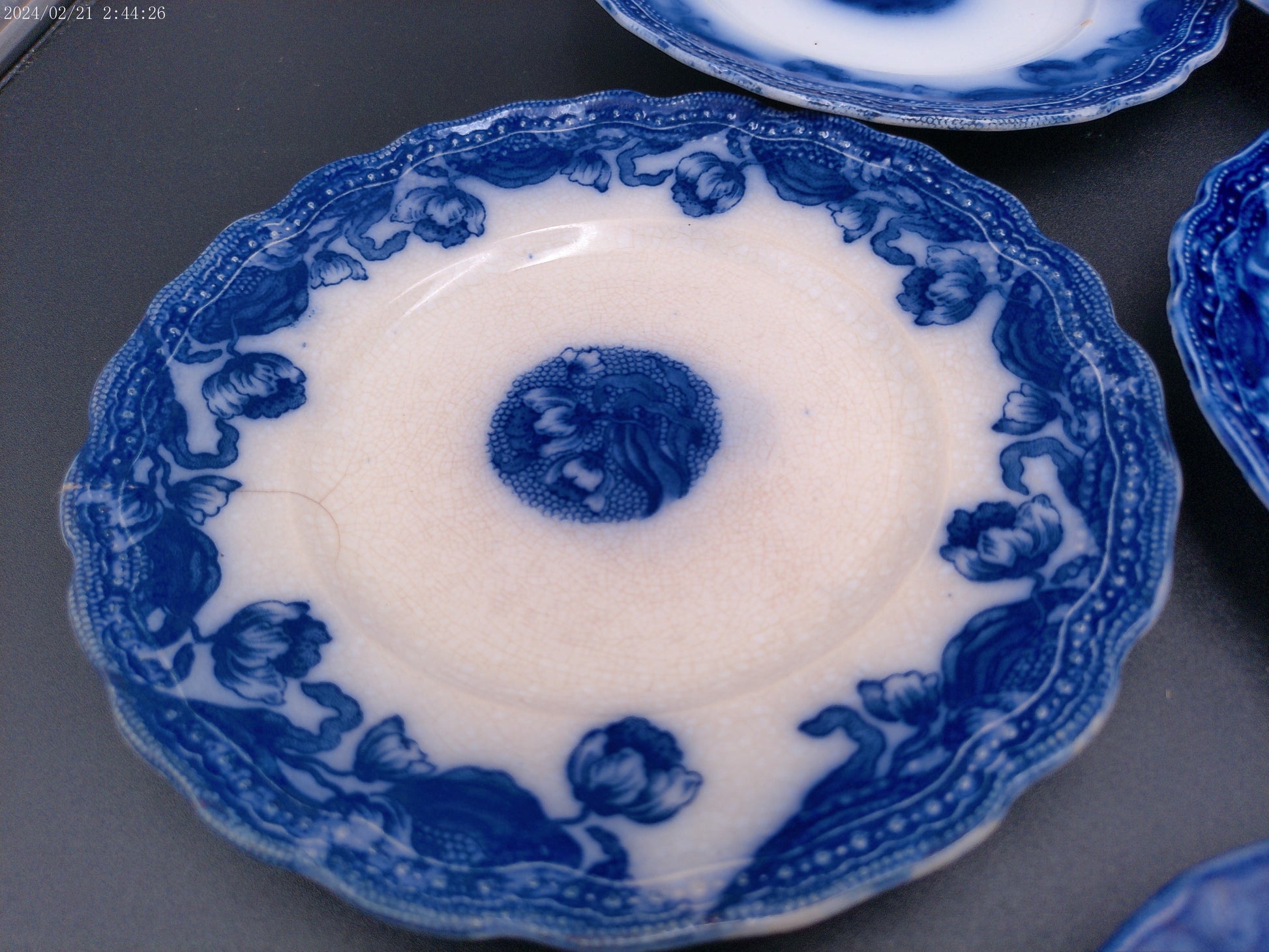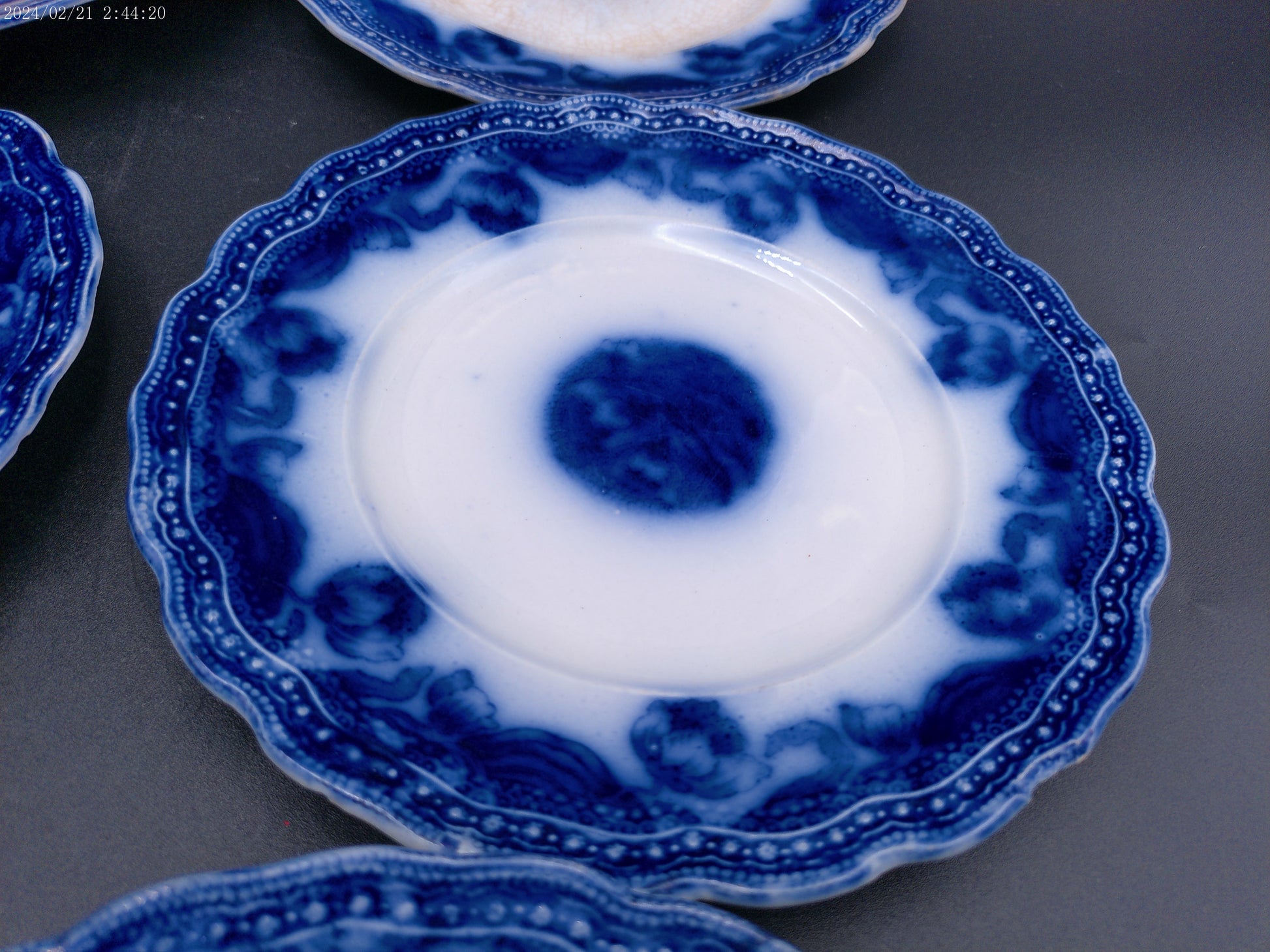Pottery England Semi-Porcelain 9 dish plate set Whampoa Flow Blue Dish Antique