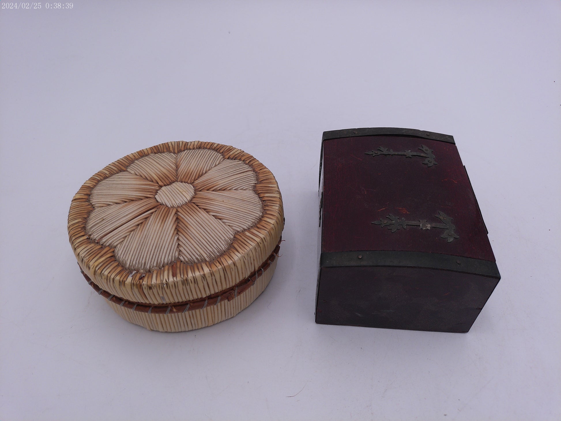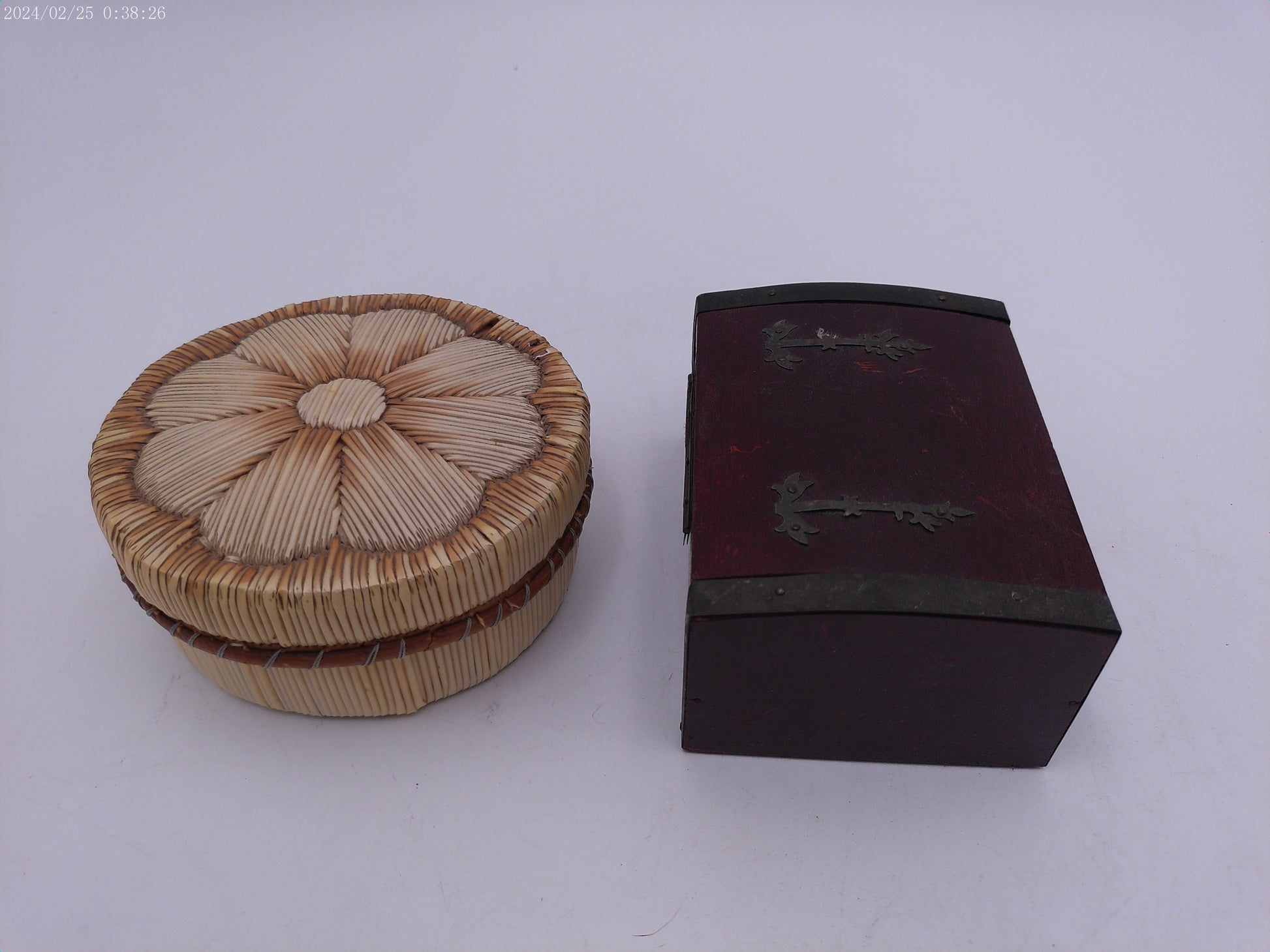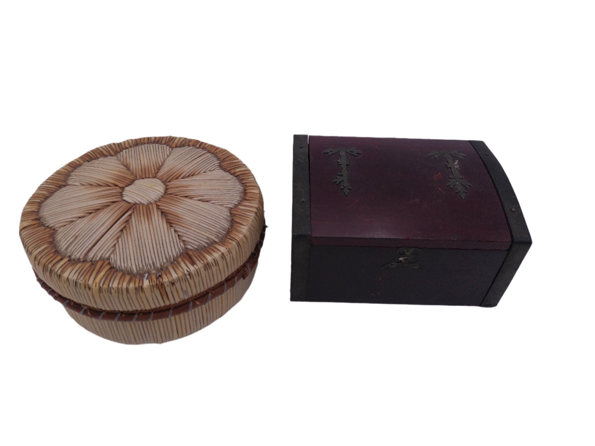 Quillwork basket Birch bark porcupine quills Rare and a jewelry box