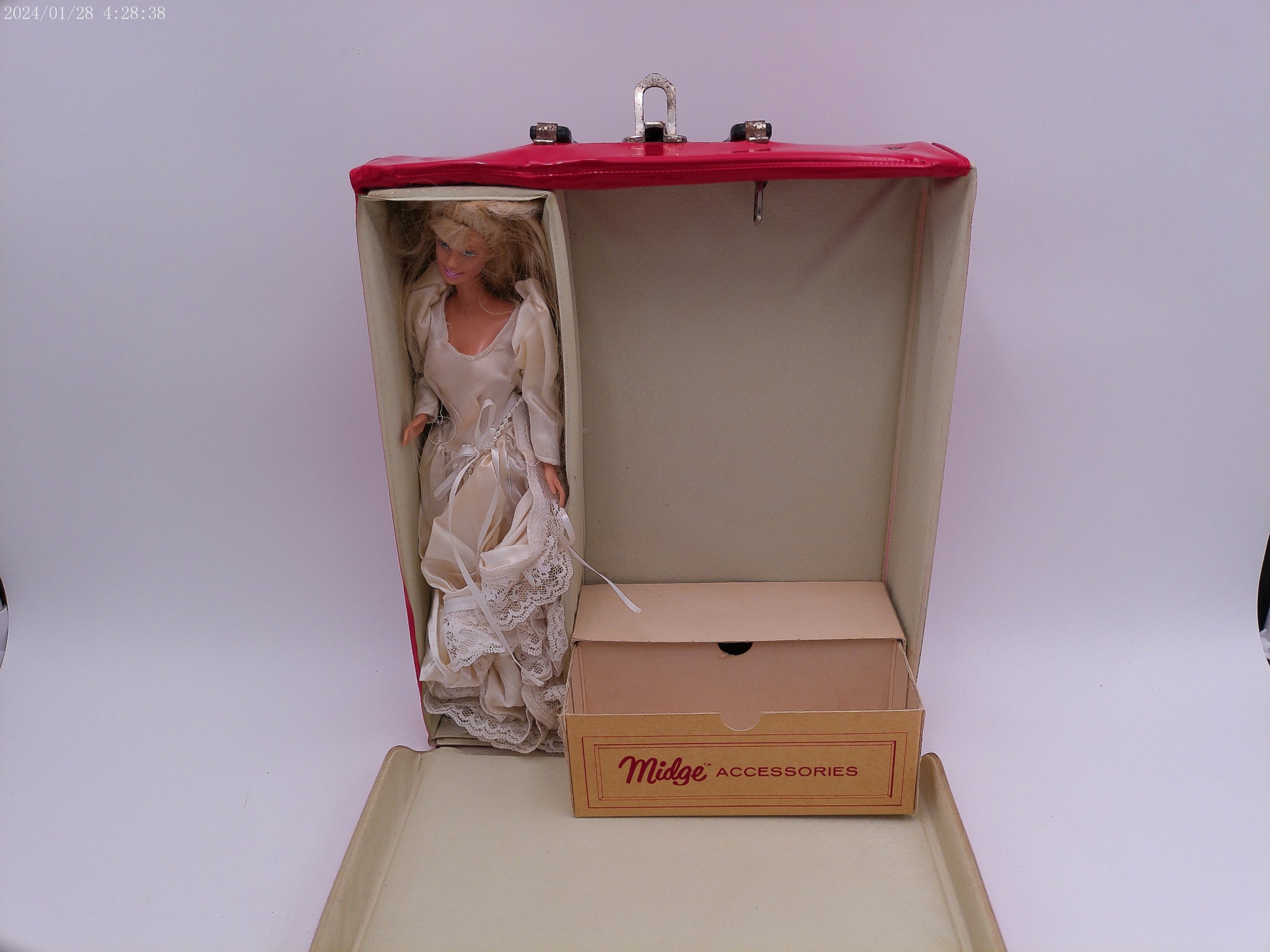 Rare Vintage 1963 Mattel Barbie Doll Red Trunk Case with a Barbie