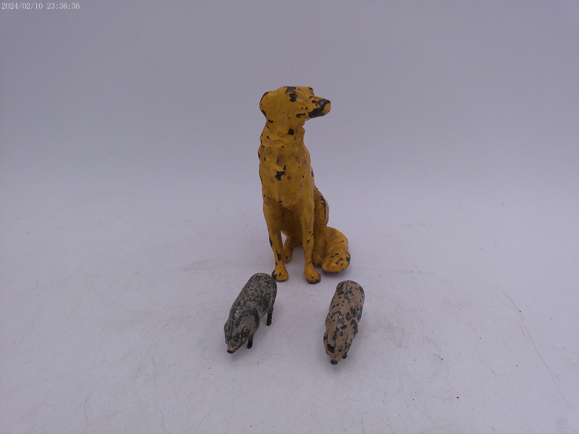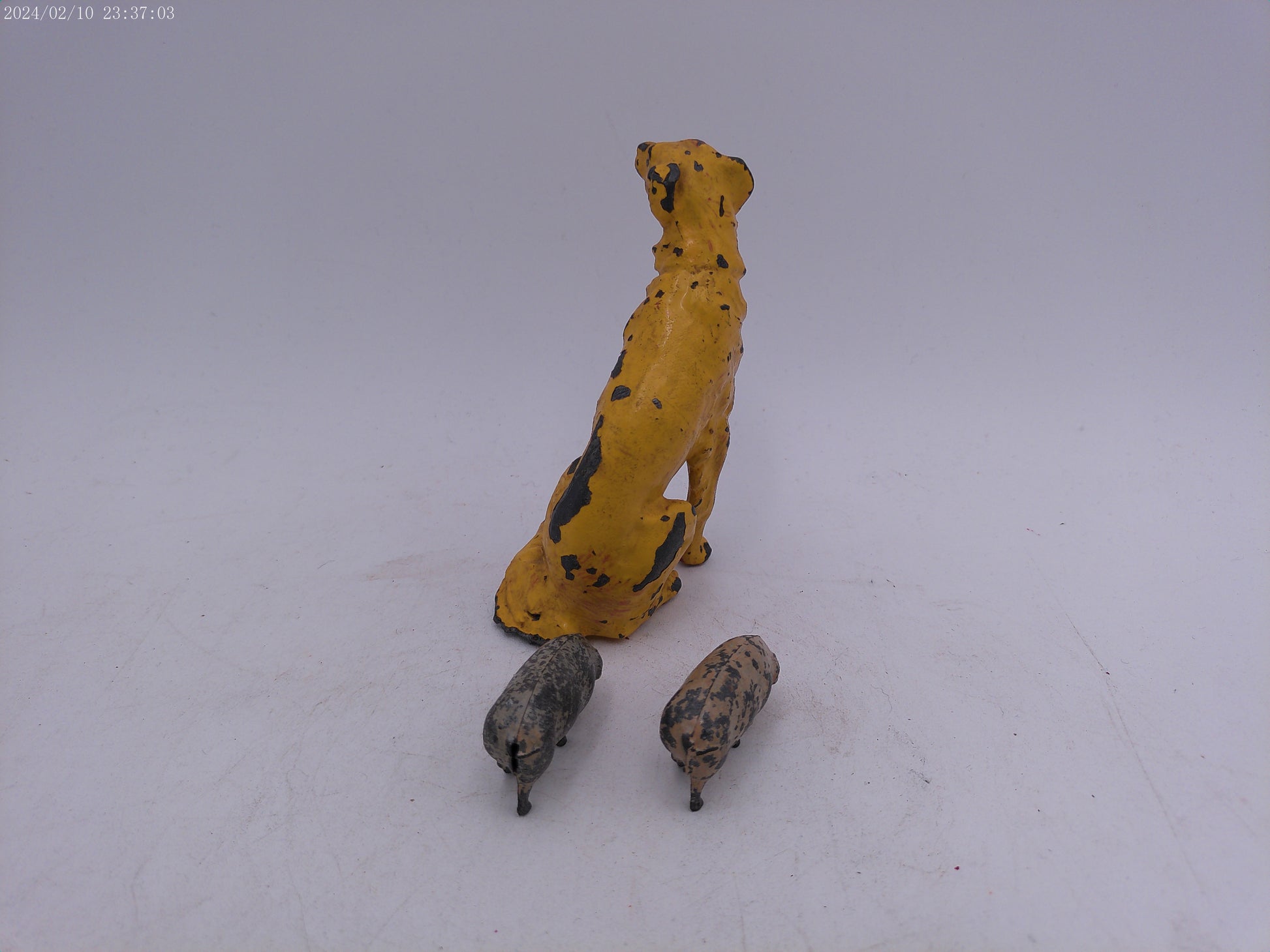 RARE Vintage Metal Dog and 2 small pigs Statue
