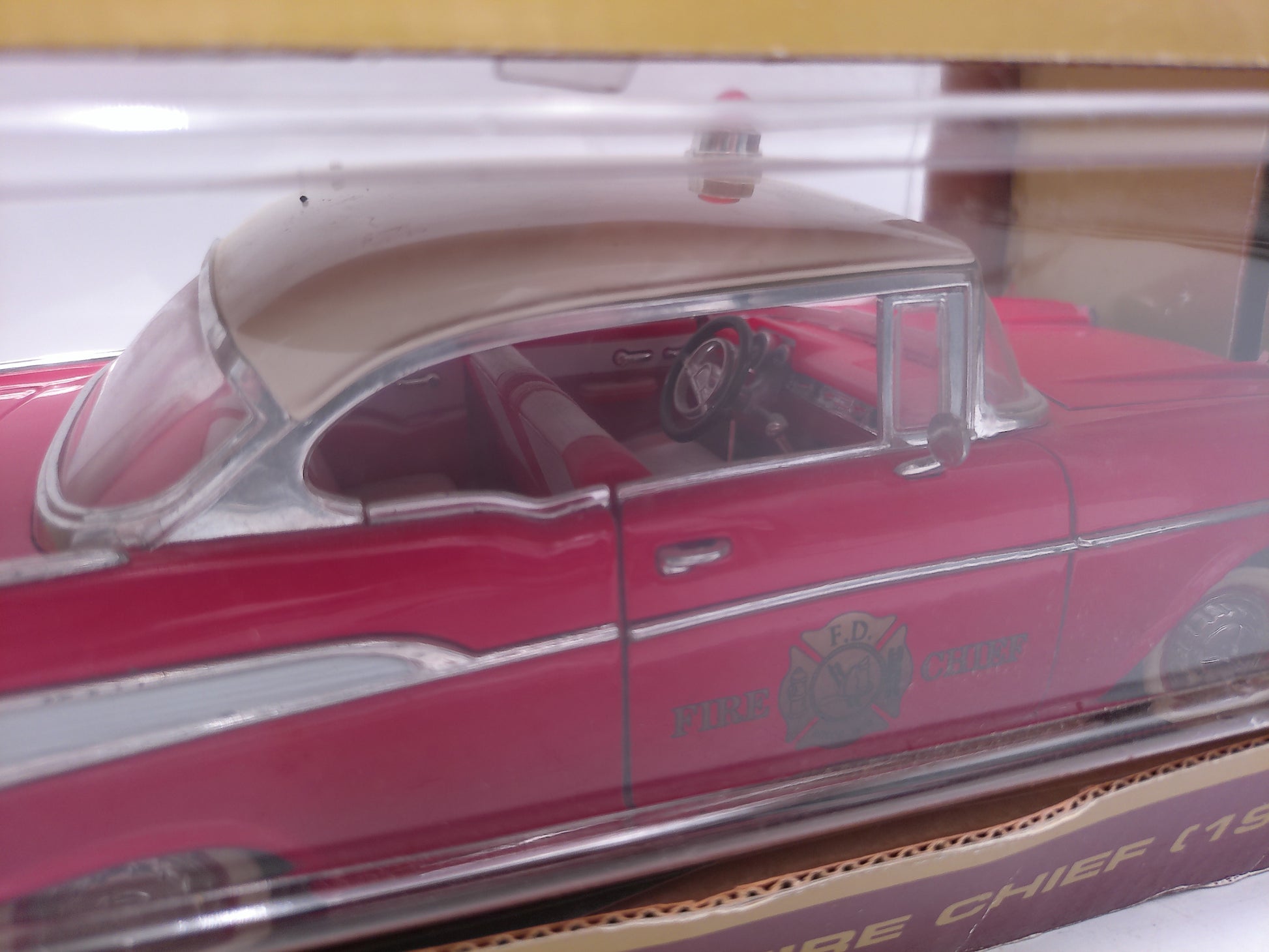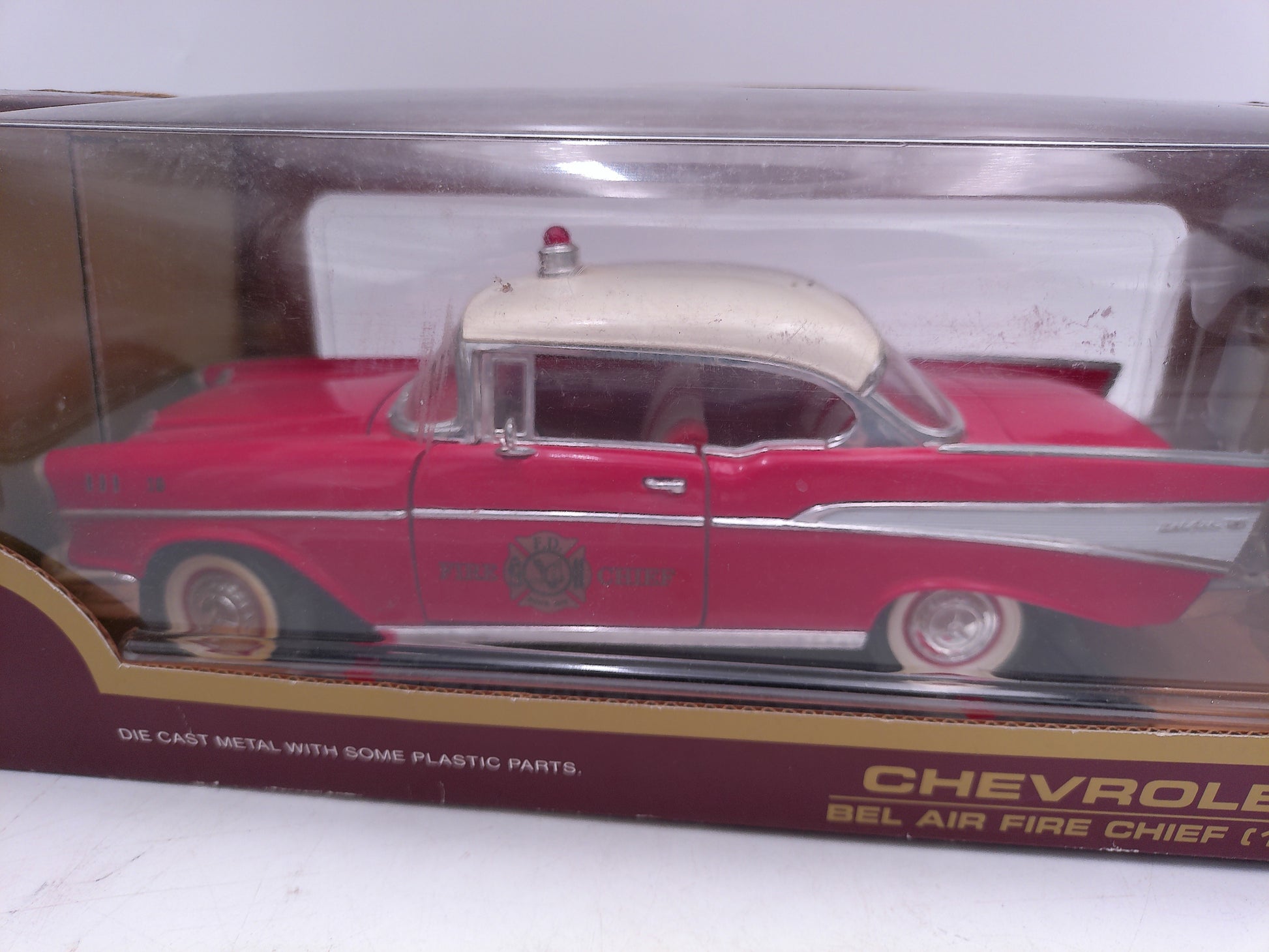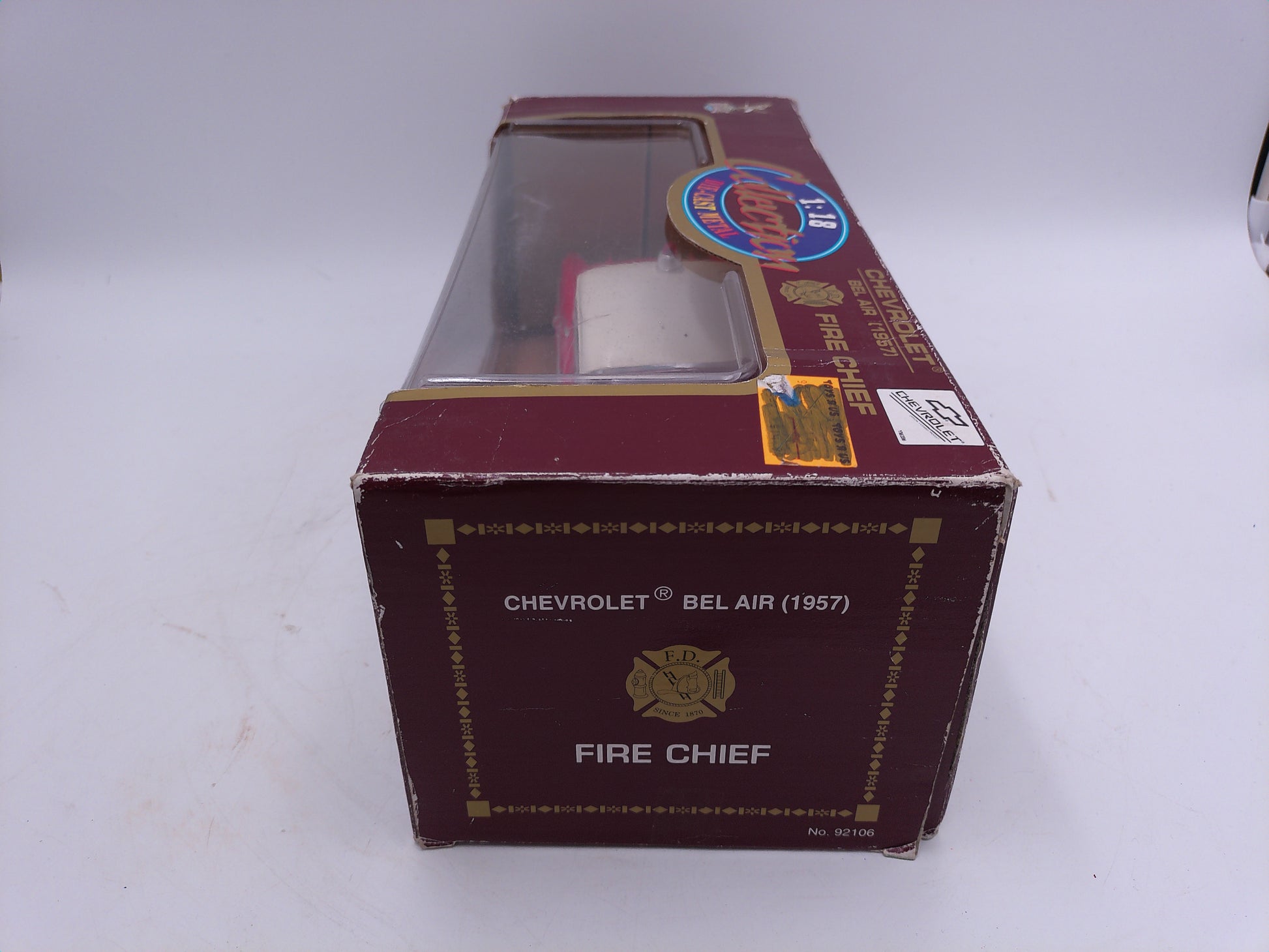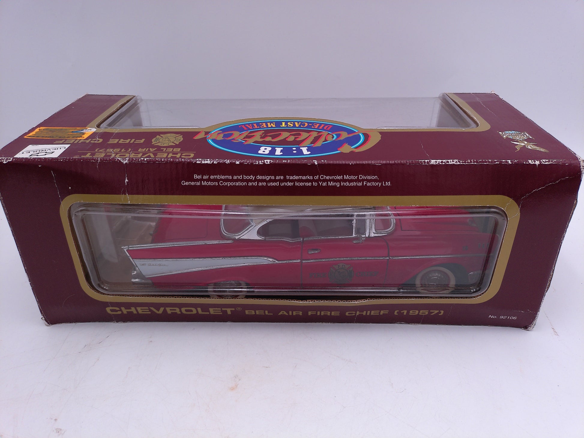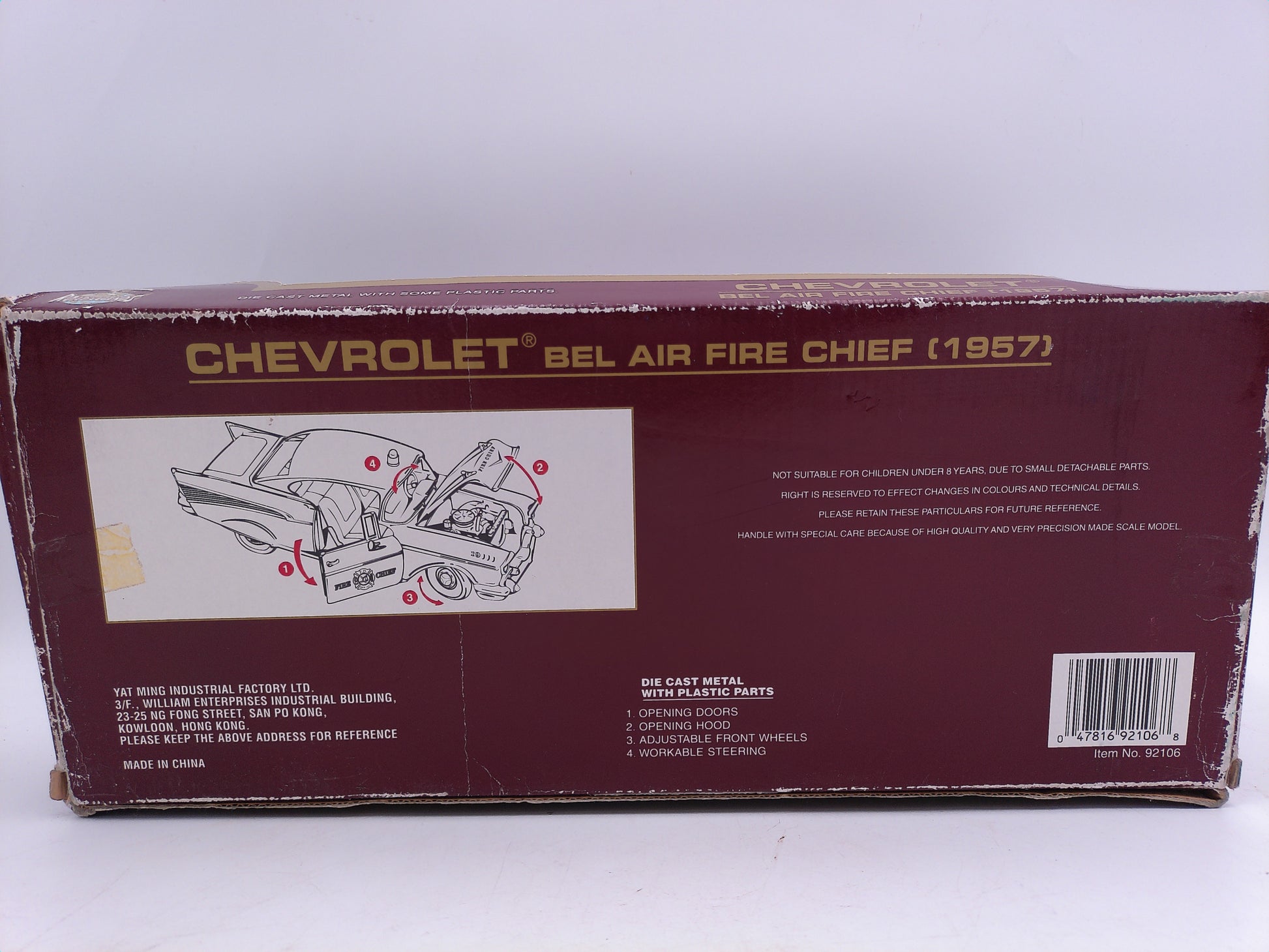 Road Legends Red 1957 Chevrolet Bel Air Fire Chief Yat Ming 1:18 scale 92106 with Box
