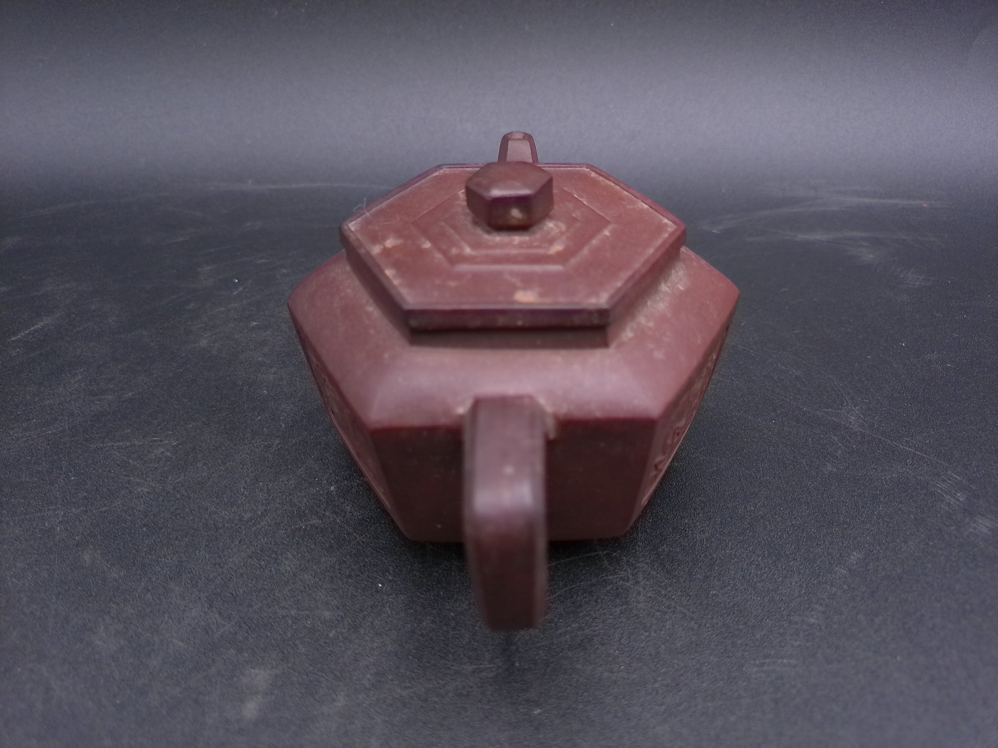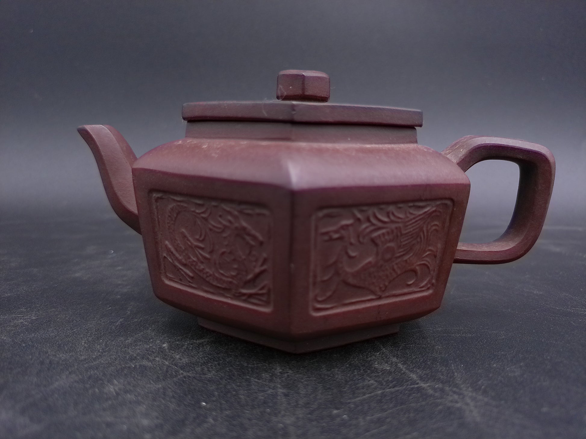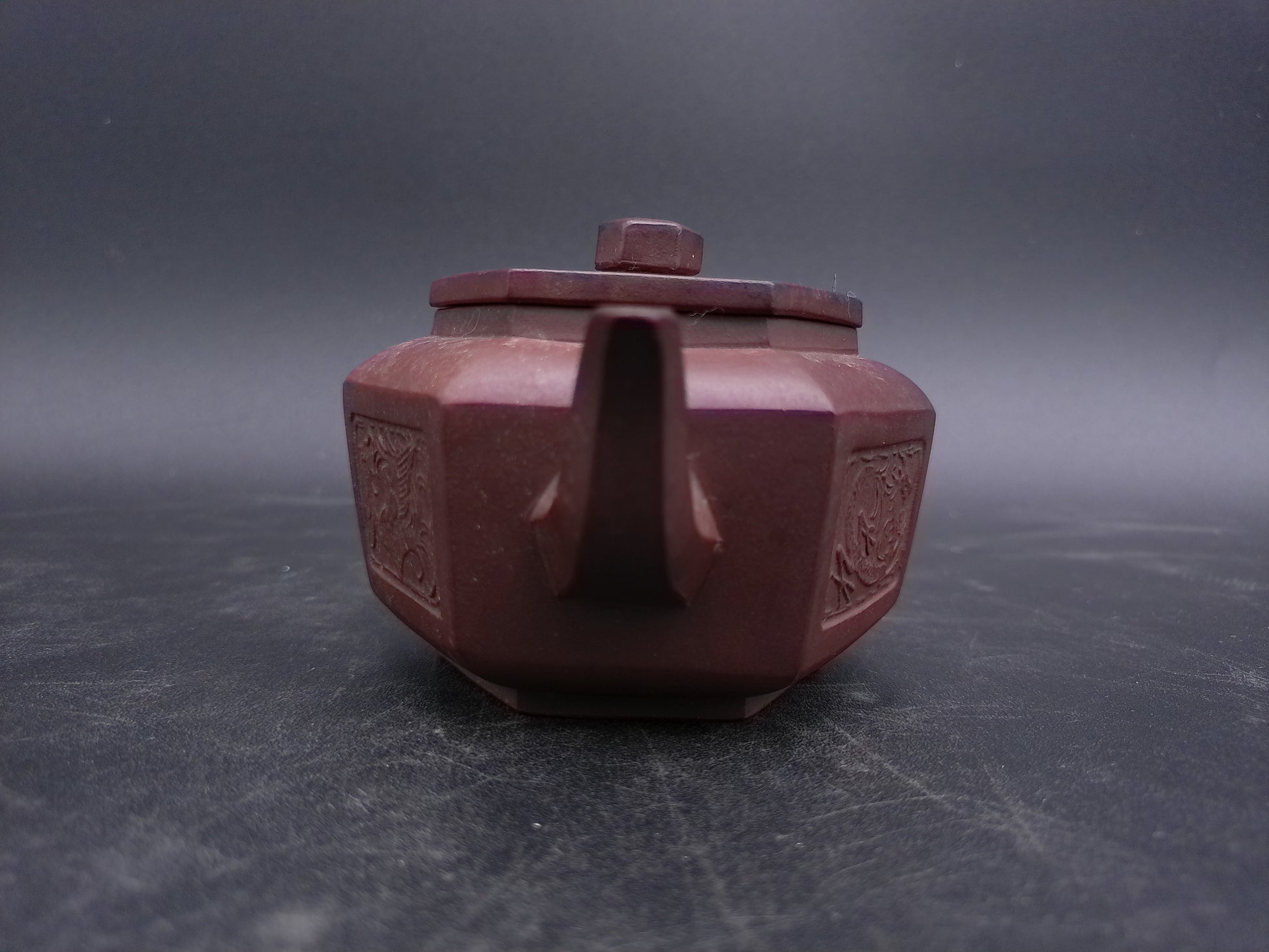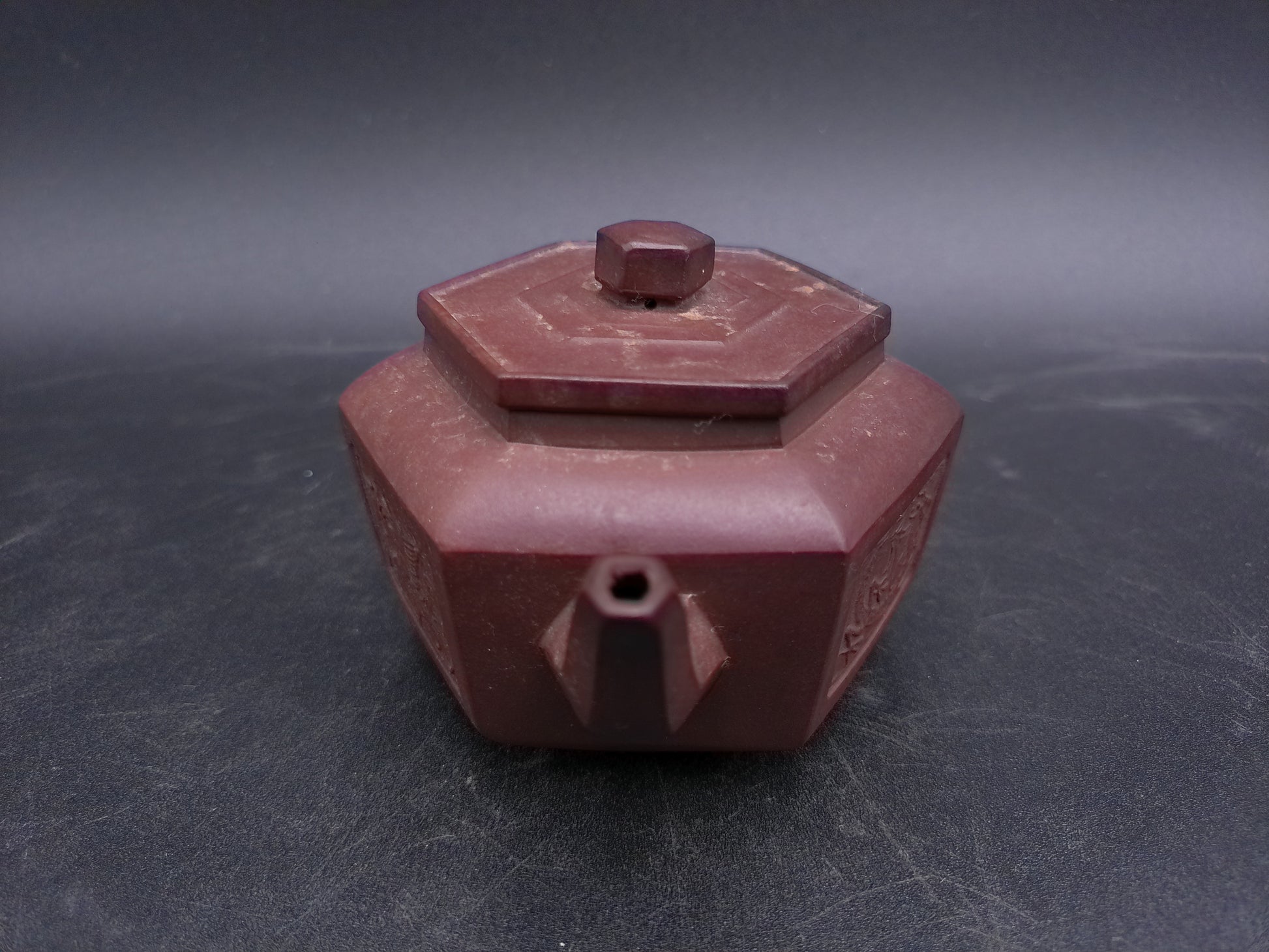 Chinese Teapot Vintage with Design maybe Dragon on sides Clay Brown Rustic Color