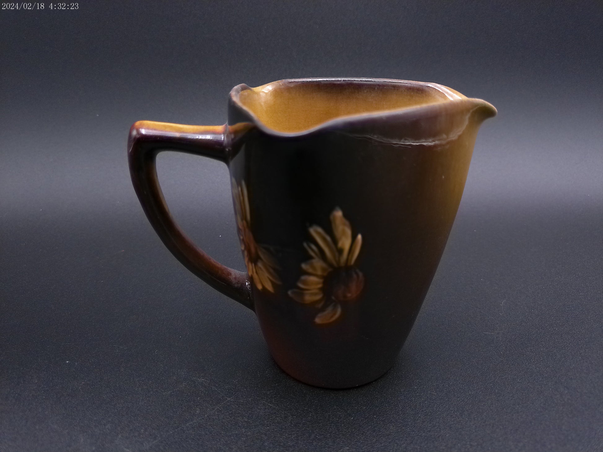 This Rookwood pitcher features a delicate floral design and is signed and marked, adding a touch of elegance to any beverage service. Made with quality craftsmanship, this pitcher is a timeless addition to your kitchen or dining room.