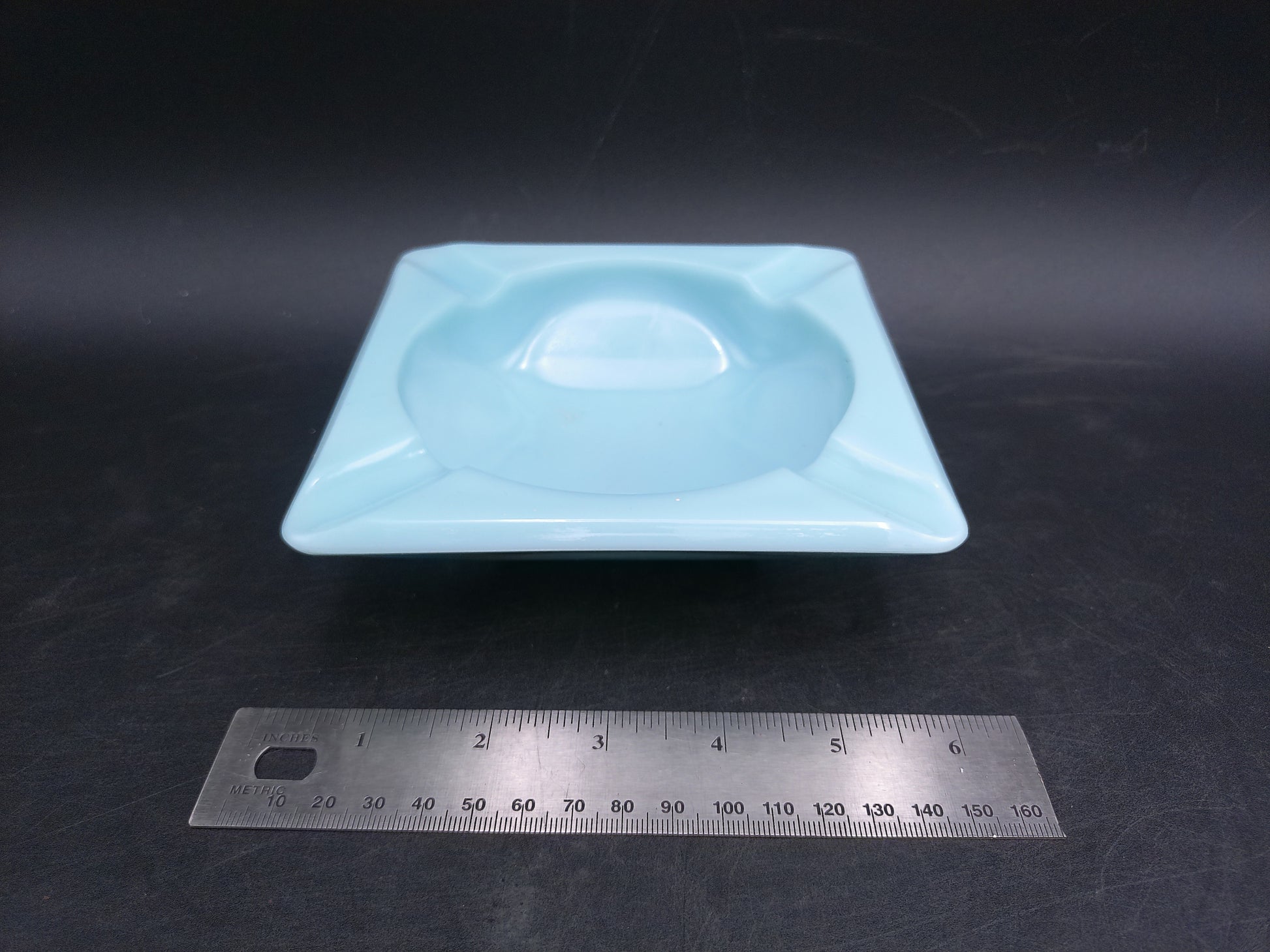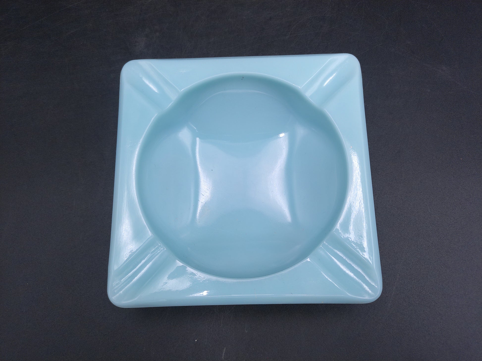 Elevate your space with this vintage light blue opaque glass ashtray. Its square design combines classic charm with practical use, making it a stylish addition to any room. Durable and easy to clean, it’s perfect for collectors or those seeking a unique decorative piece that adds a subtle pop of color and nostalgia.