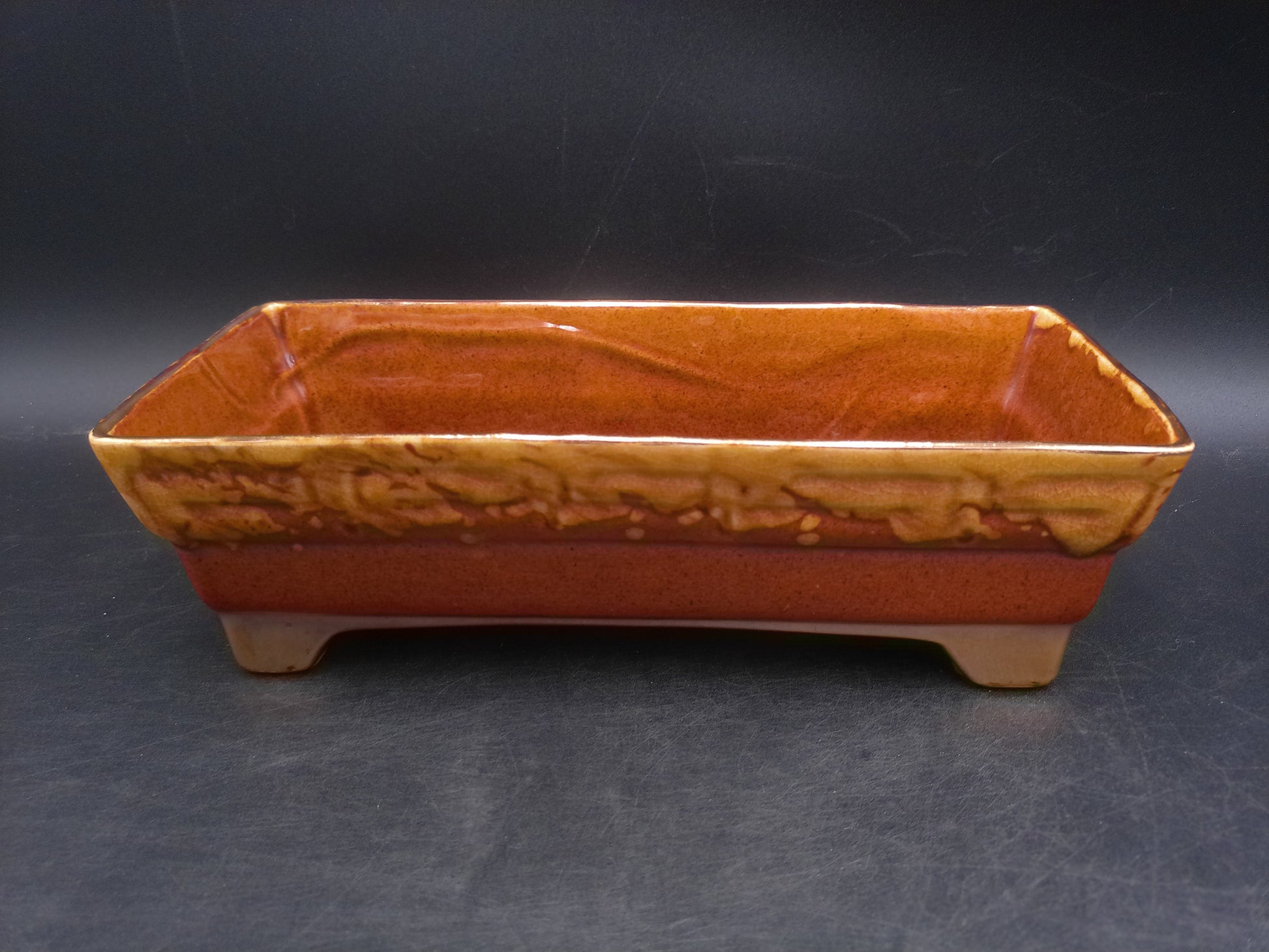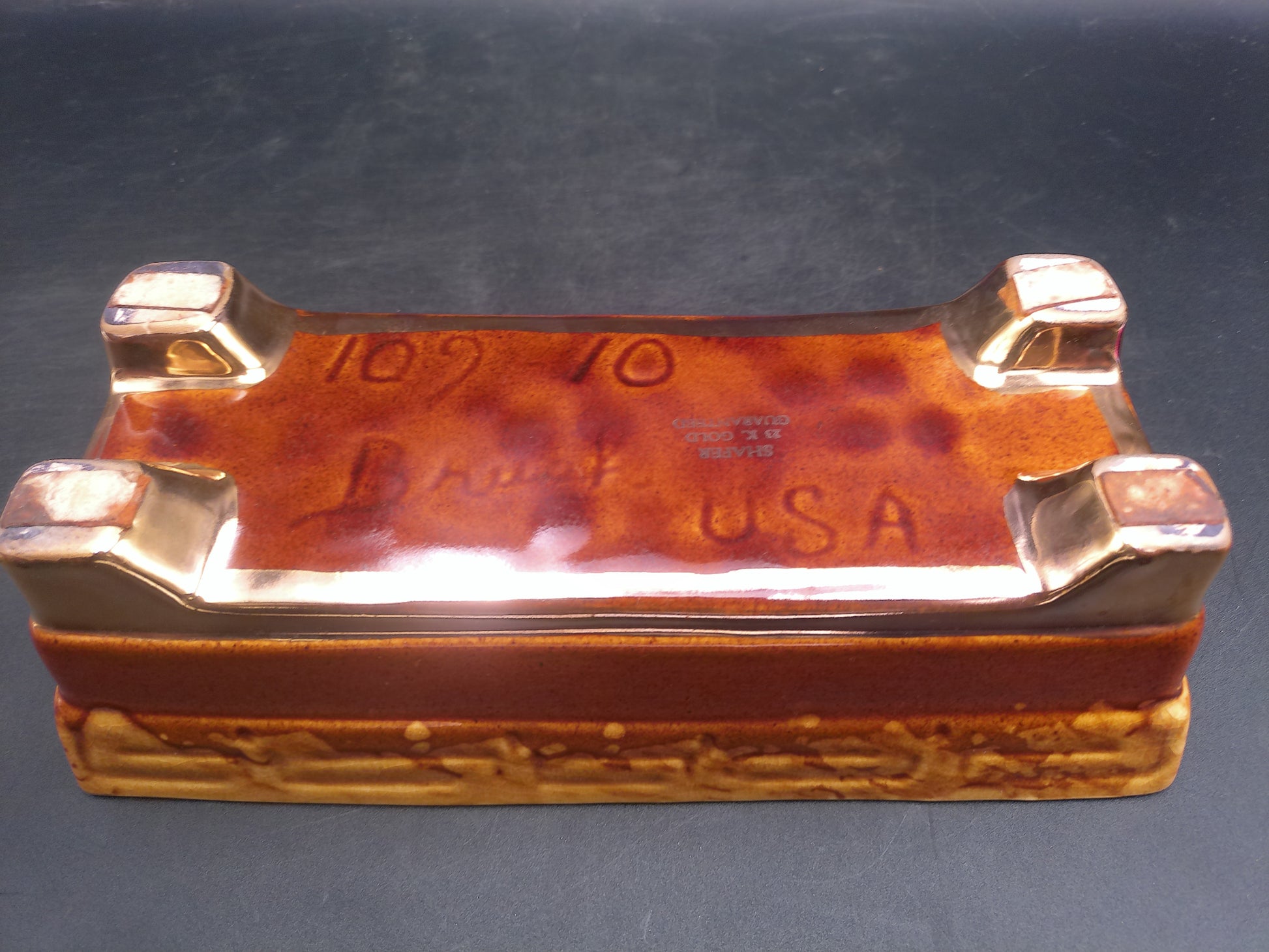 Shafer 23K Gold Marked Rectangle Brown Drip Glaze Brush Ceramic Planter