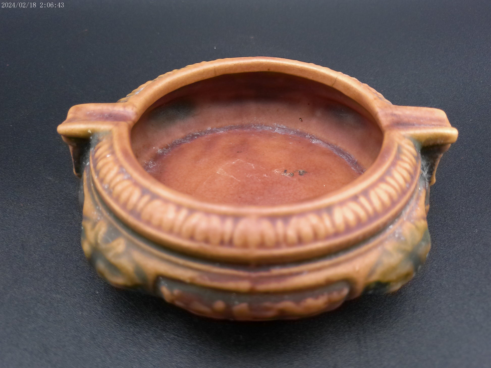 This vintage Roseville Florentine pottery bowl showcases intricate hand-painted designs, making it a charming addition to any antique collection. Crafted with high-quality materials and attention to detail, this bowl boasts timeless elegance and is sure to become a treasured piece. Experience the beauty and history of Roseville pottery with this antique bowl.