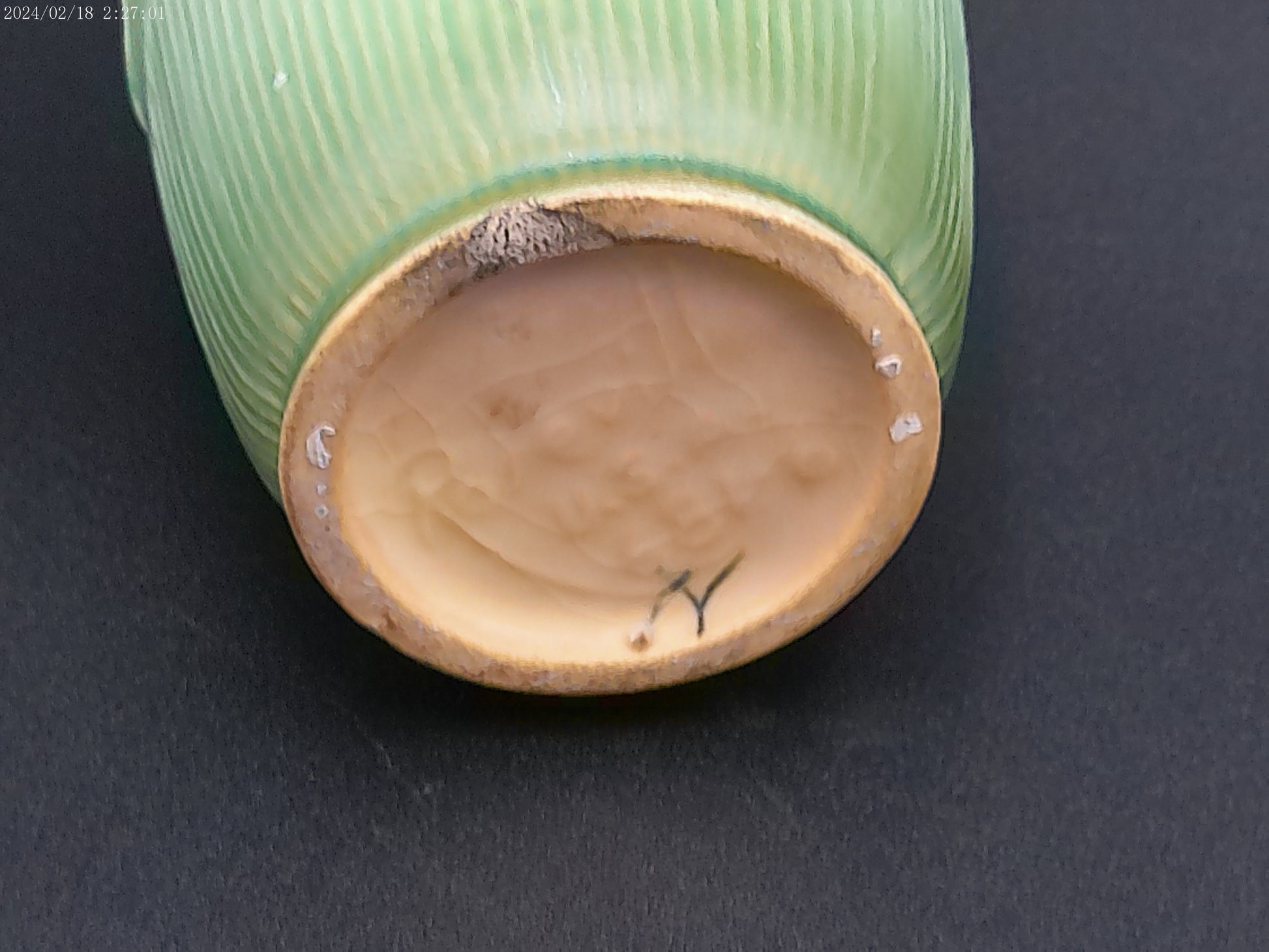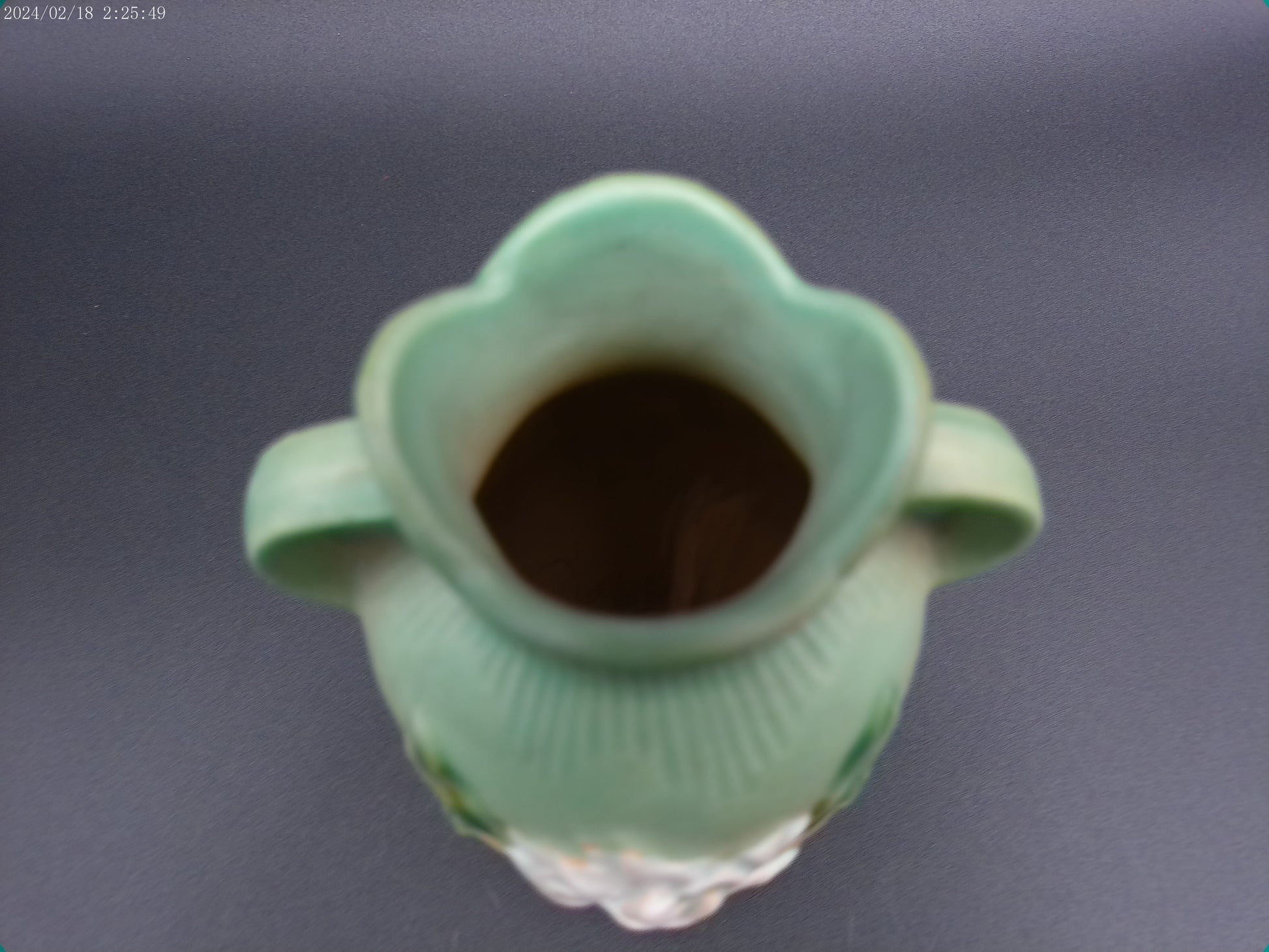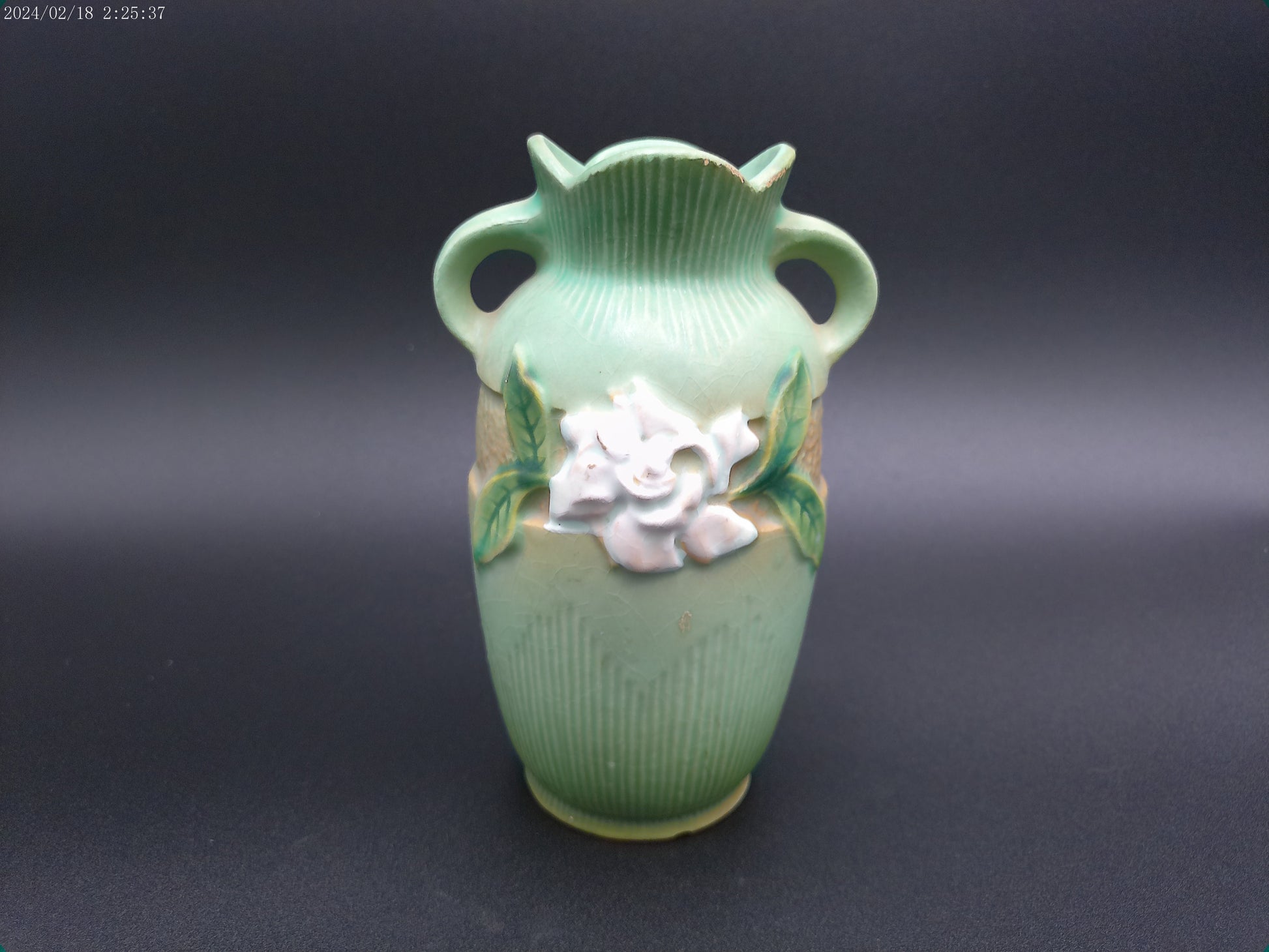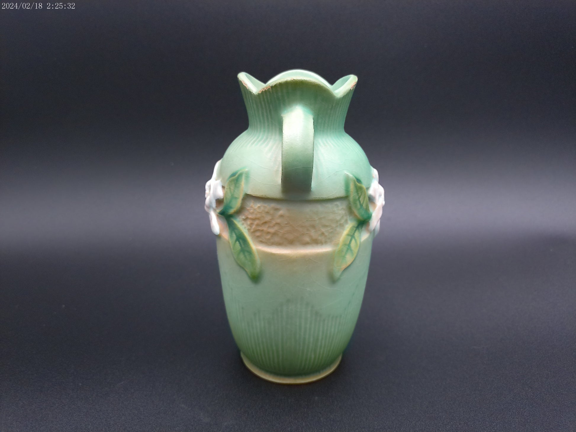 Roseville Pottery Green Gardenia Handled Vase Vintage