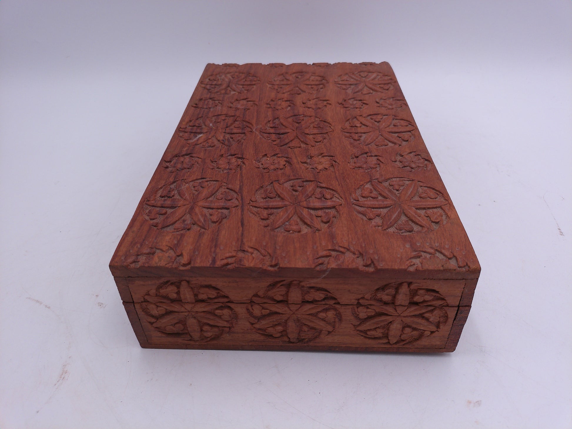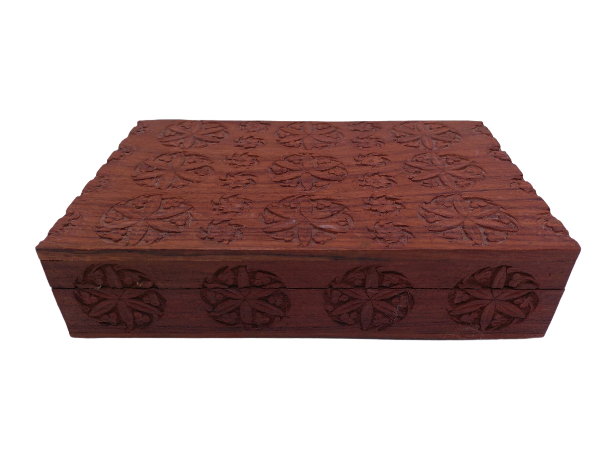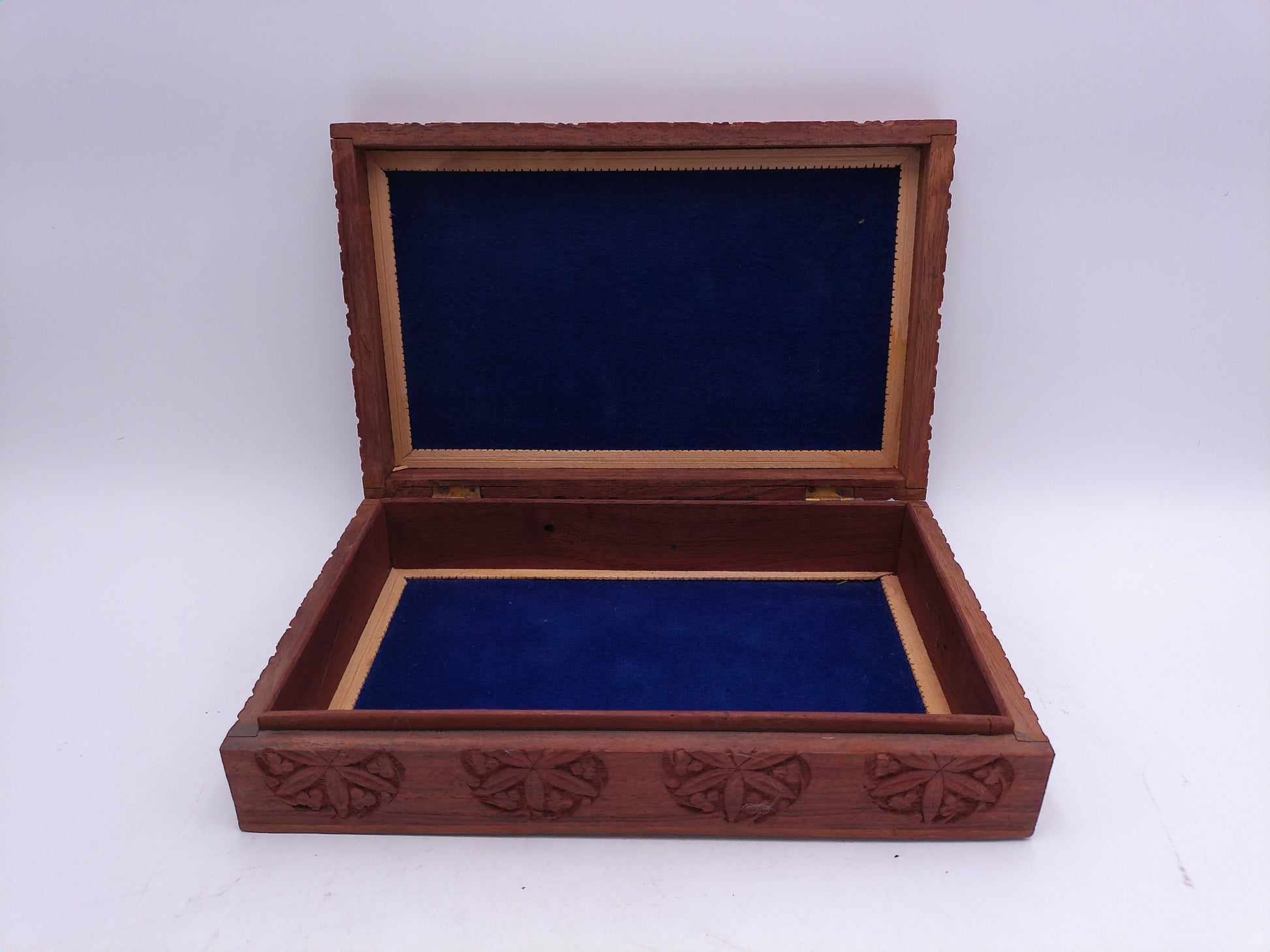 Rosewood Jewelry Box with Velvet Interior Hand Carved