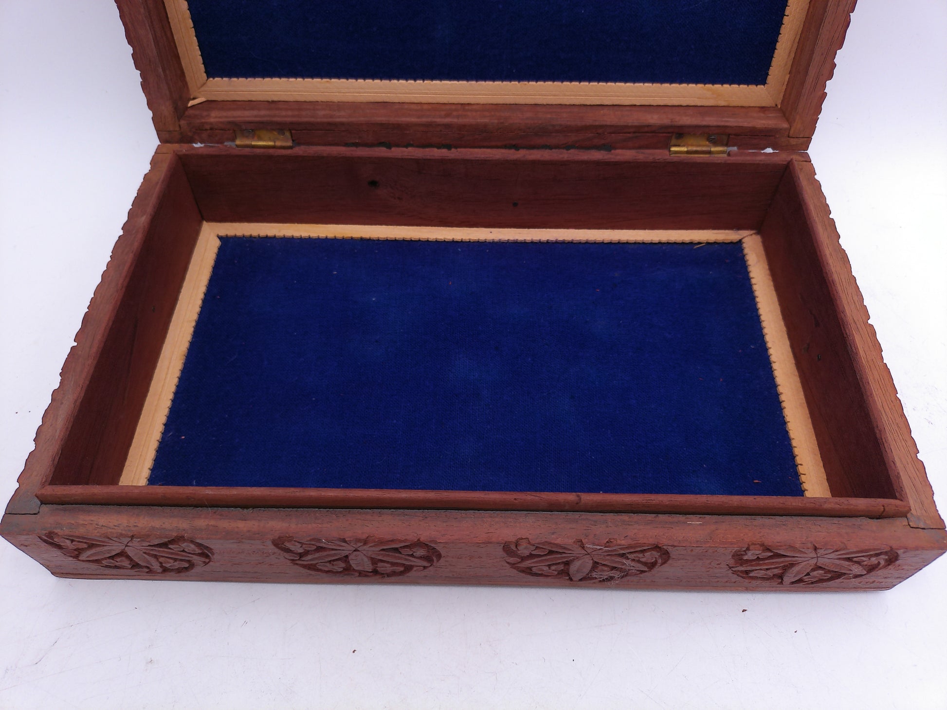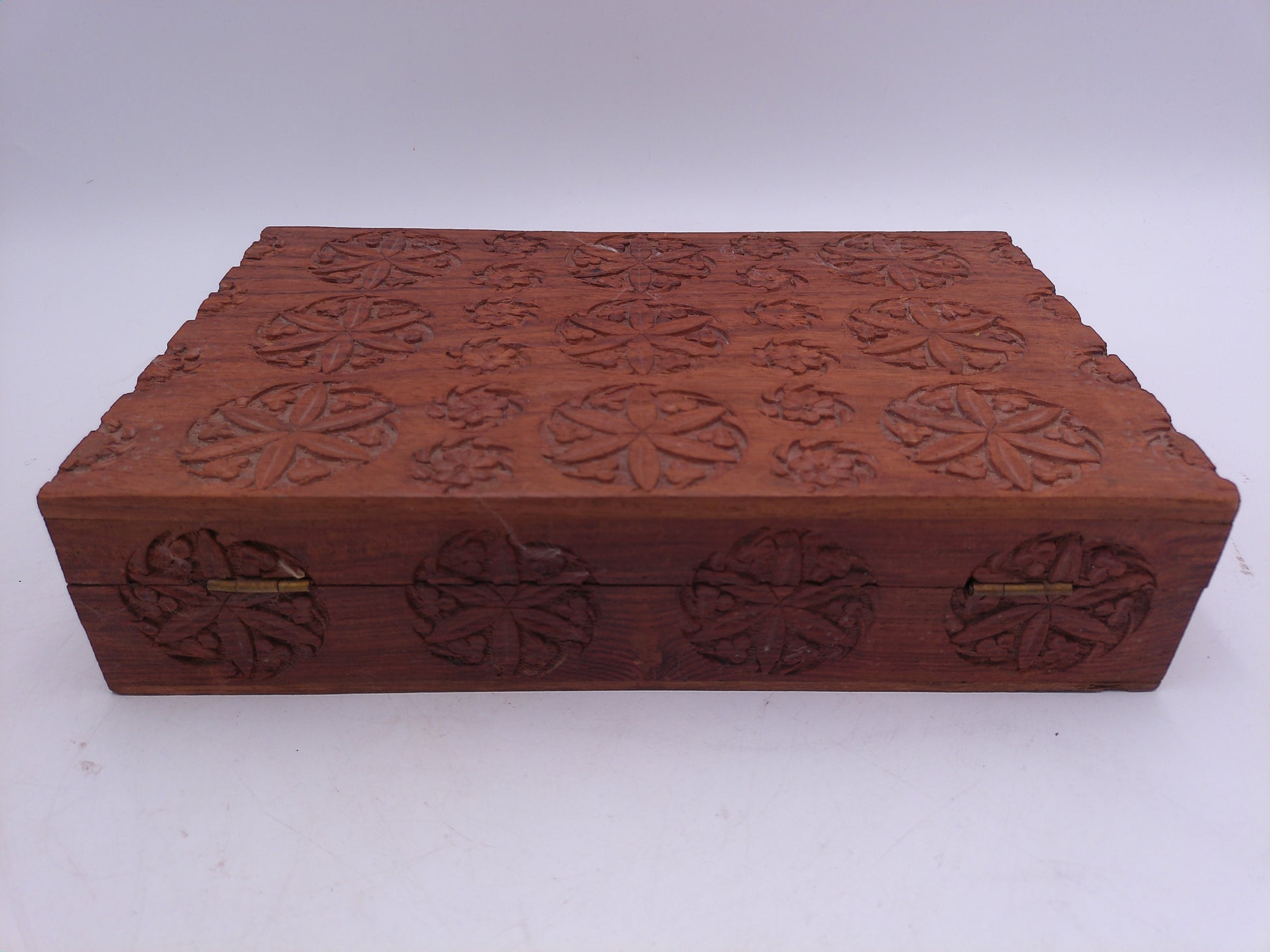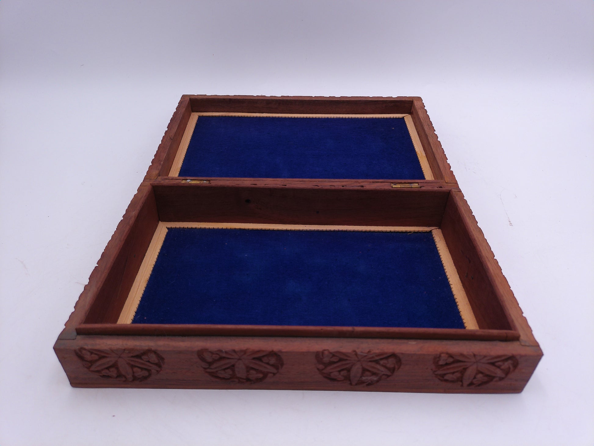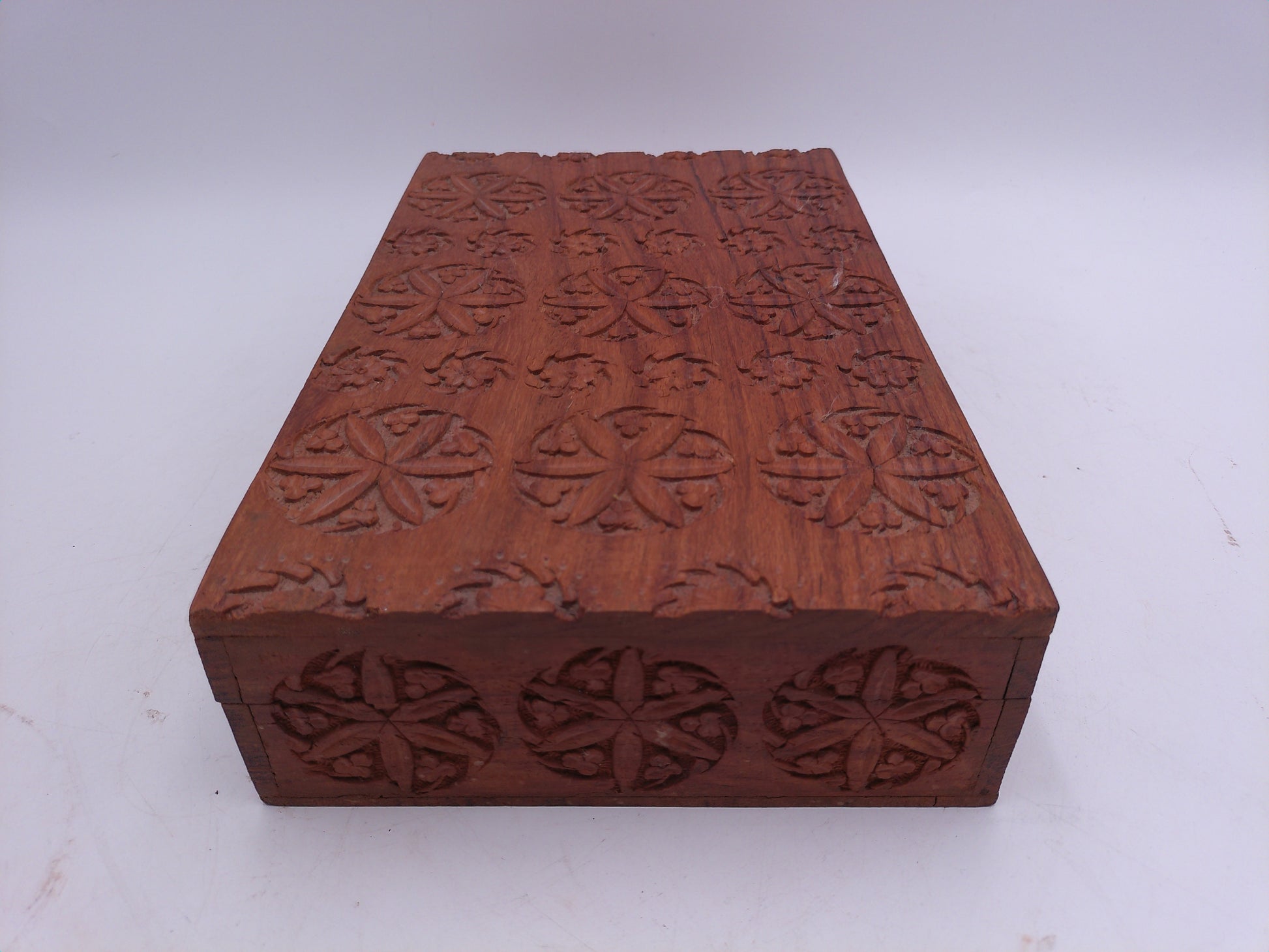 Rosewood Jewelry Box with Velvet Interior Hand Carved