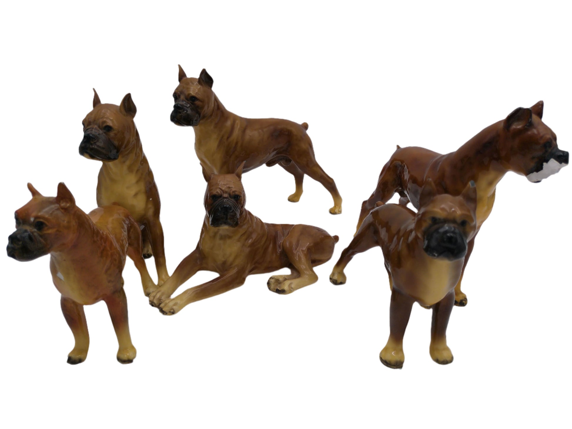 6 BOXER DOG FIGURINES STATUES PORCELIAN
