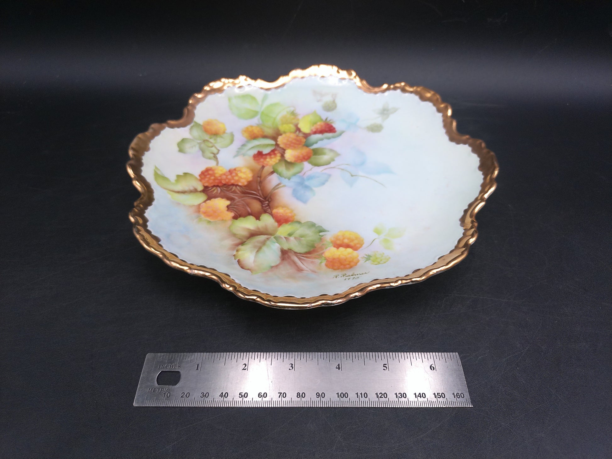 Gold Plate Gold Thick Rim Floral Design Vintage Beautiful Marked P. Palmer 1975