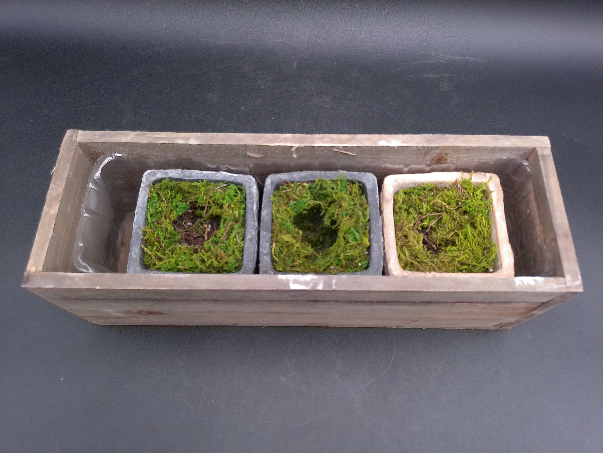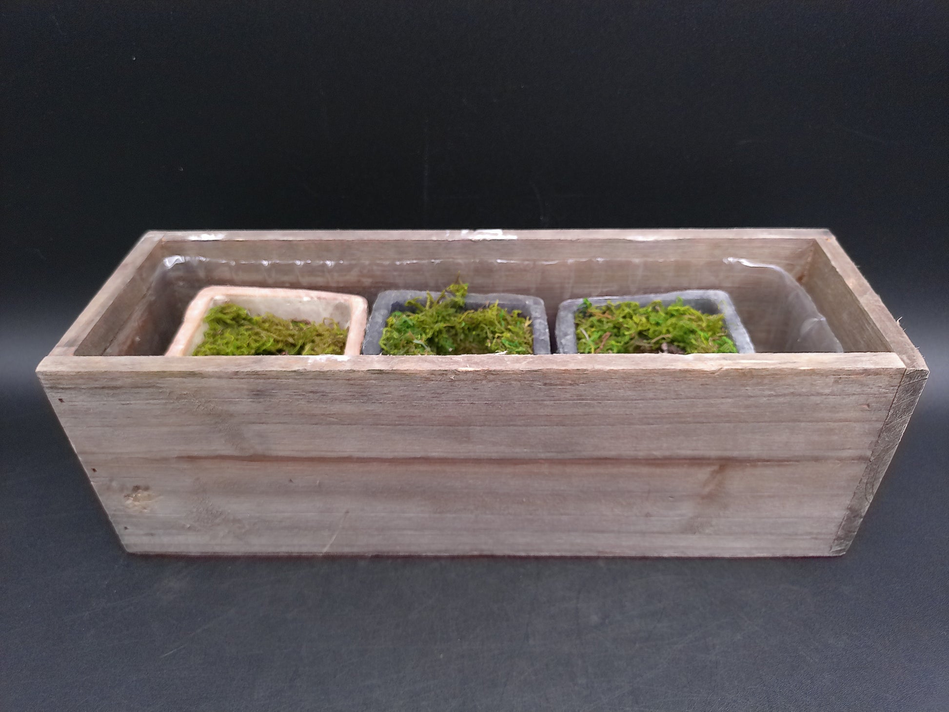 Rectangle Wooden Planter With Moss Decorative Lifelike Plants