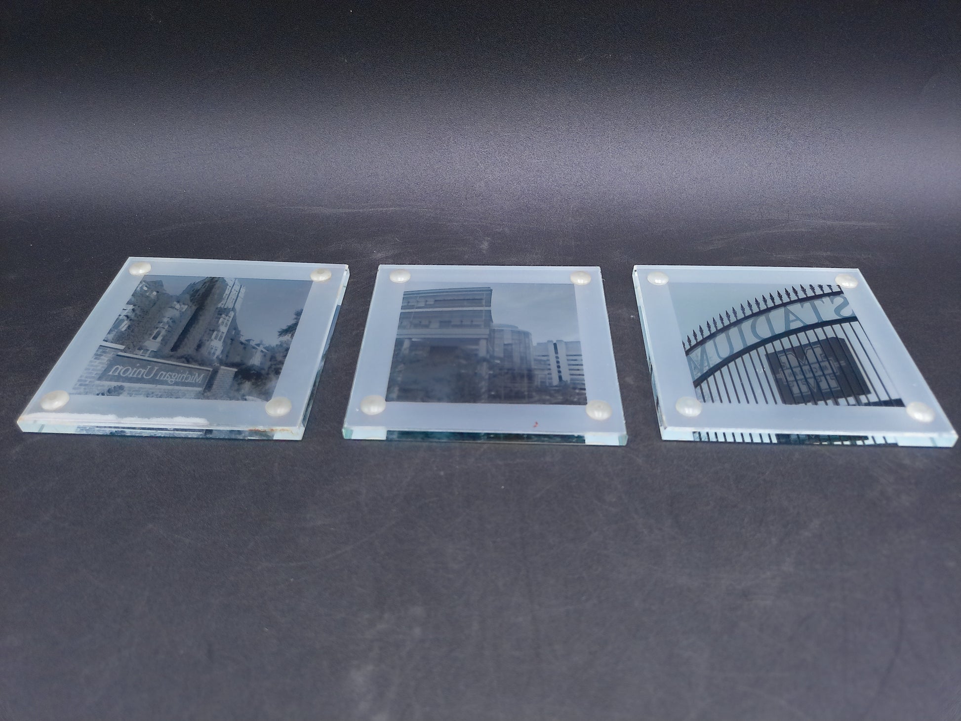 U of M University of Michigan Locations on a Set of 3 Glass Drink Costers