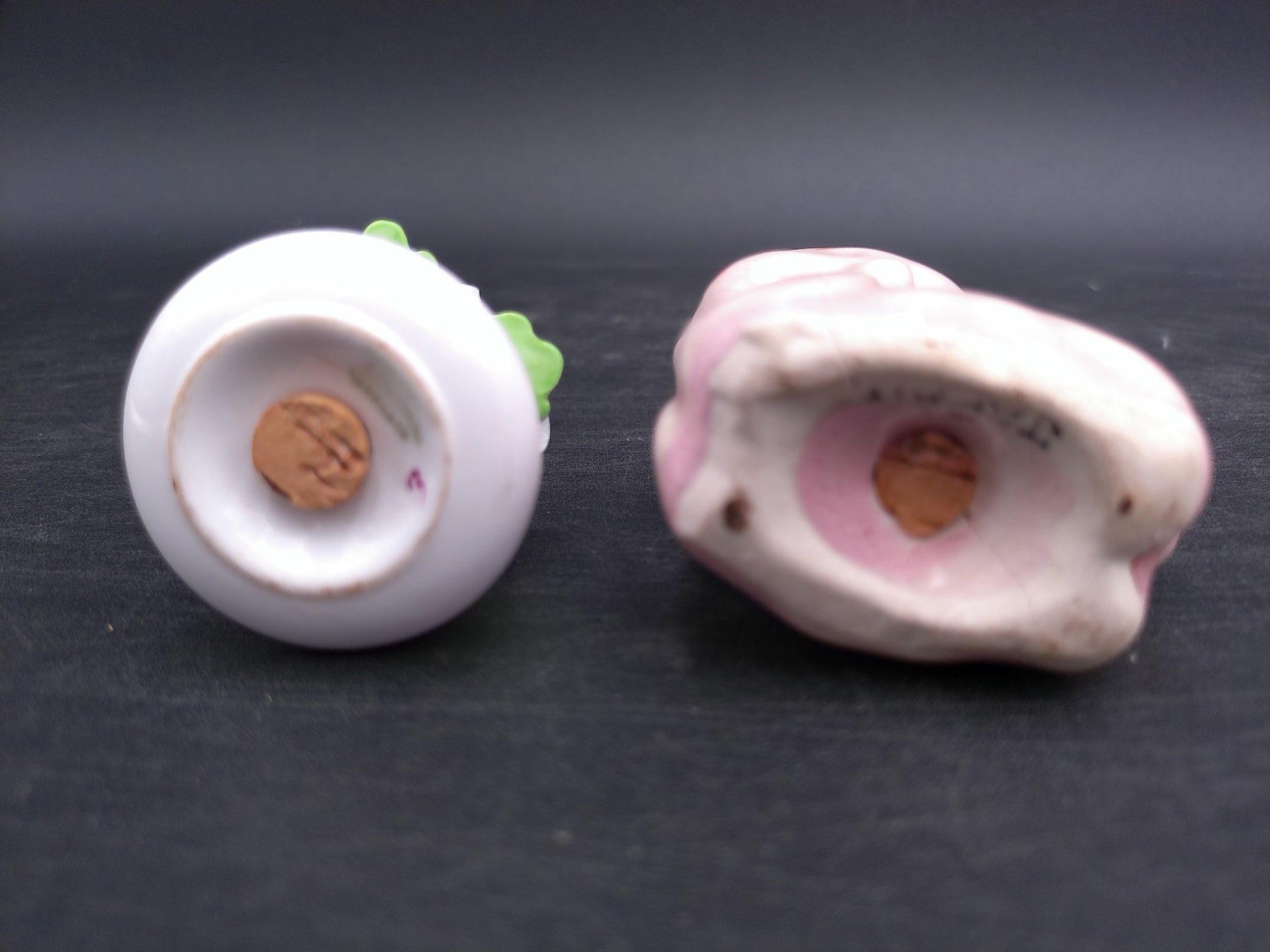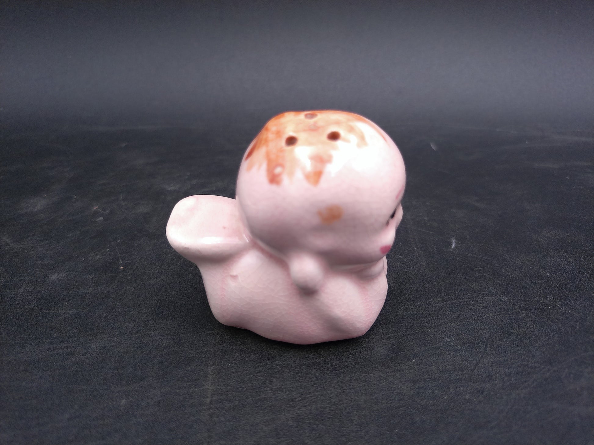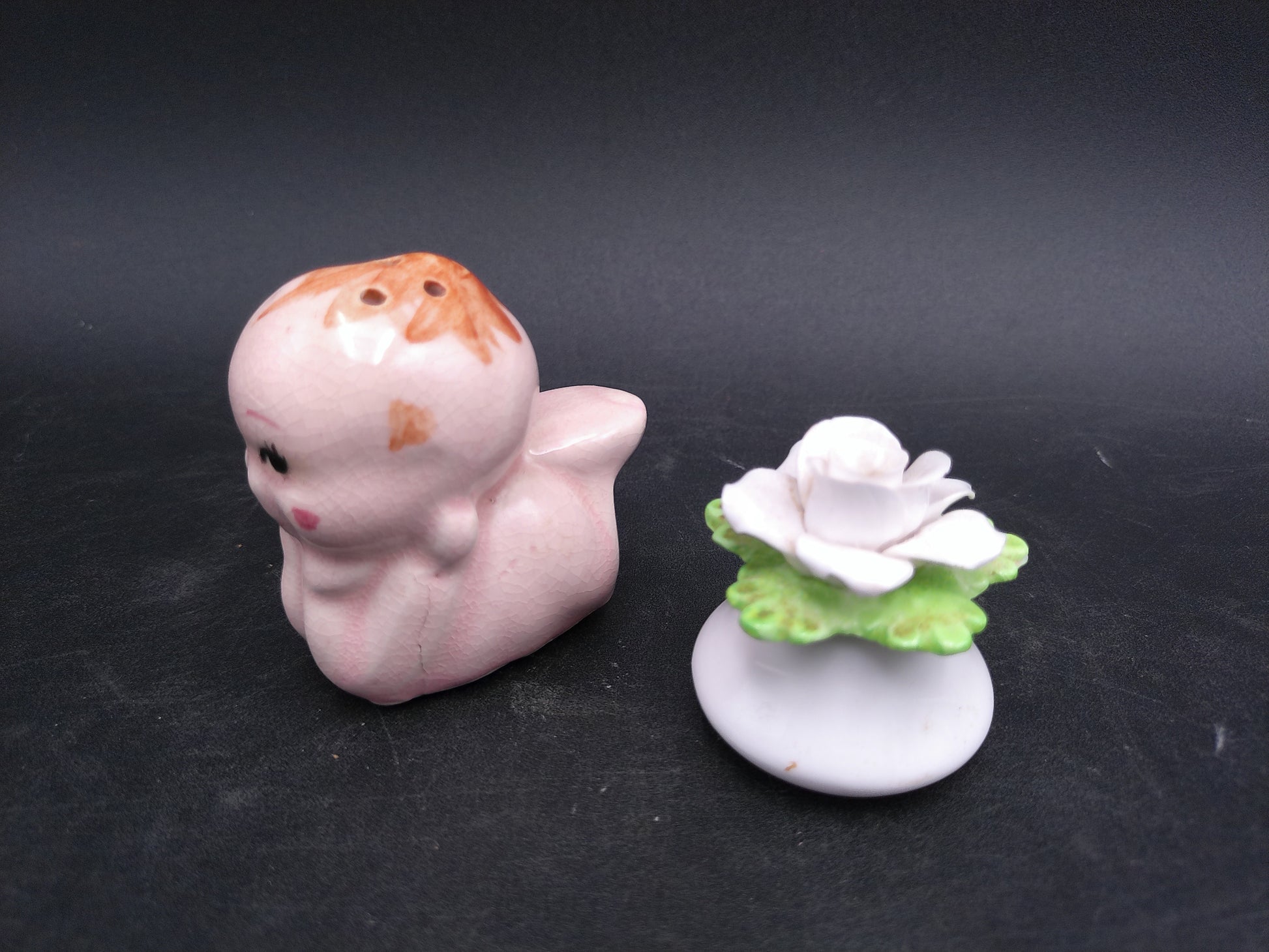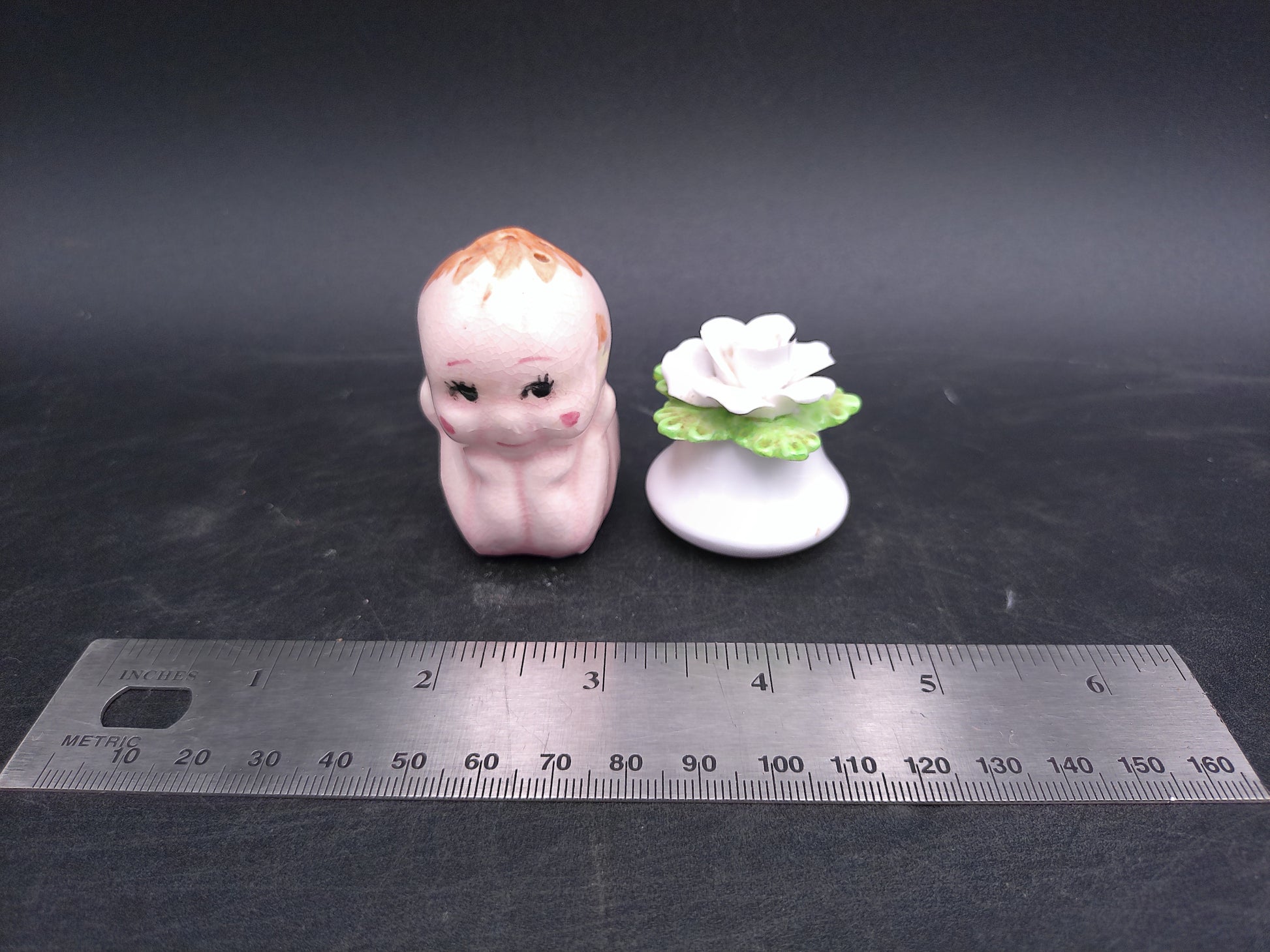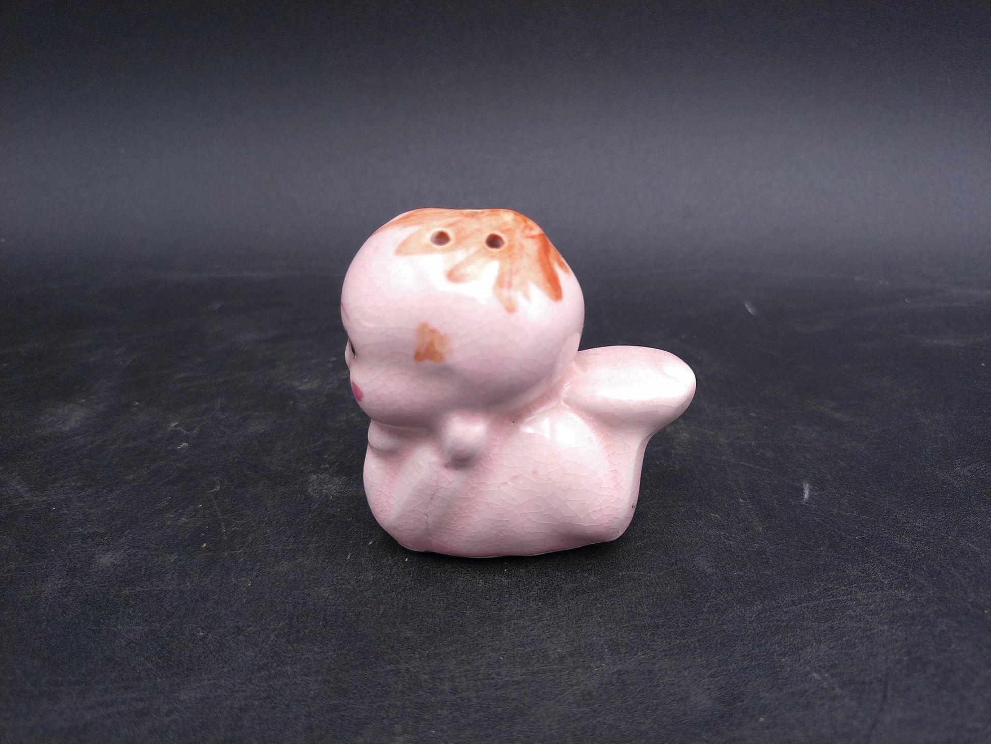 Kewpie Baby Doll Ceramic Salt Shaker And Flower Pepper Shaker